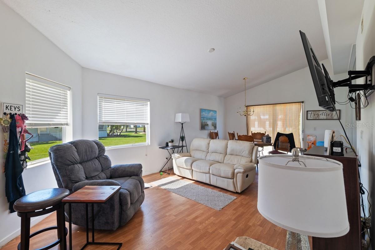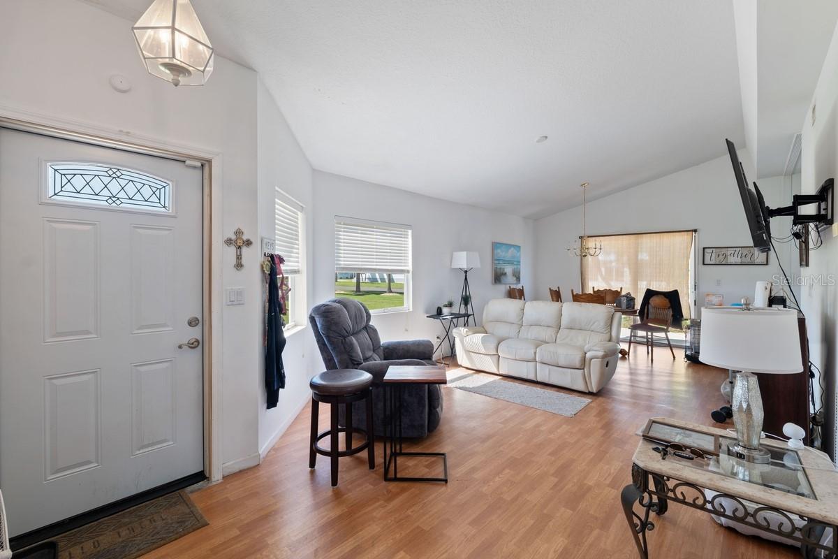 Located in Palm Village Ranch, a 55+ community in Okeechobee, FL, this 2-bed, 2-bath, 1,062 sqft home is move-in ready and features a 3-4-year-old metal roof, new wood plank bedroom flooring, and a recently replaced water heater. The HOA ($800/year) includes lawn care, garbage pickup, and tree trimming. Community perks include a heated pool, clubhouse, and social activities. The home has driveway parking and sliding glass doors, and it includes a washer, dryer, stove, dishwasher, and a new modern sink. The HVAC (2005) is original but in working condition. Enjoy a low-maintenance lifestyle in this vibrant 55+ community! Schedule your private showing today!