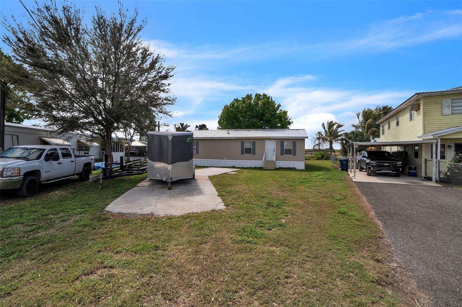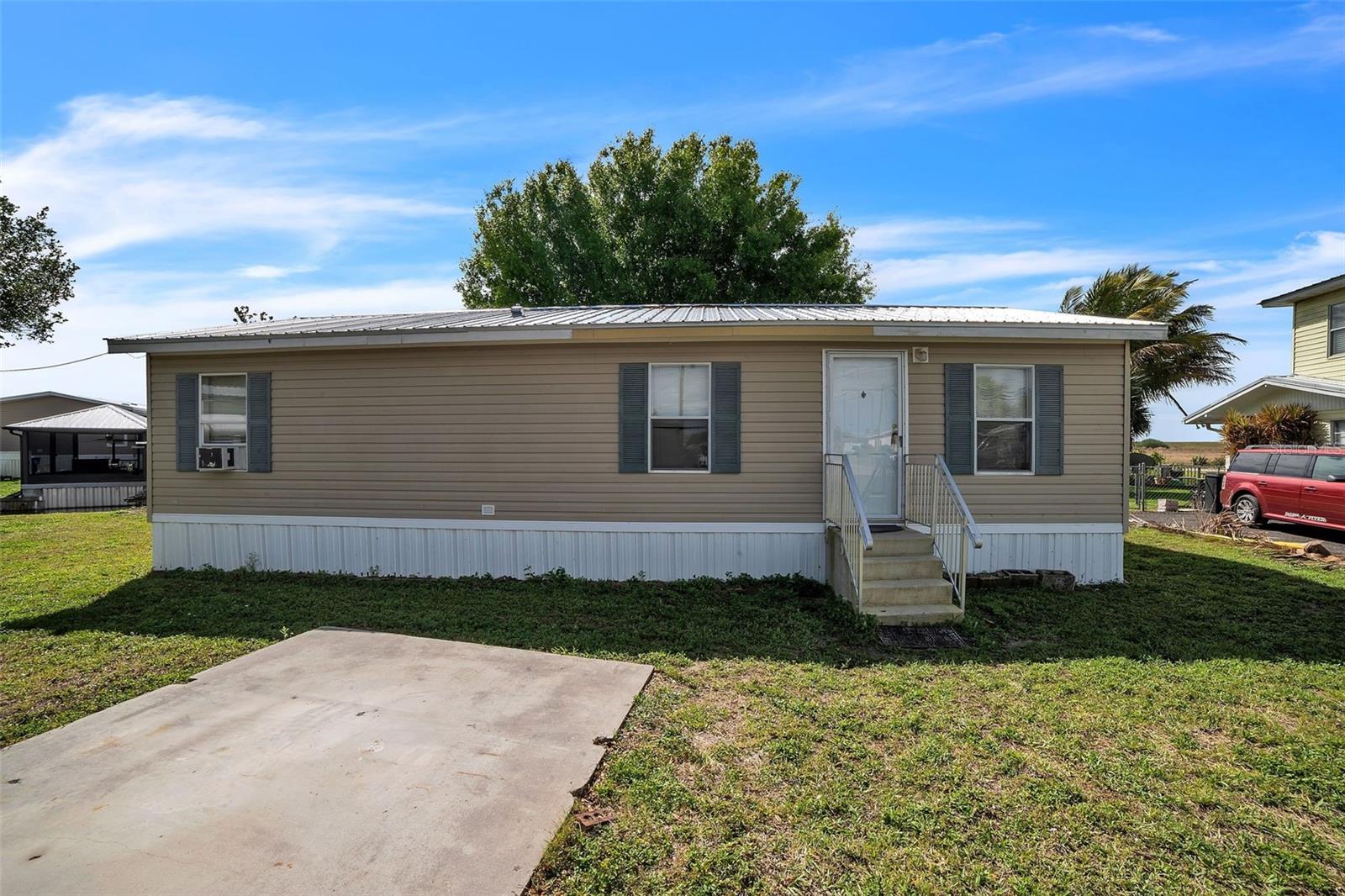 Discover the perfect waterfront retreat in this charming 2-bedroom, 2-bathroom, recently remodeled, manufactured home nestled along a peaceful canal with direct access to the renowned Lake Okeechobee. Whether you're an avid angler or simply seeking a tranquil escape, this home offers the ideal blend of relaxation and outdoor adventure. Step inside to find a cozy and inviting interior with an open-concept living area that fills with natural light, creating a warm and welcoming atmosphere. The well-appointed kitchen provides ample cabinet space and flows seamlessly into the dining and living areas, making it perfect for entertaining or enjoying quiet nights in. Both bedrooms are generously sized, offering comfort and privacy, while the two bathrooms provide convenience for you and your guests. Outside, the beauty of Florida living truly comes to life in the stunning backyard oasis. Imagine starting your mornings with a cup of coffee while soaking in the peaceful surroundings or unwinding in the evening as you watch the sunset over the water. The canal-front location offers easy access to Lake Okeechobee, making it effortless to launch your boat, kayak, or paddleboard for a day on the water. Known for its world-class fishing, the lake is a dream destination for anglers, providing an abundance of bass and other freshwater species. The neighborhood itself is quiet and inviting, offering a sense of seclusion while still being conveniently located near local shops, dining, and outdoor recreational opportunities. This home is waiting for its new owner to bring it back to life and make it their own, with endless potential to create the perfect waterfront escape. Whether you're looking for a weekend getaway or a full-time residence, this property provides the perfect balance of serenity and adventure. Experience the best of Florida's waterfront lifestyle in this hidden gem—schedule your showing today & enjoy the peaceful drive as you make your way to this charming canal-front home, ready for its new owner to bring it back to life and create their ideal waterfront retreat.