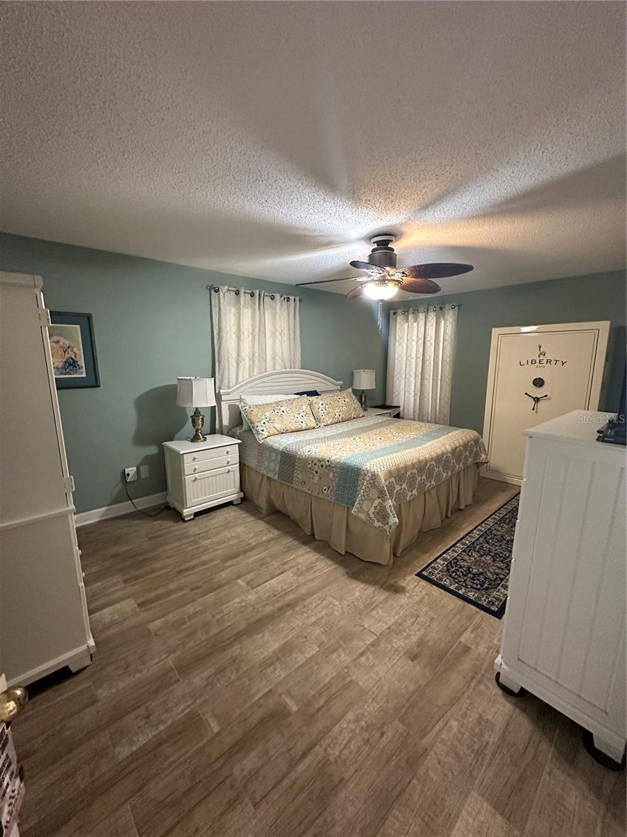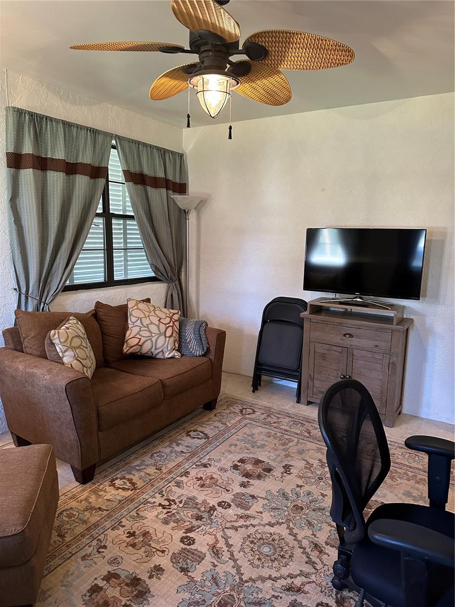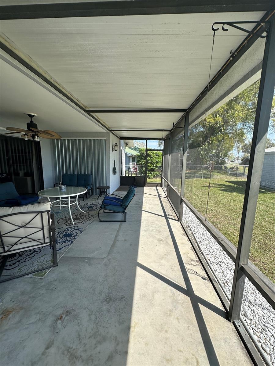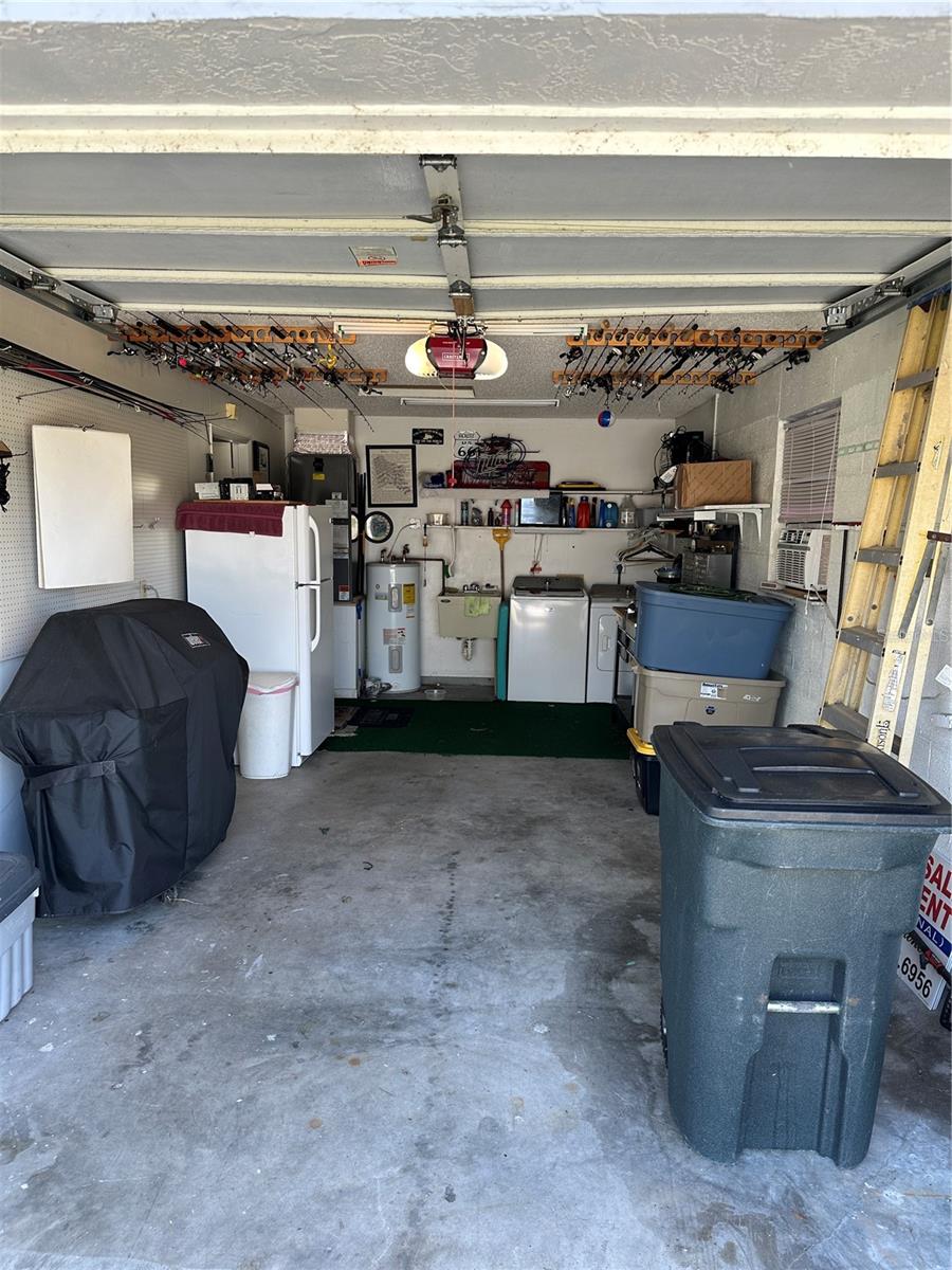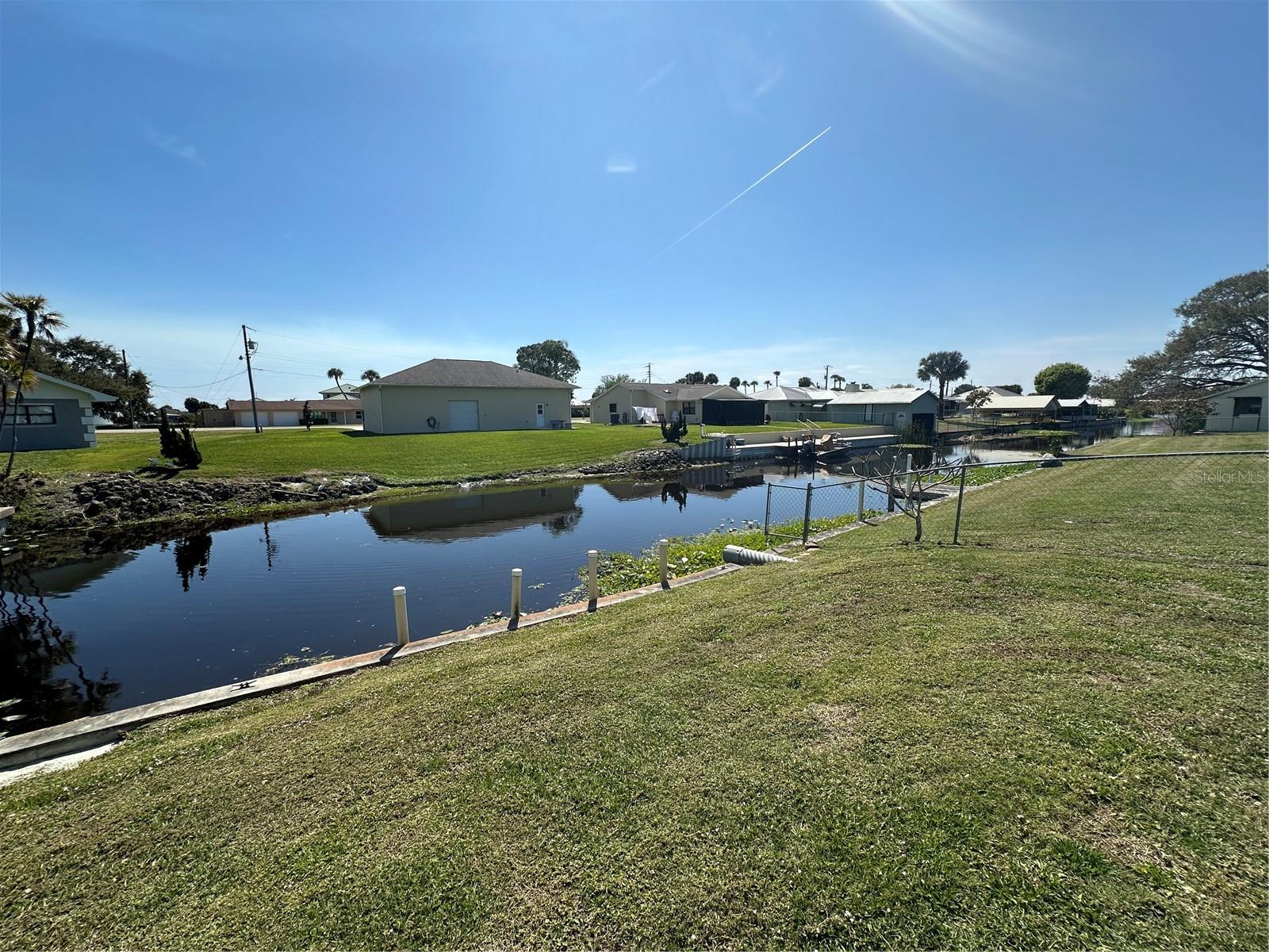 This fully furnished 1,408 square foot, 2 bedroom 2 bath home is a must see. With two principal bedrooms, it is perfect for guests and/or in-laws’ privacy. Open floor plan with large kitchen and plenty of counter space, an abundance of cabinets, new dishwasher and natural light. The walk in pantry can double as a safe room/storm shelter with cement block concrete filled walls and rebar reinforcement on all exterior walls. The office is perfect for those that work from home or need an additional room for gaming or crafting zone. It includes a sleeper sofa, plenty of natural light and direct outside entrance. Each bedroom includes great natural light, walk-in closets, recently updated bathrooms, newly tiled floors, new paint and upgraded LED lighting fixtures and ceiling fans. The largest of the bedrooms includes a sliding door with direct access to the large screened in back porch overlooking the canal. The living area opens directly onto the screened porch via three-panel sliding door, perfect for entertaining. The porch is a retreat to listen to the water fountain and it receives morning sunlight and is shaded in the afternoon and early evening. The garage is the perfect man cave with work bench, plenty of shelving, wall of peg board, separate air conditioner, and ready to be stocked beer fridge. Metal roof is less than 5 years old. New central air and heat pump. Includes updated washer and dryer, all appliances, window treatments and Miami or Malibu shutters for all windows including sliding doors. Yard includes storage shed with metal roof, fenced in back yard, cement seawall and automatic irrigation system.