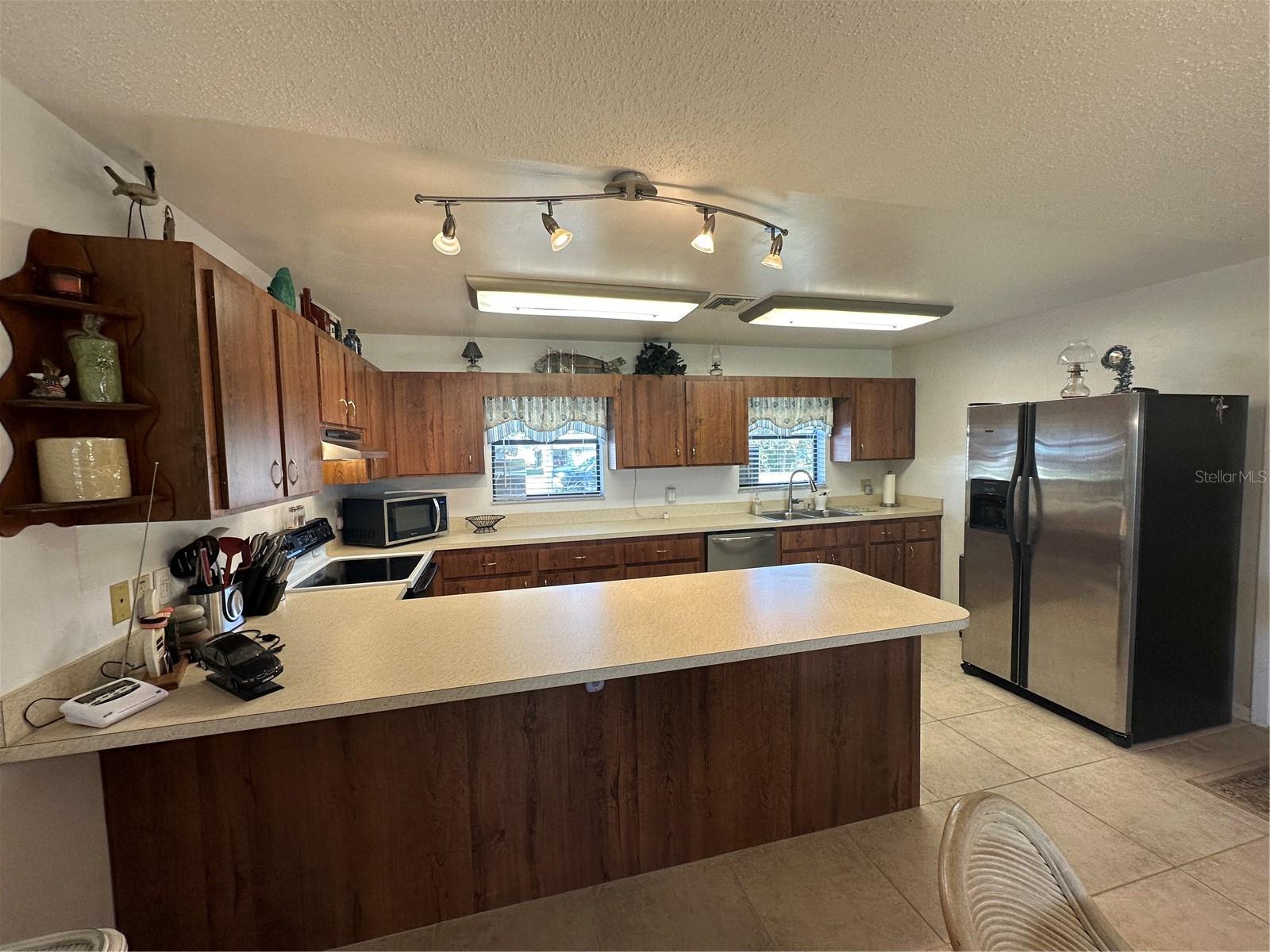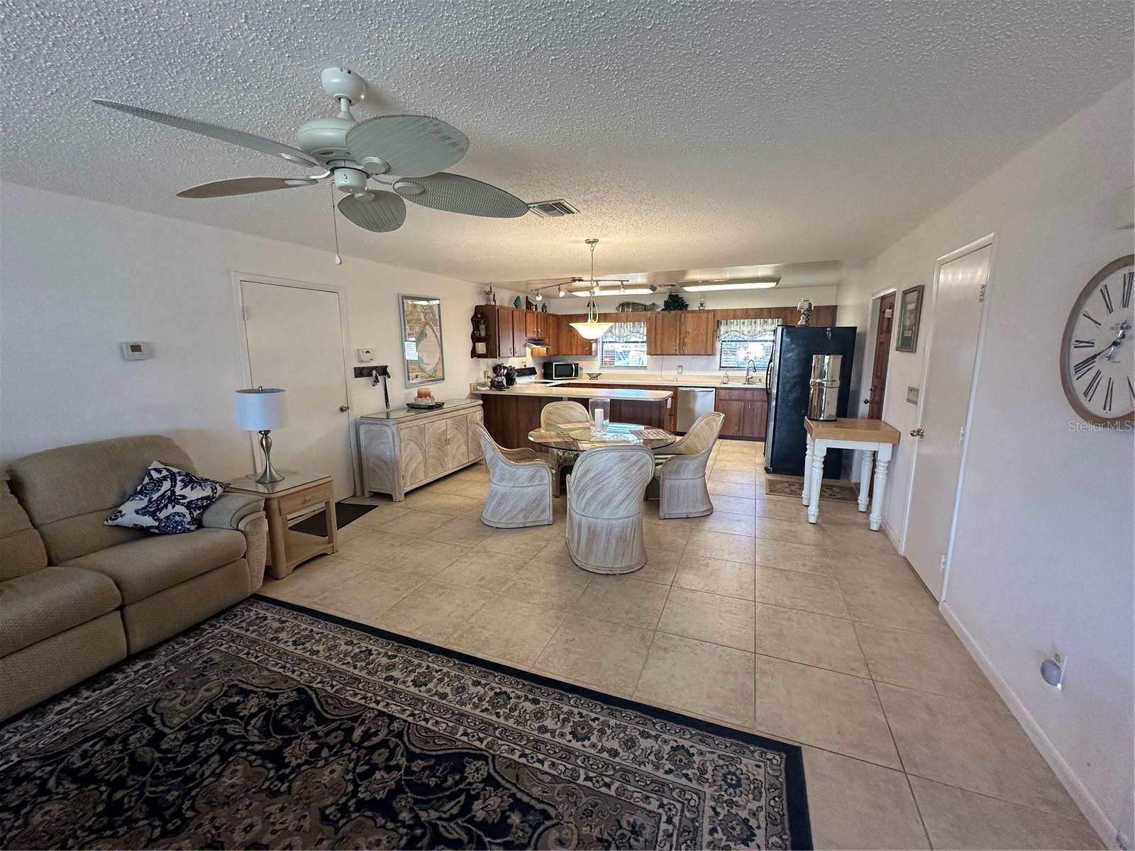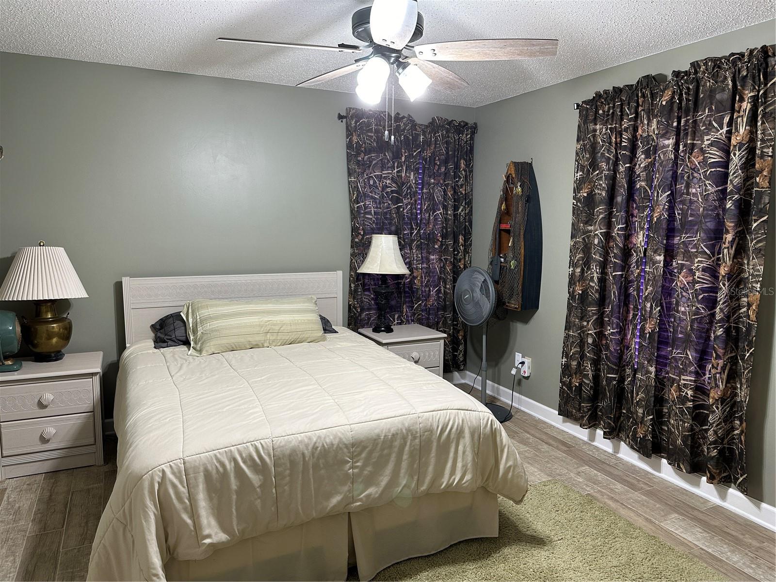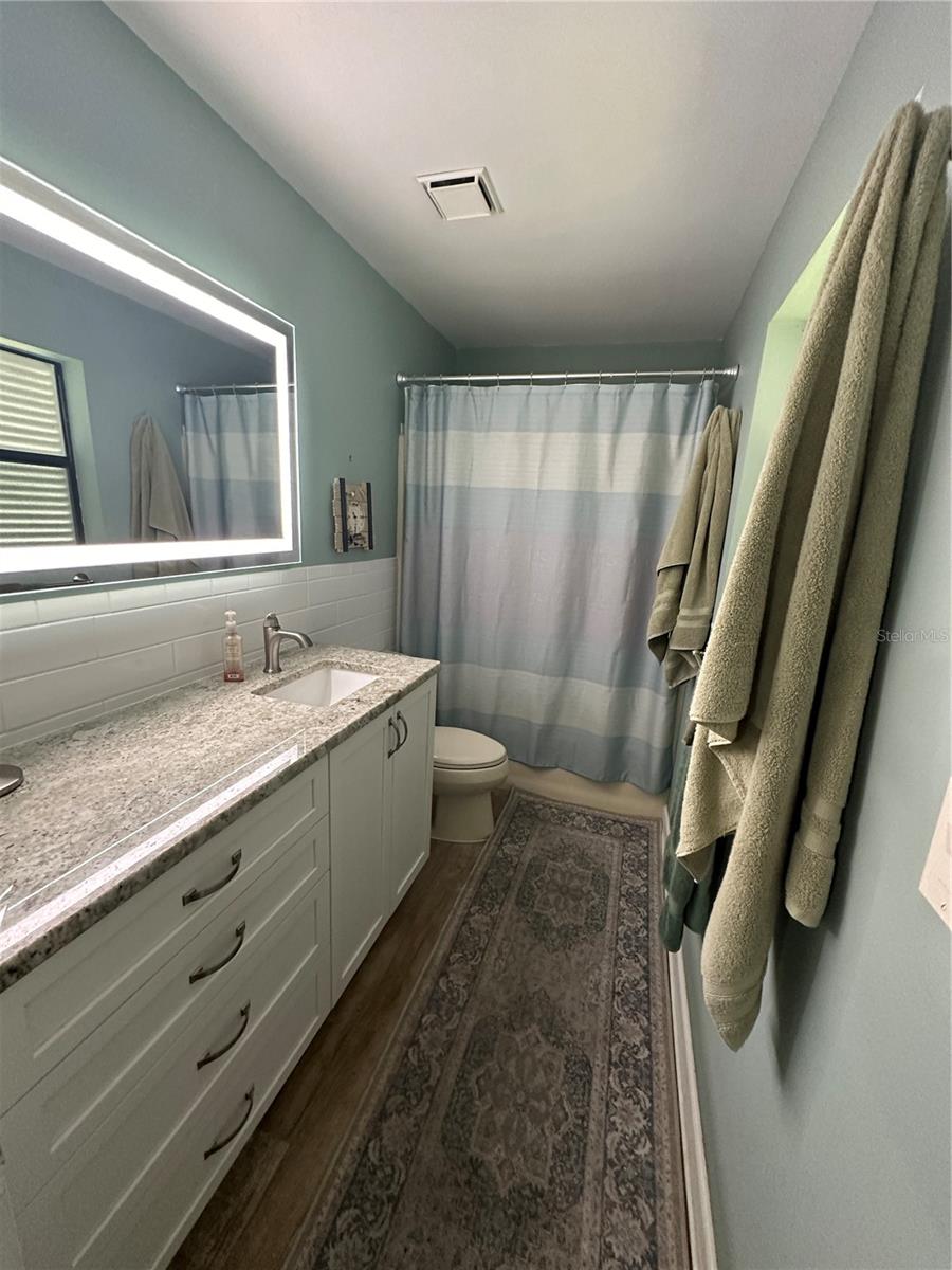 This fully furnished 1,408 square foot, 2 bedroom 2 bath home is a must see. With two principal bedrooms, it is perfect for guests and/or in-laws’ privacy. Open floor plan with large kitchen and plenty of counter space, an abundance of cabinets, new dishwasher and natural light. The walk in pantry can double as a safe room/storm shelter with cement block concrete filled walls and rebar reinforcement on all exterior walls. The office is perfect for those that work from home or need an additional room for gaming or crafting zone. It includes a sleeper sofa, plenty of natural light and direct outside entrance. Each bedroom includes great natural light, walk-in closets, recently updated bathrooms, newly tiled floors, new paint and upgraded LED lighting fixtures and ceiling fans. The largest of the bedrooms includes a sliding door with direct access to the large screened in back porch overlooking the canal. The living area opens directly onto the screened porch via three-panel sliding door, perfect for entertaining. The porch is a retreat to listen to the water fountain and it receives morning sunlight and is shaded in the afternoon and early evening. The garage is the perfect man cave with work bench, plenty of shelving, wall of peg board, separate air conditioner, and ready to be stocked beer fridge. Metal roof is less than 5 years old. New central air and heat pump. Includes updated washer and dryer, all appliances, window treatments and Miami or Malibu shutters for all windows including sliding doors. Yard includes storage shed with metal roof, fenced in back yard, cement seawall and automatic irrigation system.