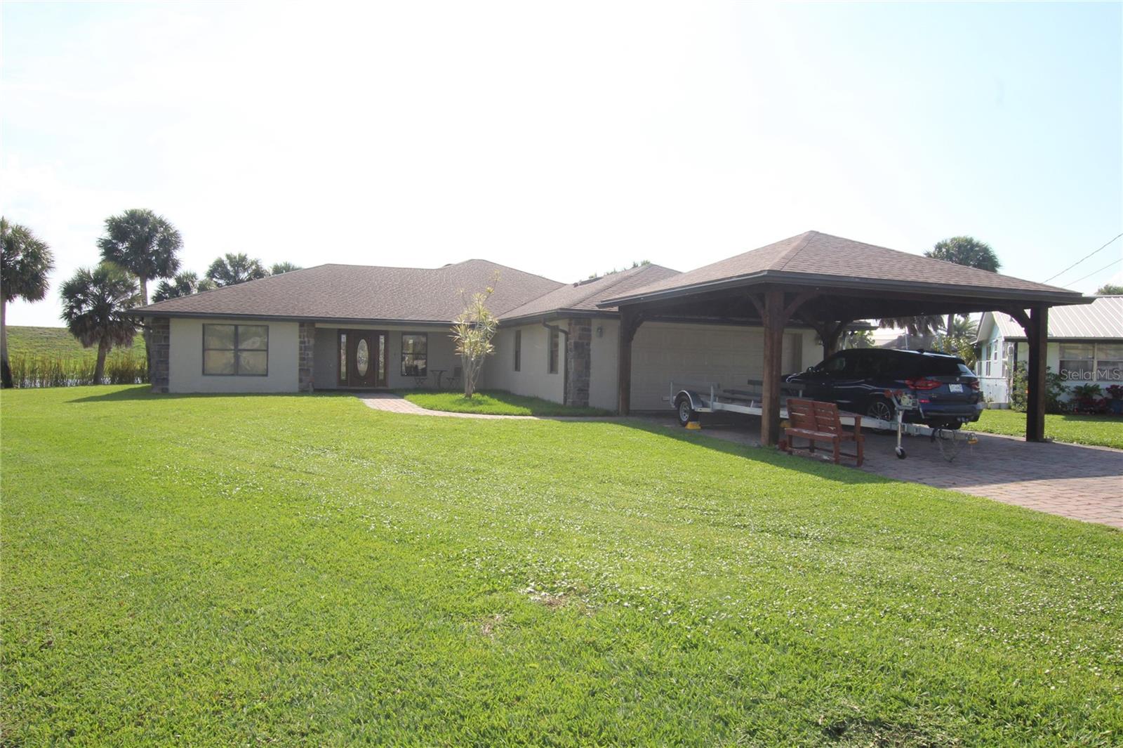 BUCKHEAD RIDGE - LAKE OKEECHOBEE ACCESS - Stunning 3/2 CBS home, gently lived in, solid wood cabinets, solid surface countertops, rounded corners, pocket doors, AC 2018 complete with air handler, osmosis water system, 2012 hip roof, hip roof on carport also. This is on the rim canal and boathouse is on side canal. The location is so perfect and the sunsets are extraordinary. The end of the screen room opens up to store boat in. This property is five minutes from locks.