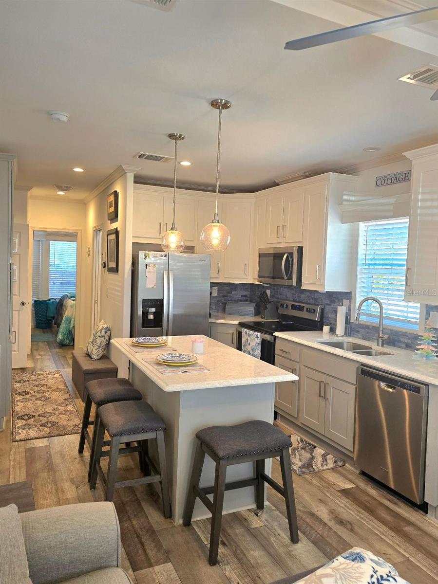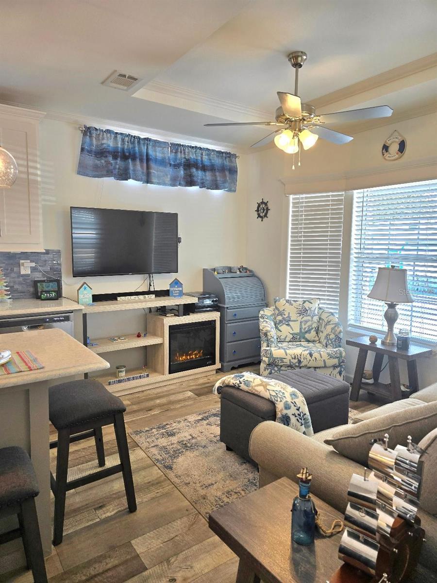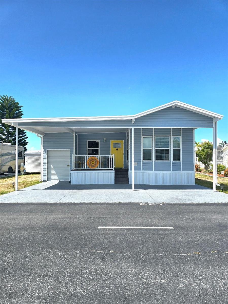 Bring your fishing poles, golf clubs and boat. Discover serene living and impressive amenities in this stylish 2022 Skyline park model home, located within Blue Cypress Golf and RV Resort. This property is ideally suited for both relaxation and social enjoyment, and spans two bedrooms and one and a half bathrooms/ Step into a welcoming additional living room that extends seamlessly into an efficient layout, featuring tray ceilings and exquisite marble countertops that elevate the interior aesthetic. Luxuriate in the comfort of upgraded lighting fixtures and chandeliers that add a refined touch to the space. Functionality meets style in the inclusion of a fully equipped laundry room and a two-car carport, enhancing convenience without compromising on elegance. The outdoor living spaces are equally compelling. A 12 x 9 sundeck and a spacious 14 x 12 patio, complete with a therapeutic hot tub, are perfect settings for relaxation or hosting guests. Additional features like on-site golf cart parking underscore the convenience offered by this home. Residents of Blue Cypress Golf and RV Resort enjoy access to many fun activities such as the golf course, a private pool in the beautiful clubhouse that is both heated and cooled for comfort throughout the year, clubhouse activities, and pickleball courts. The surrounding neighborhood is peaceful and welcoming, providing direct access to Lake Okeechobee and nearby attractions that cater to outdoor enthusiasts and nature lovers alike. This home is mostly furnished and ready to deliver an exceptional lakefront living experience. Embrace life at 227-13840 SE 143rd Ave, a hidden gem that promises both tranquility and an active community lifestyle.