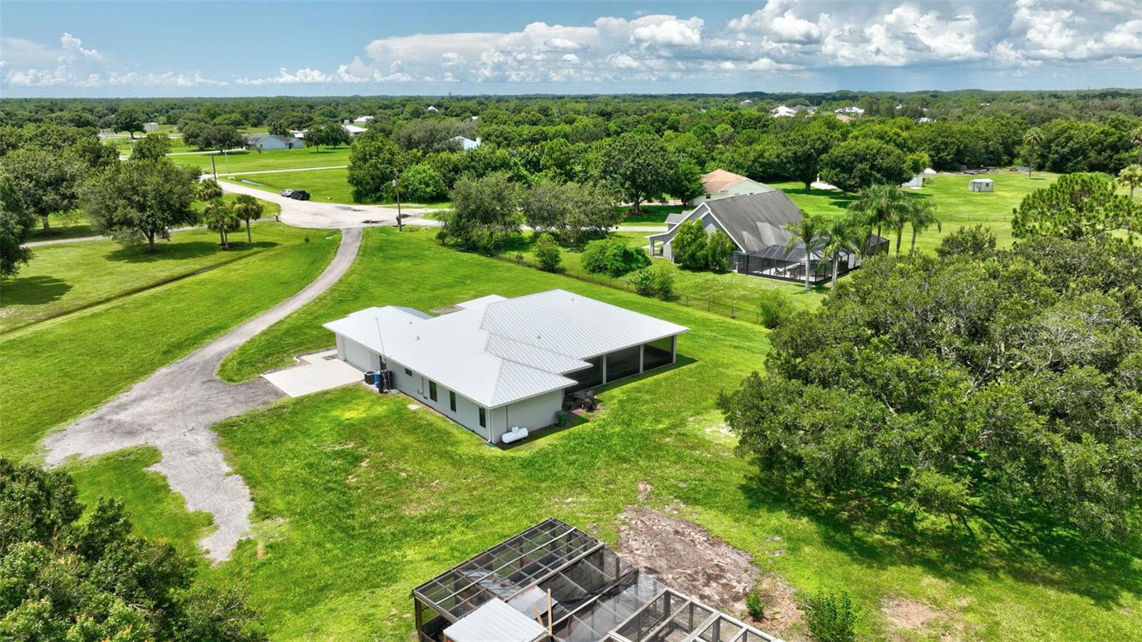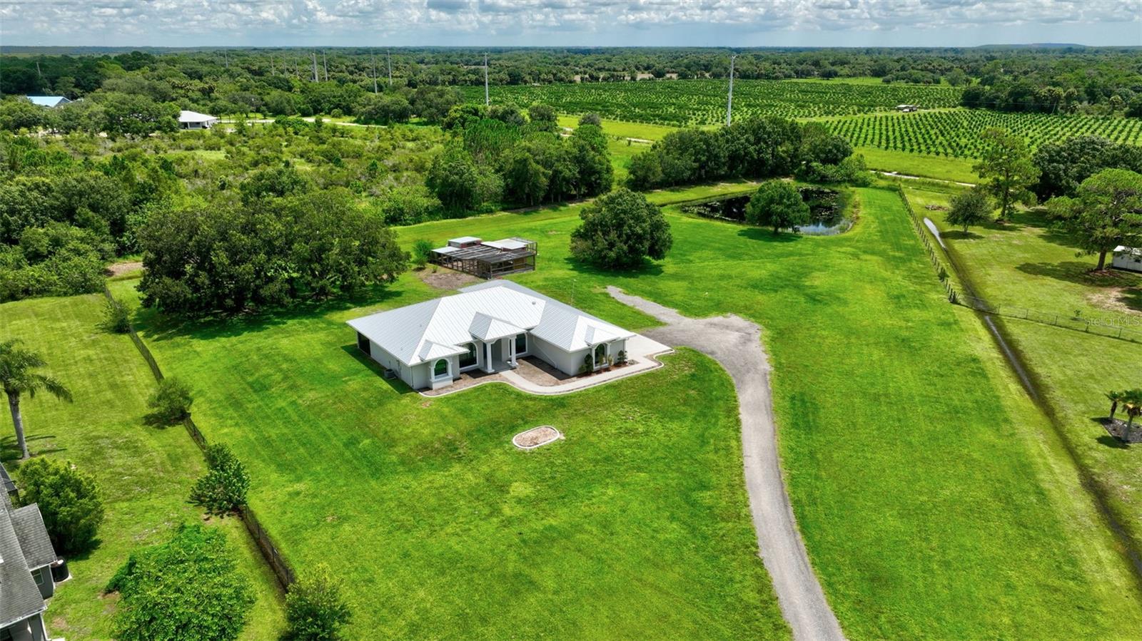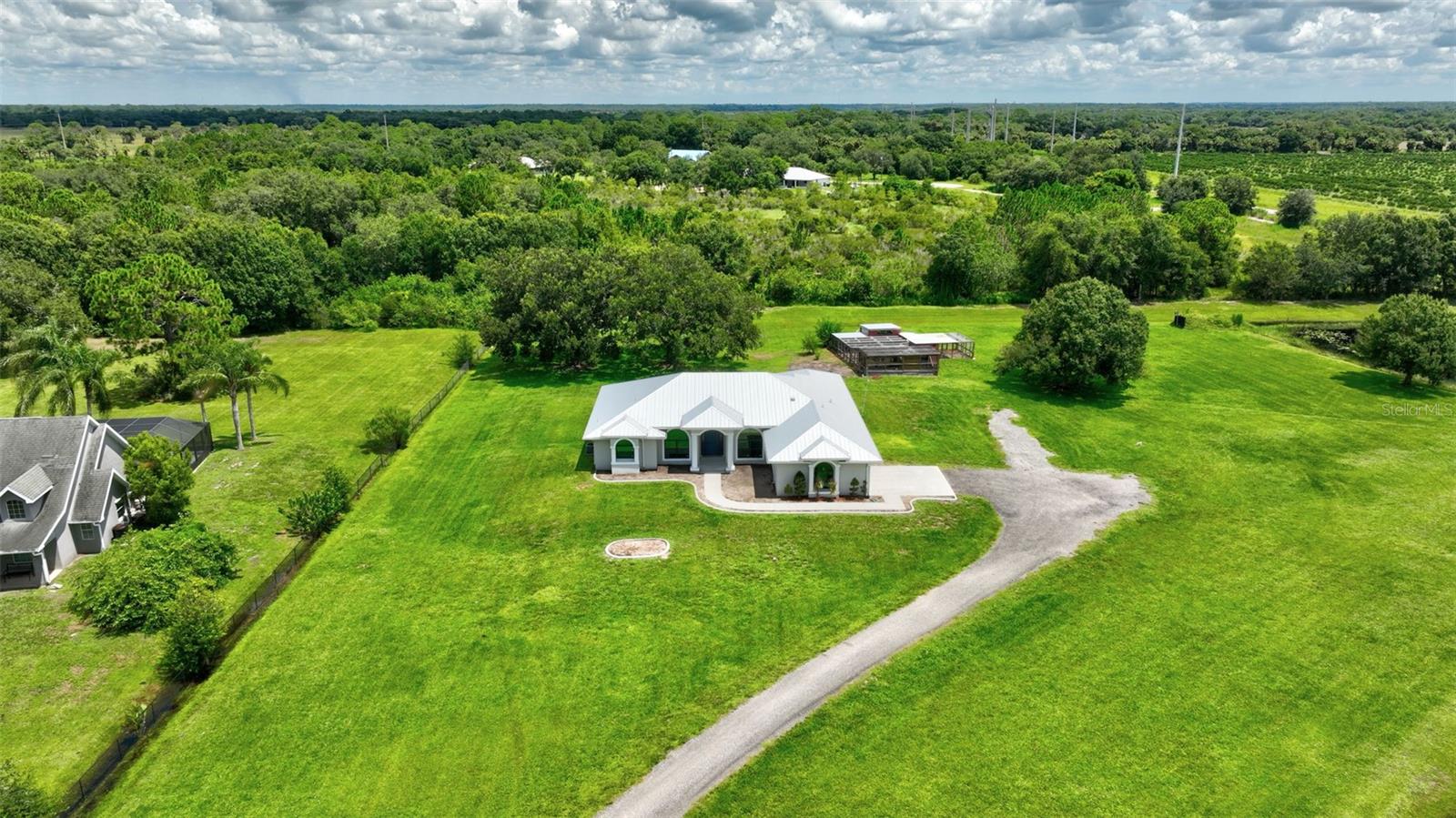 3.36 ACRES ON CUL-DE-SAC.1999 CBS CONSTRUCTION. 2022 METAL ROOF, IMPACT WINDOWS/DOOR, KITCHEN CABINETS W/QUARTZ COUNTERS, FARM STYLE SINK, CLOSET STYLE PANTRY W/APPLIANCE COUNTER, PRO STYLE DUAL FUEL RANGE (6 BURNERS + GRIDDLE), SS FRENCH DOOR FRIDGE W/BOTTOM FREEZER, SS DISHWASHER AND GAS DRYER AND TANKLESS GAS WATER HEATER. VOLUME CEILINGS & LOTS OF NATURAL LIGHT. WATER SYSTEM WAS UPDATED IN 2022 AND NEW 1HP PUMP IN 2024. SCREENED PATIO TO ENJOY THE PEACE AND TRANQUILITY OF COUNTRY LIFE. YOUR LAND ABUTS PROTECTED WETLANDS AND AN ORANGE GROVE TO ENSURE NO FUTURE BUILDING. 2 ZONE A/C W/ECOBEE WIFI THERMOSTATS. 2022 ENGINEERED WOOD FLOORING. THERE IS AN OPPORTUNITY TO PURCHASE THE ADJACENT 2.54 ACRE VACANT LOT FOR A COMBINED 5.9 ACRES.
