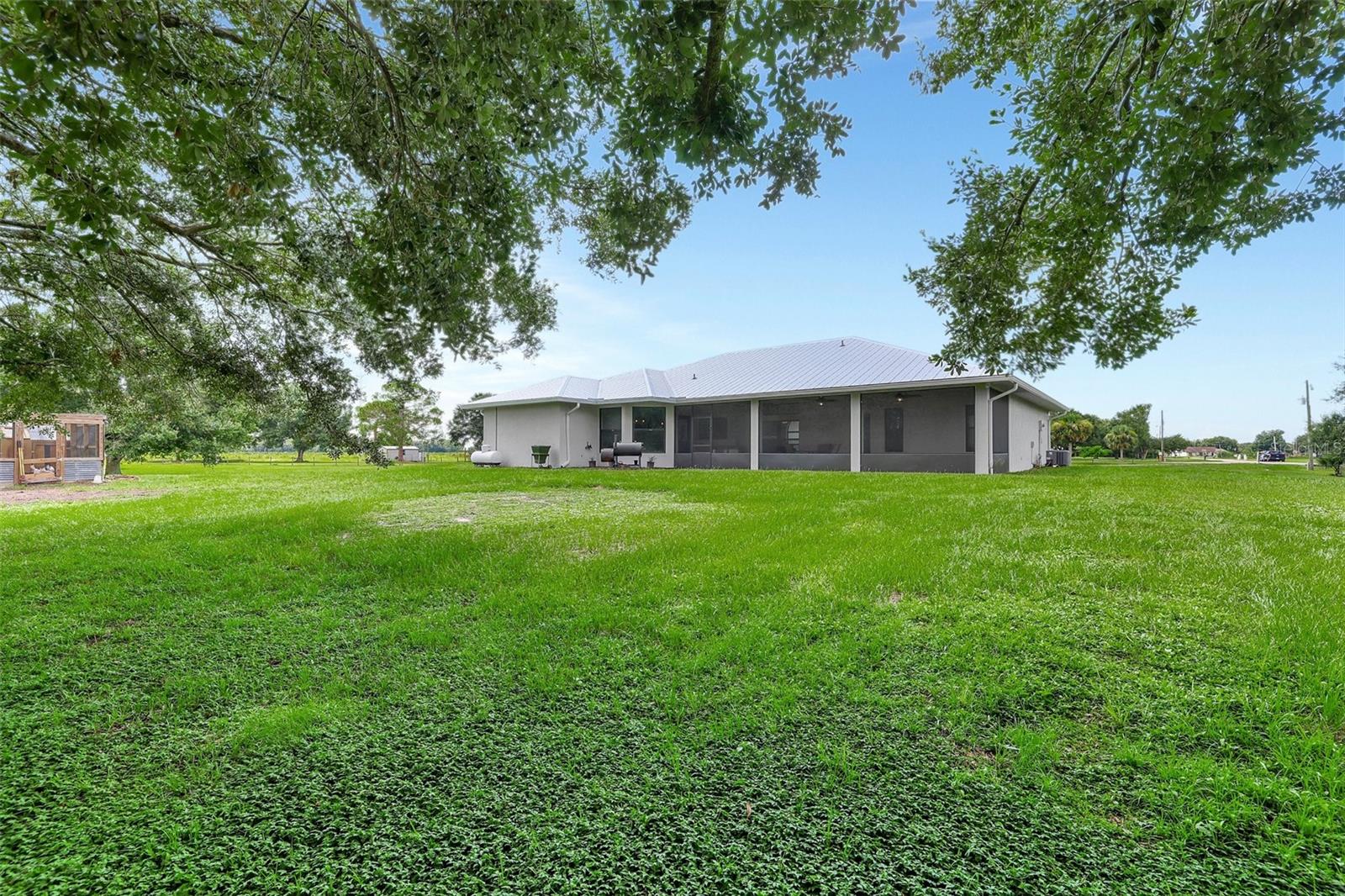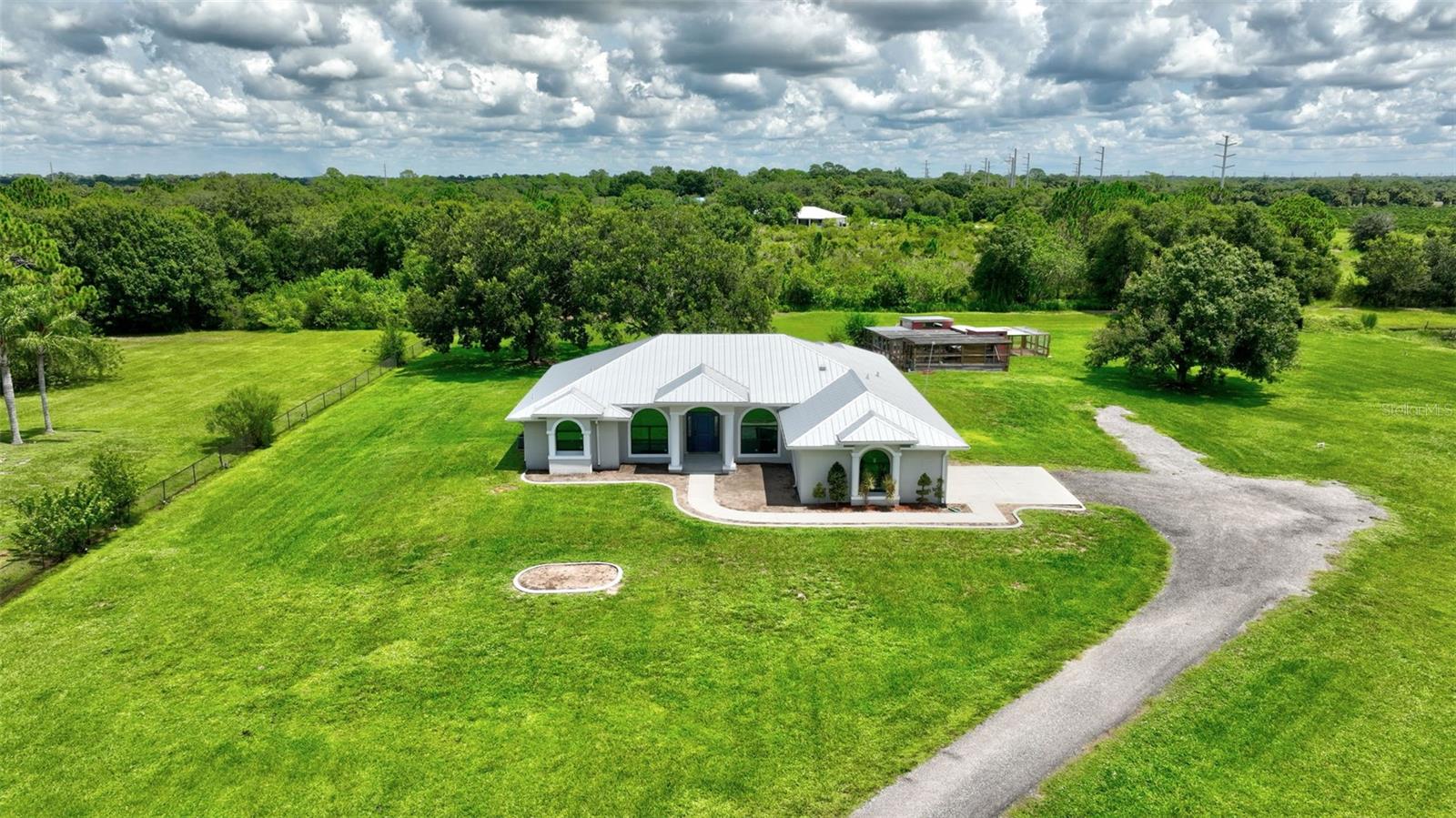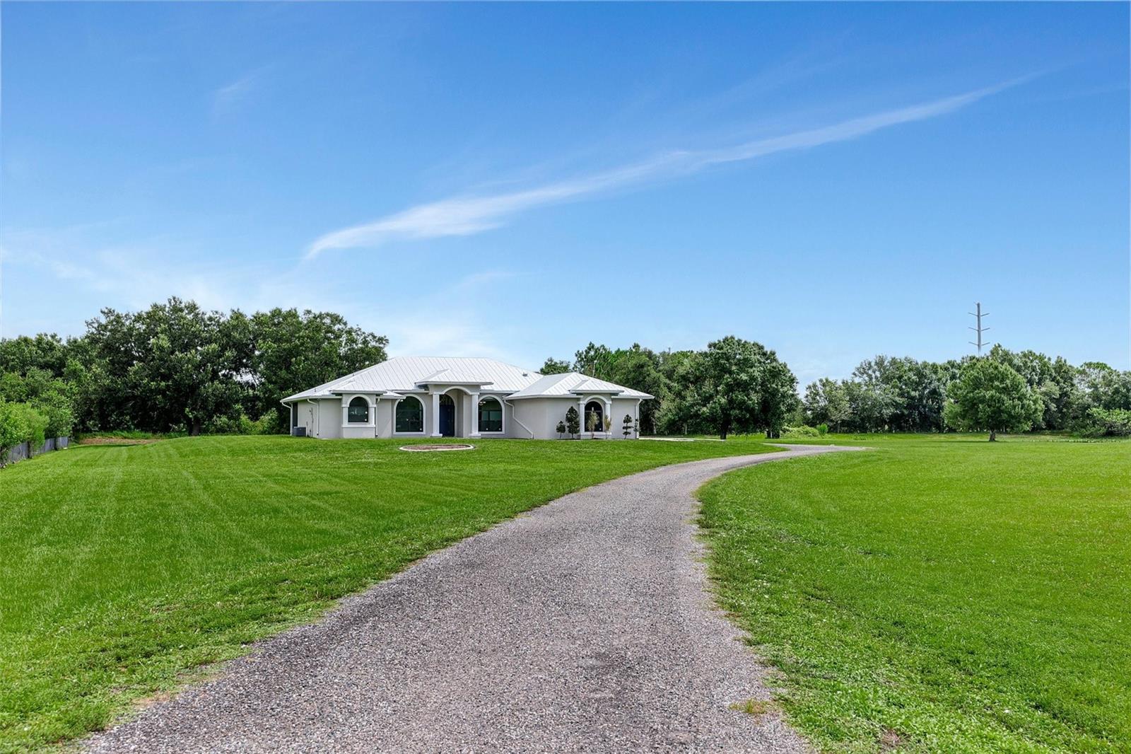 3.36 ACRES ON CUL-DE-SAC.1999 CBS CONSTRUCTION. 2022 METAL ROOF, IMPACT WINDOWS/DOOR, KITCHEN CABINETS W/QUARTZ COUNTERS, FARM STYLE SINK, CLOSET STYLE PANTRY W/APPLIANCE COUNTER, PRO STYLE DUAL FUEL RANGE (6 BURNERS + GRIDDLE), SS FRENCH DOOR FRIDGE W/BOTTOM FREEZER, SS DISHWASHER AND GAS DRYER AND TANKLESS GAS WATER HEATER. VOLUME CEILINGS & LOTS OF NATURAL LIGHT. WATER SYSTEM WAS UPDATED IN 2022 AND NEW 1HP PUMP IN 2024. SCREENED PATIO TO ENJOY THE PEACE AND TRANQUILITY OF COUNTRY LIFE. YOUR LAND ABUTS PROTECTED WETLANDS AND AN ORANGE GROVE TO ENSURE NO FUTURE BUILDING. 2 ZONE A/C W/ECOBEE WIFI THERMOSTATS. 2022 ENGINEERED WOOD FLOORING. THERE IS AN OPPORTUNITY TO PURCHASE THE ADJACENT 2.54 ACRE VACANT LOT FOR A COMBINED 5.9 ACRES.