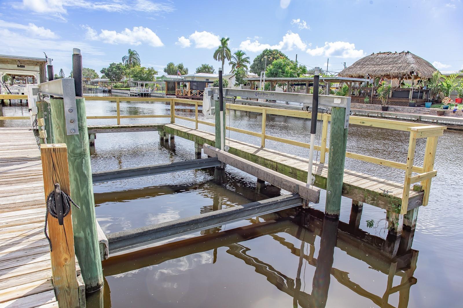 TALK ABOUT THE VIEW, the first thing you see upon entering this home is the water view with it's tropical feel. This well-kept 3-bedroom, 2-bathroom 2 car garage CBS waterfront home is located in desirable Taylor Creek Isles and is situated on a beautifully manicured 1.5 lots with a concrete drive. The home features an open concept split floor plan with 9 ft ceilings, pocket doors and a custom built-in TV console cabinet, perfect for family living and entertaining, ceiling fans in every room including 2 in the screened patio. Enjoy the expansive CBS screened patio that offers beautiful views of the wide canal that's just minutes from Lake Okeechobee. Step outside to the wrap-around dock with an electric lift. it also boasts a 100 ft sidewalk the width of the property at waters edge and an aluminum seawall, rain gutters and canal fed sprinkler system. New roof, new a/c and a new hot water heater. The furniture is not included but can be purchased separately. This home is a must-see! Asking $498,900 Call today to schedule your walk through! ACCEPTING OFFERS!