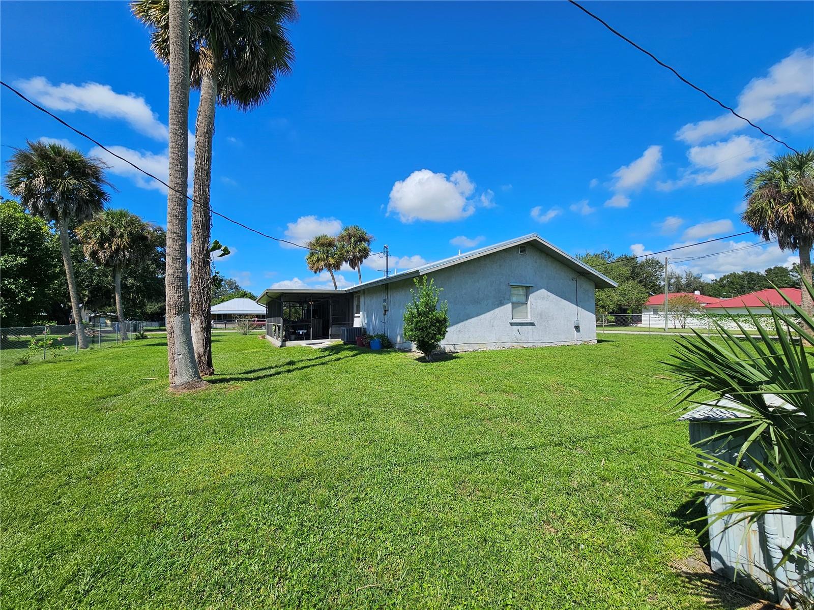 *REDUCED * CBS, Metal roof, 5ft chainlink, fenced in property, 2 bedrooms, 2 bathrooms, Hurricane shutters. 2 car garage, out building for a shop, or extra storage. Kitchen and Living room open with a large eat at bar. Nice screened in back porch with a bar and TV.