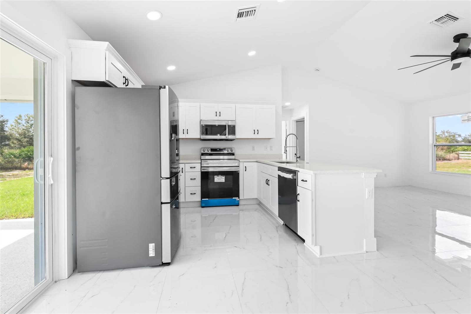Should be complete August 2025! Expect to be Impressed with this corner lot off paved road. Come make this your home today. This new construction house is almost 1500 sq. ft. on 1.25-acre lot with no HOA. It offers 3 bedrooms and 2 bathrooms with a split and open floor plan. Highlights include brand new 2025 construction with architectural shingles, impact windows, high Ceilings throughout, Stainless steel appliances, granite countertops, energy efficient inside/outside central AC system and more. Ample parking. Bring your boat, RV, toys and animals.