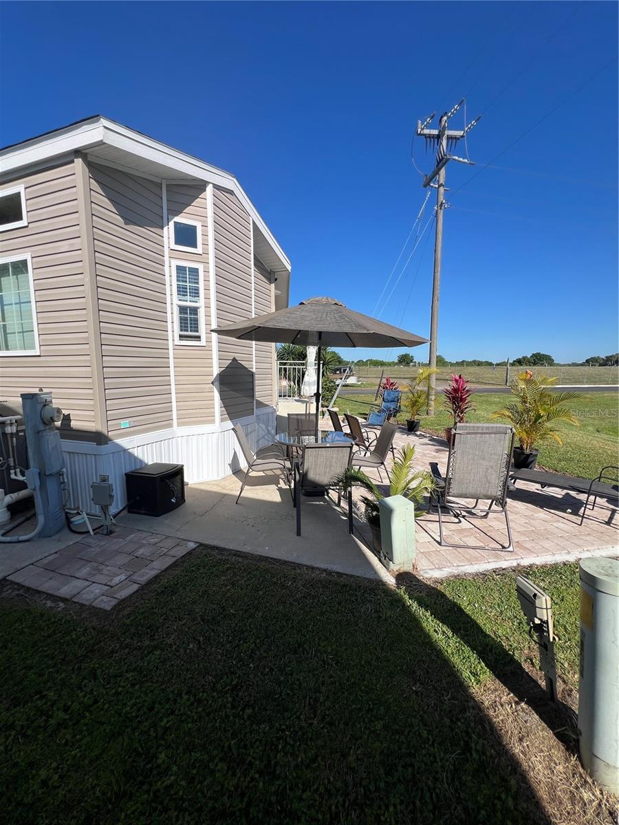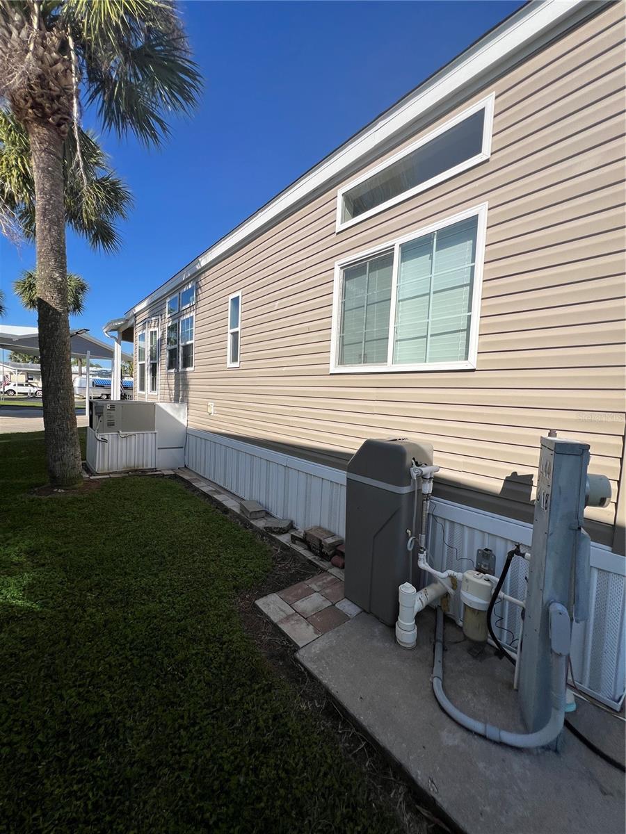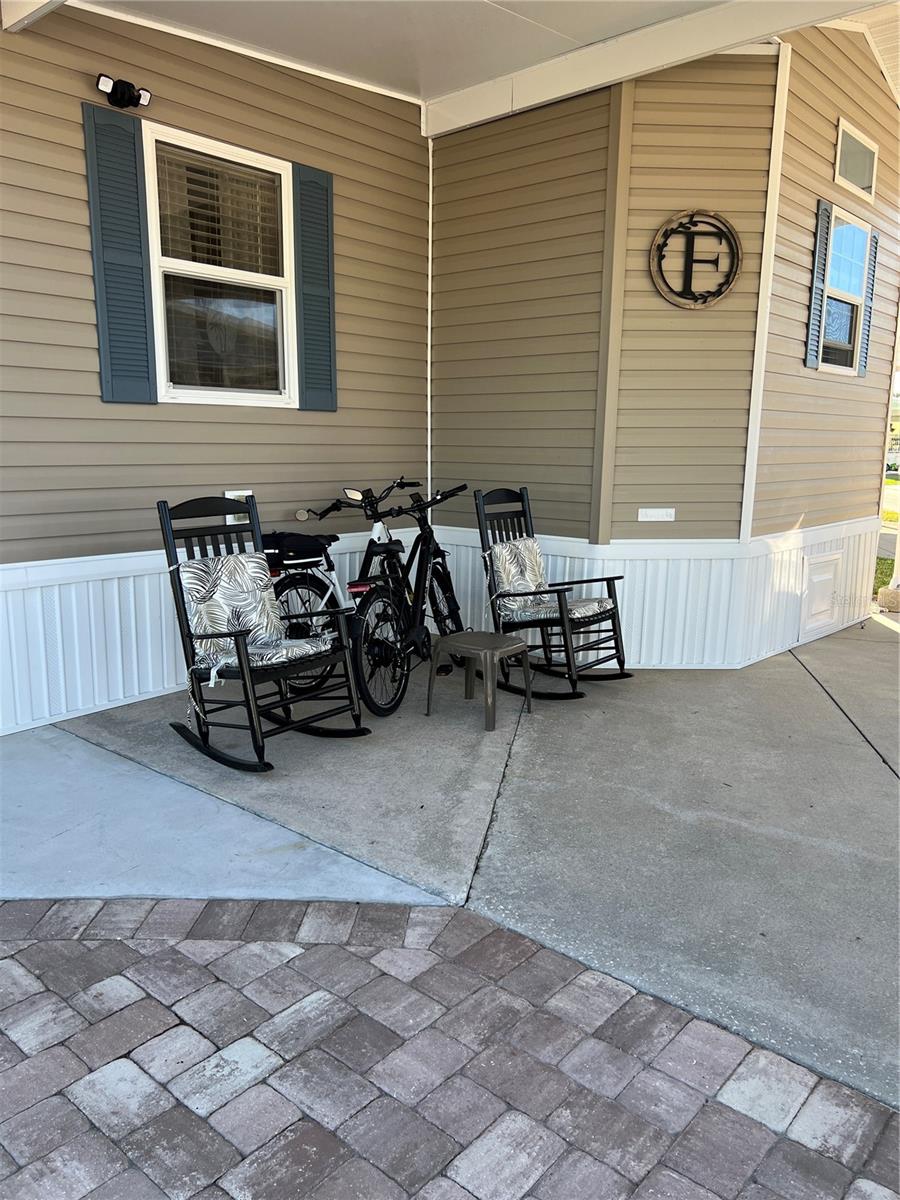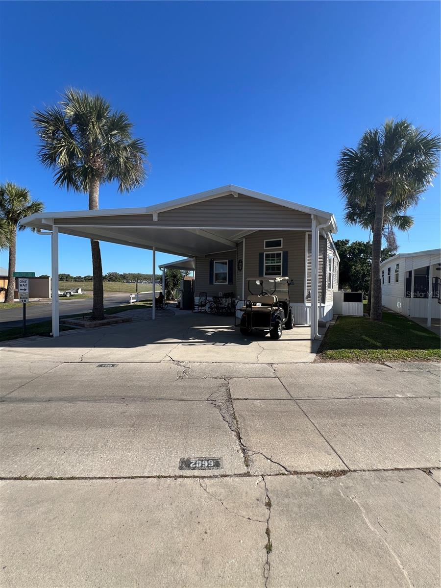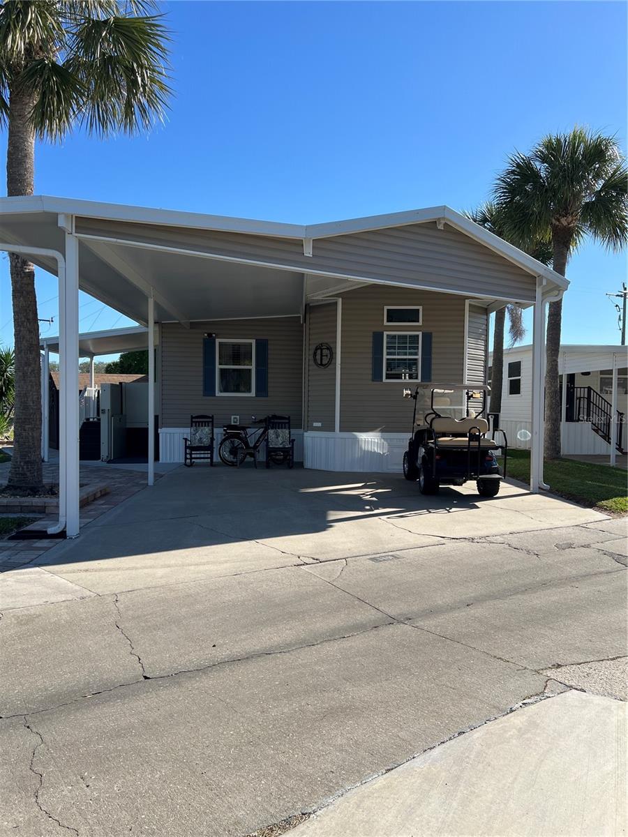 ~Ancient Oaks~ 55+ Community- Active Lifestyles! Waterfront, corner lot. 2019 Chariot- model 685- 10' ceilings in Pristine condition w/ 2022 Addition & New carport. 2 Bed (one is handicap) 2 Bath. Beautiful Martha Stewart kitchen! SS GE Appliances. Luxury vinyl flooring throughout with custom blinds- Furnished and very tastefully decorated. Pavers added as a sidewalk around the home with a huge patio facing the water- what a peaceful view! Patio furniture included. 2024 water softener, washer & dryer inside (GE). Handicap Elevator w/ Lift. Shed w/electric. All measurements are approximate, must measure for exact.