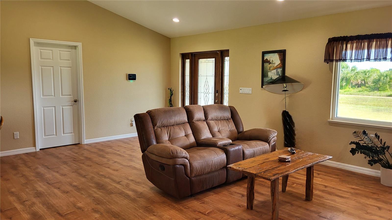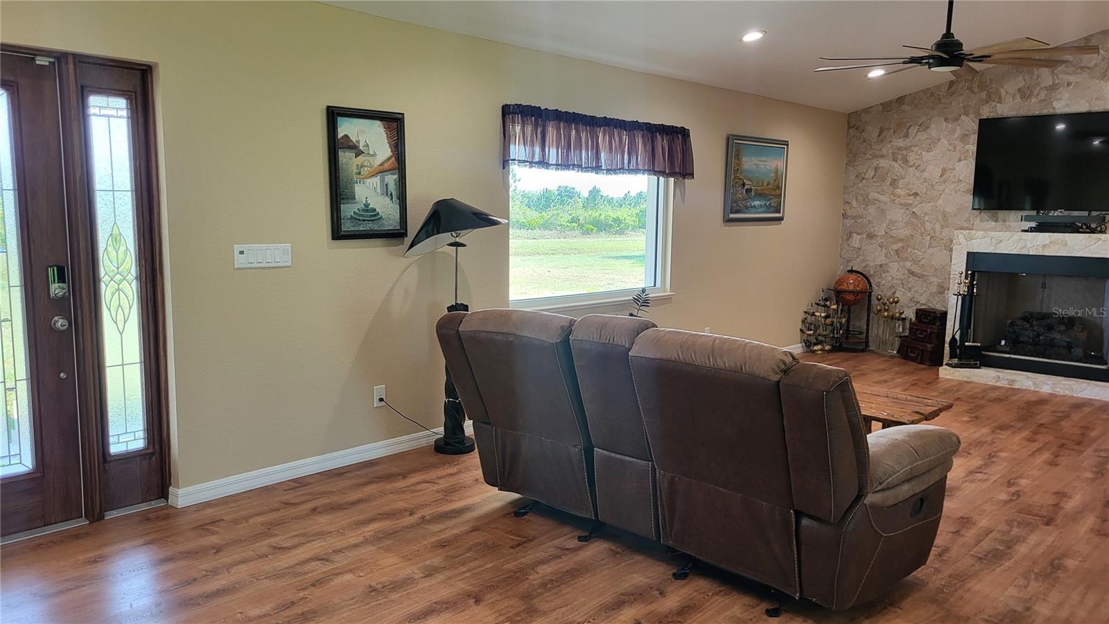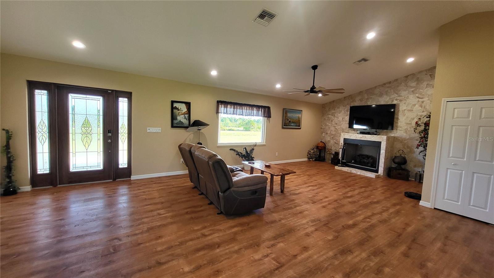 DREAM HOUSE ON THE PRAIRIE! Landscaped, Fenced-in back yard with a Stocked Fish Pond (Gazebo & Water Feature too), Impact Sliding Door & Windows, Metal Roof, Generac w/250 gal Propane Tank, Camera Security System, massive Garage with ample Shelving, Utility Tub, Insulated Doors, Central Vac, Attic, Tankless HW, Outside Shower, Tiled Patio, Truck Gate, 2nd Well for 10-zone irrigation system and pond filling, Fruit Trees, Fire Pit , Strong WIFI. Also, Granite Countertops, Luxury Vinyl flooring, Vaulted Ceiling, Wood self-close Cabinets, Gas Fireplace and beautifully Tiled Bathrooms. No expense spared in this 2022 build AND it sits 12'' higher than code. making ''High & Dry' an understatement. Take special notice of the Bird-Feeding area in the front right corner. YOUR DREAM JUST CAME TRUE!
