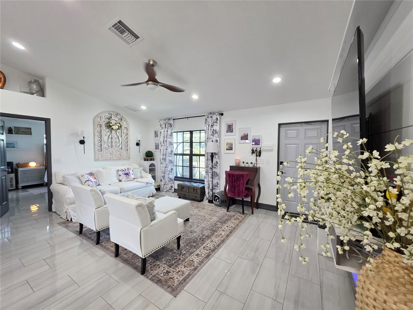 DIXIE RANCH – Stunning Custom-Built Smart Home on One Acre Welcome to your dream home! This beautifully crafted custom smart home is packed with premium features and thoughtful upgrades throughout. Enjoy peace of mind with a fully wired security system and impact-tinted hurricane windows. Inside, you'll find luxurious touches including quartz countertops, custom closets, and a charming clawfoot tub. The bathroom is designed for convenience with a pocket door, and the kitchen is a chef’s delight featuring smart appliances, a pot filler above the stove, a marble backsplash, and USB-equipped outlets. Relax on fully screened front and back porches and enjoy breathtaking sunsets on your private acre of land. Additional highlights include a reverse osmosis water system, smart locks, and a powered shed — perfect for hobbies or extra storage. This home effortlessly blends modern technology with timeless style. Come experience the comfort, beauty, and functionality of Dixie Ranch living.