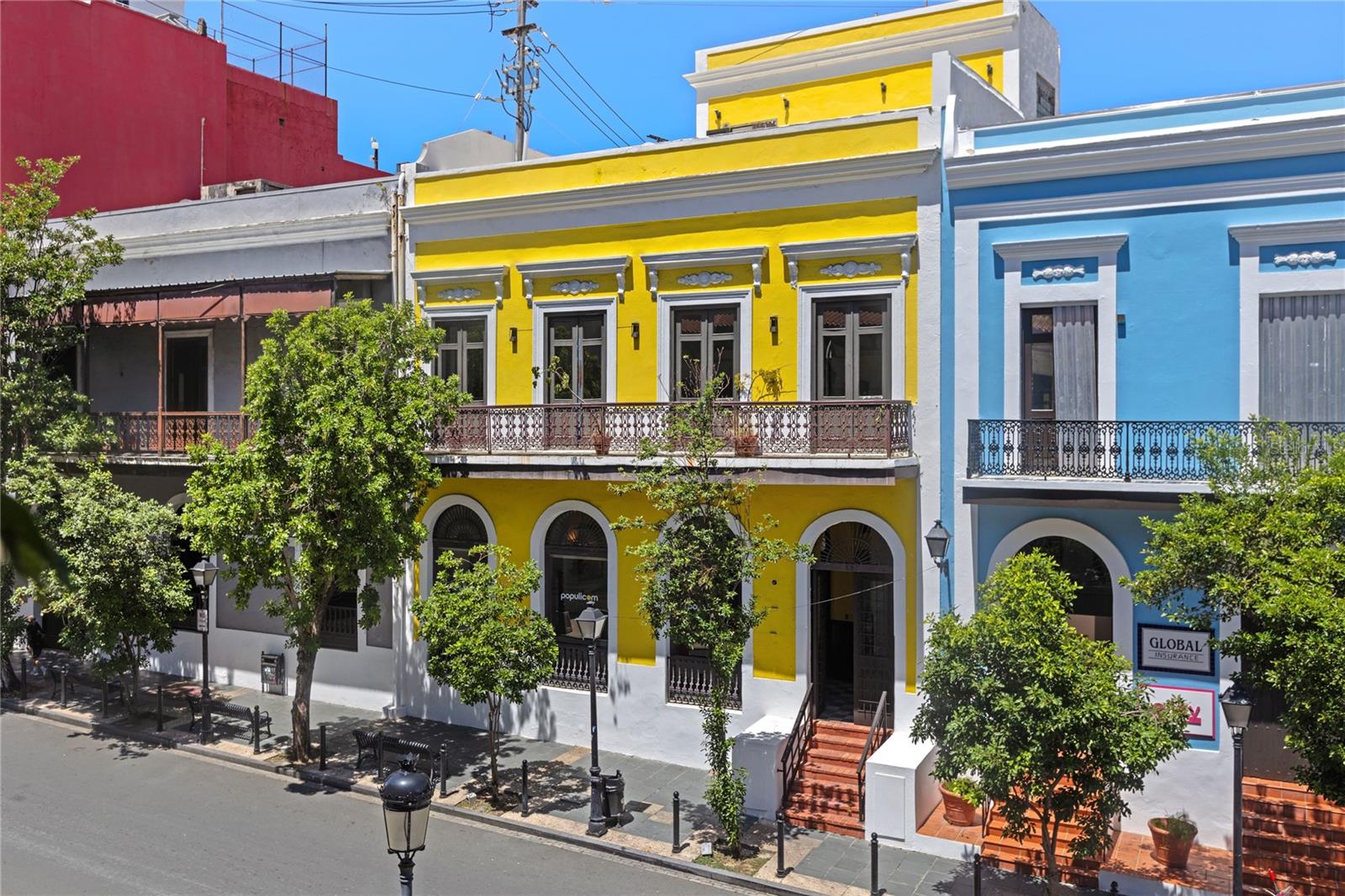 TIMELESS ELEGANCE MEETS MODERN DESIGN: HISTORIC LANDMARK IN OLD SAN JUAN. Landmark three-story historic commercial gem, meticulously restored to perfection. This distinguished property presents imposing facades on both Recinto Sur and Tetuán Streets, strategically positioned across from the Federal Courthouse, with convenient access to multiple parking facilities just a block away. Floor-to-ceiling glass windows frame the first level, where an open floor plan office awaits with impeccable high-tech style interior design. Marvel at the grandeur of 20+ foot ceilings, infinite arches, and an enchanting interior courtyard. The splendor of the second level is unmatched. The space flows freely, framed by arches and high ceilings, a luxe kitchen, and two balconies that provide captivating views of both Recinto Sur and Tetuán Streets. Whether envisioned as a luxurious office, a posh city apartment, or a seamless blend of both, the choice is yours to make. Ascend to the third level "mirador" revealing an expansive rooftop with privileged city views, perfectly poised for entertaining. Envision a swanky lounge or a lavish suite; the possibilities are endless. Tailored for the creative and distinguished entrepreneur, this property is an unrivaled source of inspiration. Situated at the heart of Old San Juan, a dynamic commercial hub, the locale is adorned with open-air plazas, charming cafes, and enticing restaurants—an ideal setting for out-of-the-box networking. Recognized as a Certified Historic Property, it enjoys a coveted tax-exempt status conferred by the Institute of Culture, translating to $0 property taxes and a mere 4% tax on rental income. Embark on a journey into a realm where history meets modernity, where the charm of Old San Juan converges with contemporary elegance. Seize the opportunity to acquire this distinguished property, now available for sale at $4.8 million—a timeless investment in sophistication and potential.