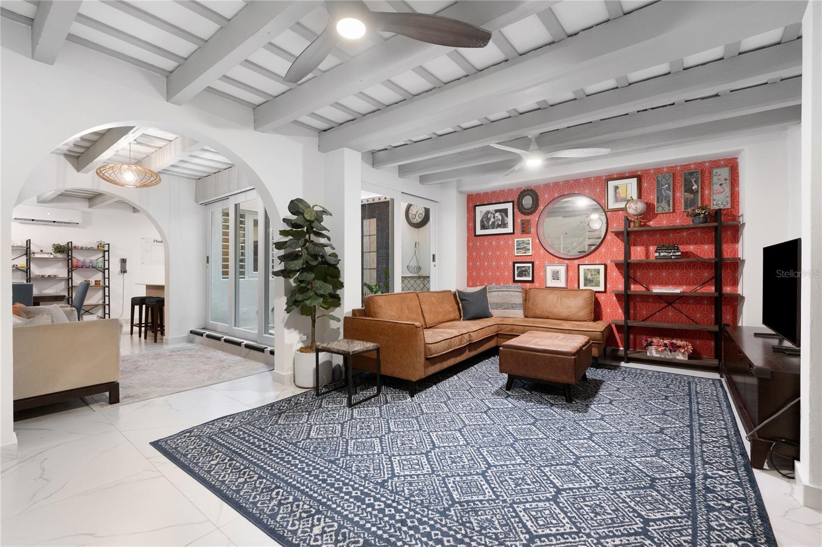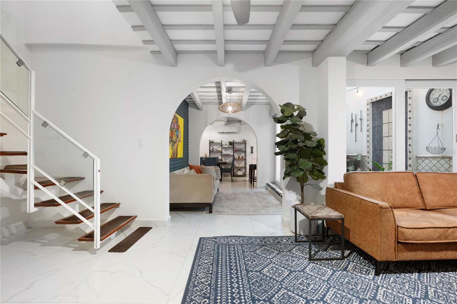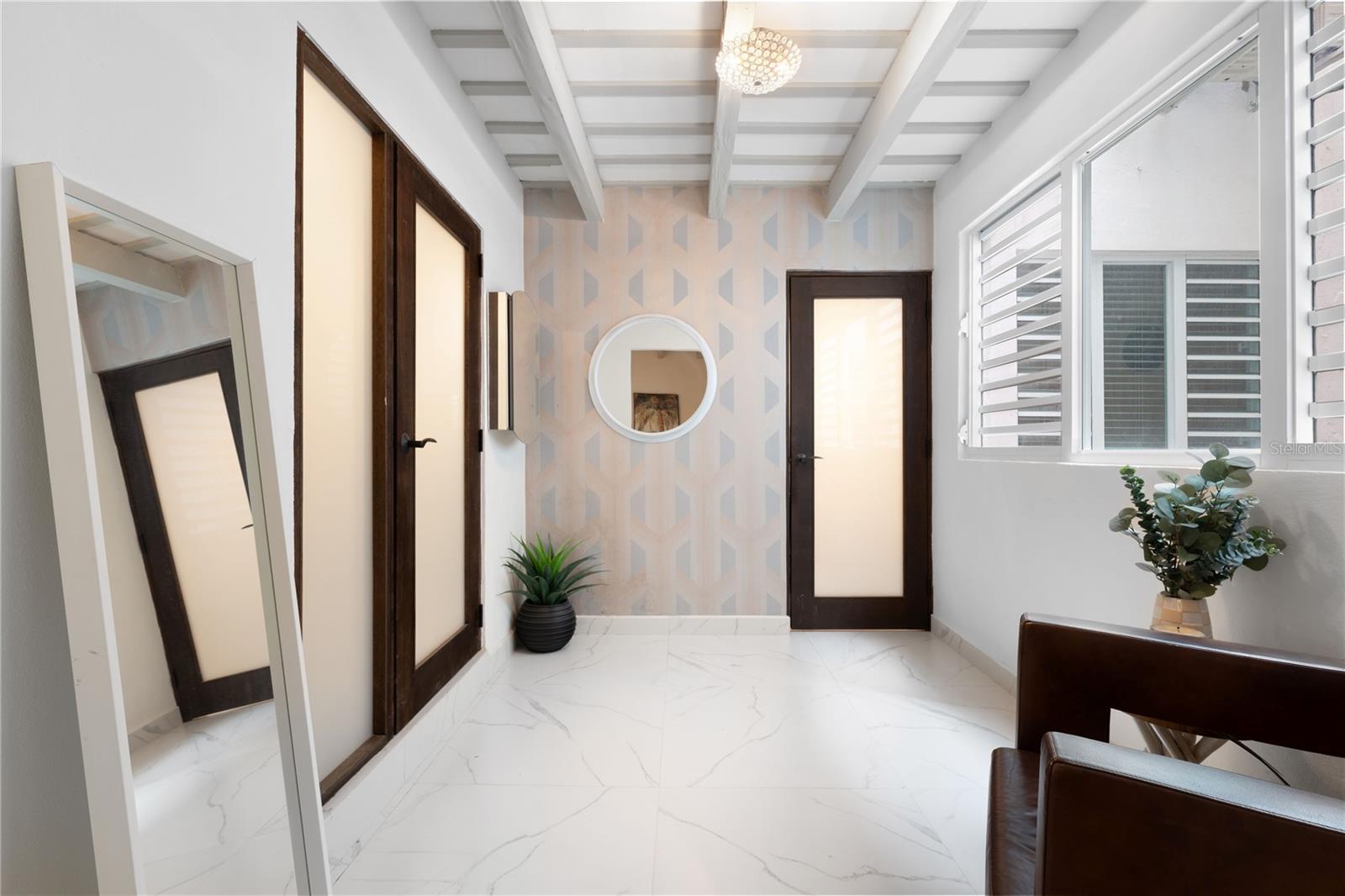 One or more photo(s) has been virtually staged. Set along Caleta de las Monjas—known to locals simply as La Caleta—this residence is anchored in one of Old San Juan’s most enchanting enclaves, where the city’s romance feels almost cinematic. The street is a narrow ribbon of smooth blue cobblestone, framed by beautifully painted Spanish Colonial façades and classic balconies that instantly evoke the sensation of stepping into a centuries-old coastal town. Just steps away, Plazuela de la Rogativa—widely considered the most breathtaking viewpoint in Old San Juan—unfolds above the bay with its canopy of trees, the historic city walls below, and the shimmering water beyond, in a scene so extraordinary it’s often chosen as a wedding setting. With only a limited number of residences along this exclusive stretch, opportunities here are exceptionally rare—making this not only a home, but a true Old San Juan acquisition. Set quietly in the interior of the building, the home enjoys a sense of privacy and calm—an unexpected retreat from the vibrant energy of the streets just beyond. At its center, a charming open-air courtyard brings natural sunlight into both levels, with the residence thoughtfully arranged around three sides of this private interior oasis. The result is bright, inviting, and refreshingly serene, with an effortless “townhouse” feel from the moment you arrive. Inside, the space has been tastefully updated with modern flooring, a sleek open kitchen that flows into the dining area, and two contemporary bathrooms featuring clean, polished finishes. Fully air-conditioned throughout, the home is elevated by curated lighting and an eclectic, worldly design aesthetic—layered, colorful, and sophisticated, offering a welcome alternative to the predictable all-white minimalism seen everywhere today. The open-air courtyard is a charming centerpiece—an intimate pocket of sky and light that invites effortless personalization, whether through curated greenery, a subtle water element, or ambient evening lighting. Ideal as a primary residence, a refined pied-à-terre, or an exceptional income-producing property, this home delivers what few Old San Juan addresses can: privacy, character, and the rare privilege of living just steps from the city’s most iconic and breathtaking setting—La Caleta and the unforgettable Plazuela de la Rogativa. NOTE: Interior courtyard photograph has been virtually staged.