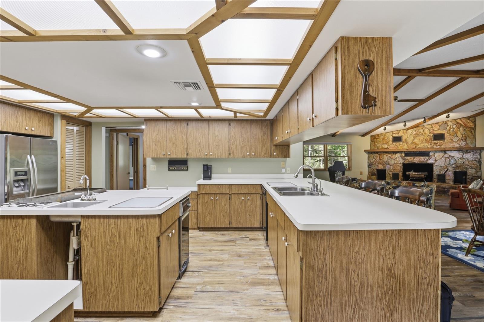 This is a MUST SEE!! Welcome to your private slice of North Florida paradise, just moments from the iconic Suwannee River. Tucked away on 5 serene acres—being thoughtfully divided from a larger 19+ acre parcel—this exceptional Old Town property offers the perfect blend of space, comfort, and natural beauty, all within approximately a quarter mile of the river. This must-see country retreat features three bedrooms and three bathrooms, including a highly desirable separate bedroom and full bath on the entry level, ideal for guests, extended family, or added privacy. From the moment you step inside, the home welcomes you with warmth and character, highlighted by a striking floor-to-ceiling stone wood-burning fireplace that spans an entire wall, creating a stunning focal point in the main living area. The owner’s suite is generously sized and designed as a true retreat, complete with a beautifully renovated en-suite bathroom finished in 2017 and its own private balcony, offering the perfect place to start or end your day in peaceful surroundings. The kitchen, while classic in design, has been impeccably maintained and presents as nearly new. It is fully equipped to meet every need, featuring an electric stove alongside a built-in gas grill and two gas burners, two trash compactors, a refrigerator with ice and water, a dishwasher, and a spacious center island with an additional sink. Three built-in cutting boards, all in excellent condition, and an abundance of cabinetry complete a space that is as functional as it is inviting. One of the home’s most captivating features is the expansive wraparound balcony, accessible from the owner’s suite, the kitchen, and multiple areas of the living and dining spaces, creating seamless indoor-outdoor living and providing the perfect setting for entertaining or simply enjoying the quiet beauty of the property. Beyond the main living areas, this property continues to impress with its versatility and amenities. The lower level includes an attached three-car garage, offering ample space for vehicles and storage. A large workshop provides an incredible opportunity for hobbyists, craftsmen, or business use, complete with electricity, three oversized doors, and even a car lift. For those who enjoy hosting or traveling, the property is equipped with three full RV hookups. Two wells and a septic system support the home, adding to its self-sufficient appeal. Set against a backdrop of natural Florida beauty, this property offers the chance to experience true country living. Imagine watching deer and turkeys wander through your land as you enjoy your morning coffee or relax in the evening with your favorite drink. With its proximity to the Suwannee River, expansive acreage, and endless features, this home is more than just a place to live—it’s a lifestyle. This is a rare opportunity to own a unique and amenity-rich property in Old Town, Florida. It is, without question, a must-see. Contact me for a showing today!