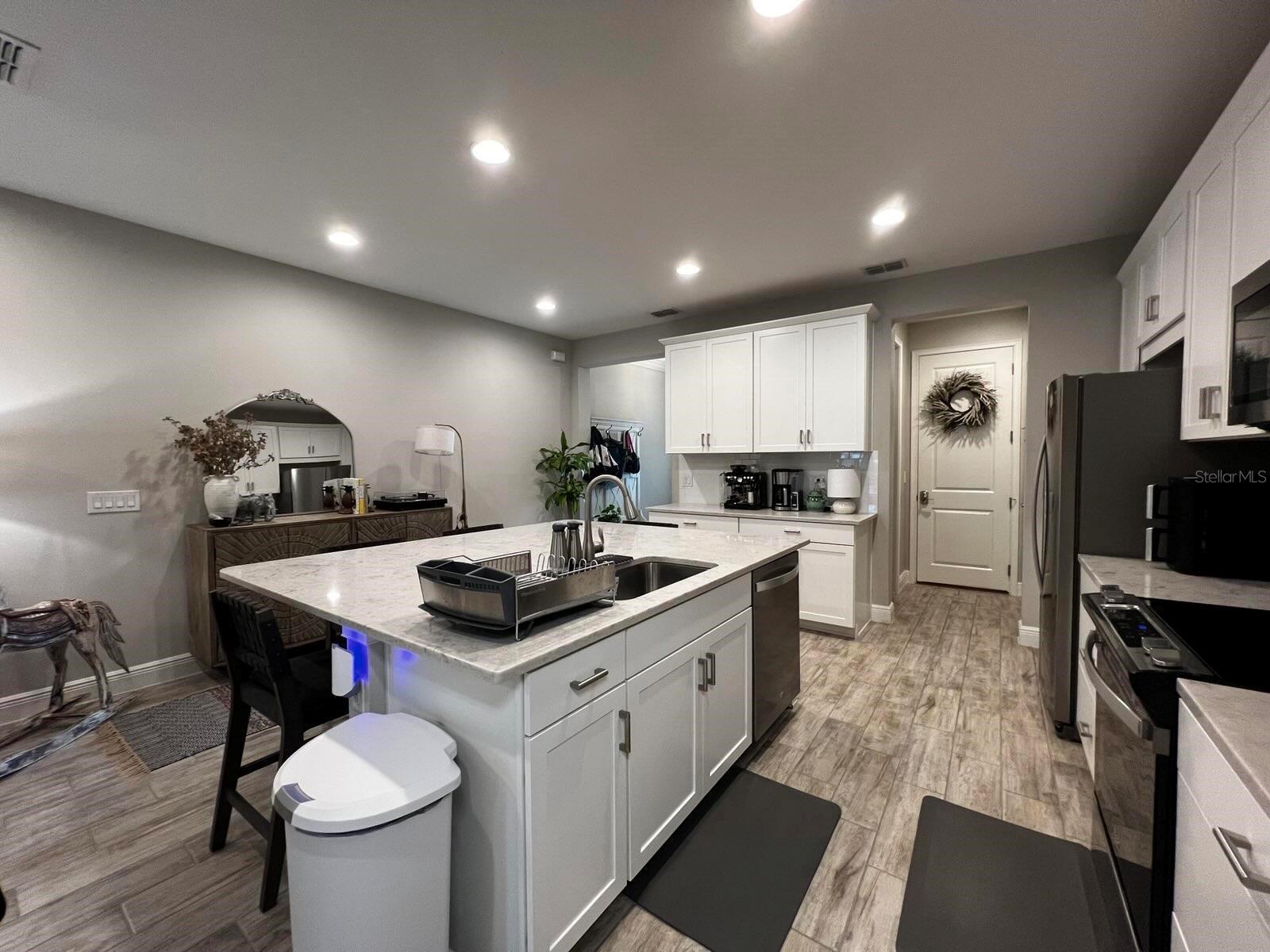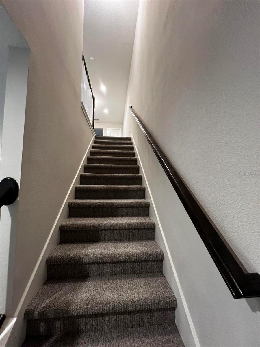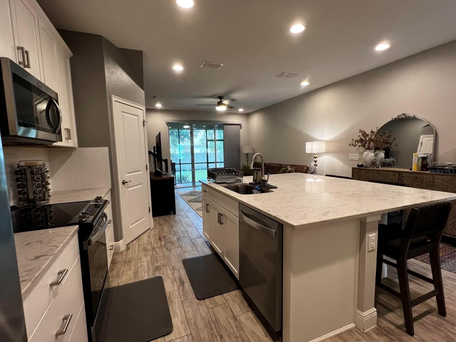 Beautiful Key West style, Waterfront Gated Community of BAYSIDE TERRACE has RESORT STYLE AMENITIES including a dock (kayak or canoe launch area) to catch those rays or enjoy the amazing Florida sunsets. Waterside Infinity Heated Saltwater Pool with covered Pavilion overlooking calm Water Views, Cabana, Two BBQ Grills, Gas Fire-Pit, Fitness Center, Clubhouse and more! Upon entering this ultra-modern 3 bedroom, 2 1/2 bath, you will feel at home. The kitchen is very spacious has extra-large island with built in Under-mount Sink, Quartz Countertops, brand new Stainless-Steel Appliances, and walk in pantry. Downstairs flooring tiled throughout. Outside screened in lanai boasts brick pavers. Upgraded Berber carpeting on the staircase with elegant rail leading to the carpeted loft and bedrooms. The master bedroom has ample room, walk in closet, his/hers closet and gorgeous en-suite bathroom with a second walk in closet! Bedrooms 2 and 3 has new carpeting and each has their own walk-in closet. Two owners...Unit has many upgrades throughout. Hurricane Shutters convey in the garage.