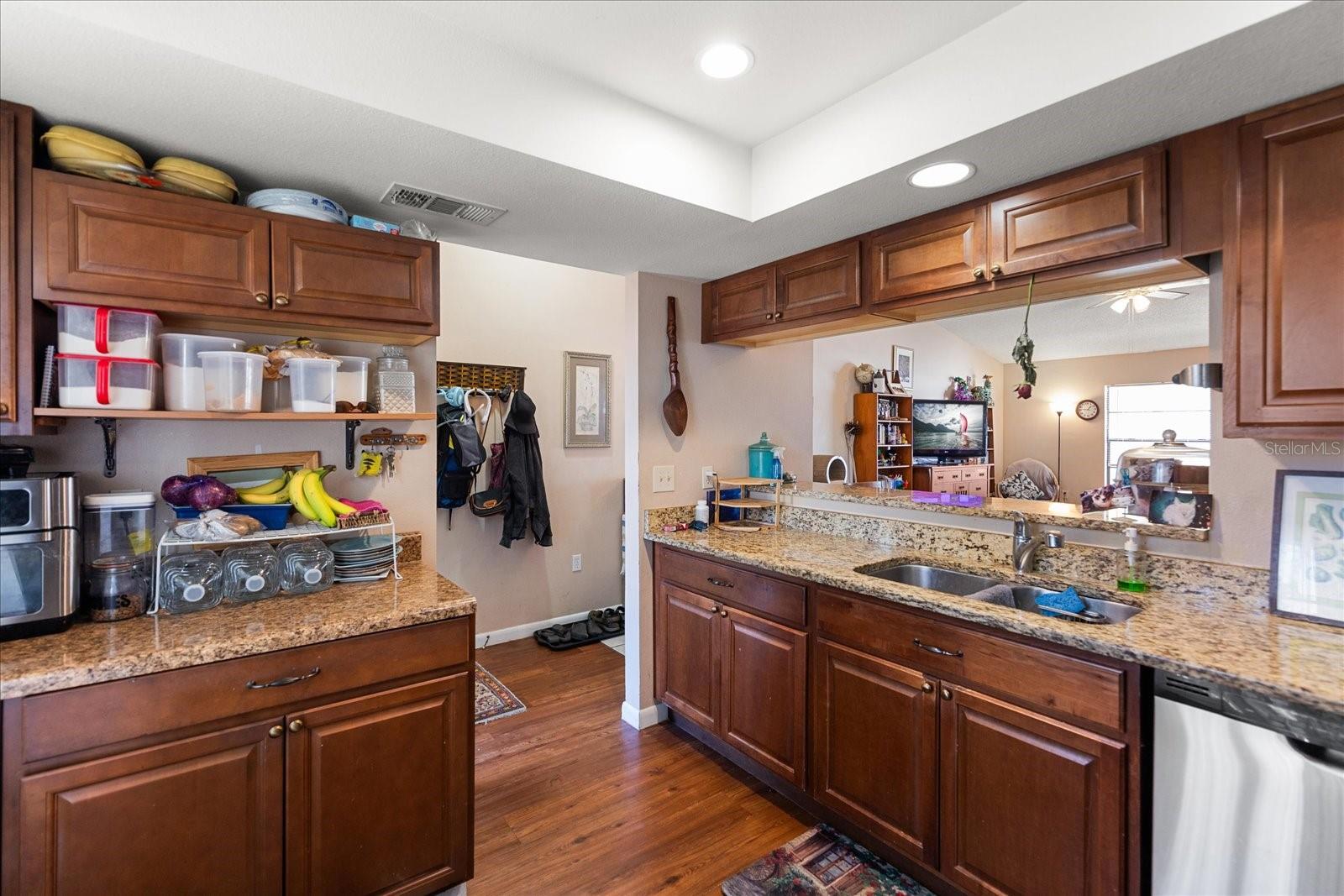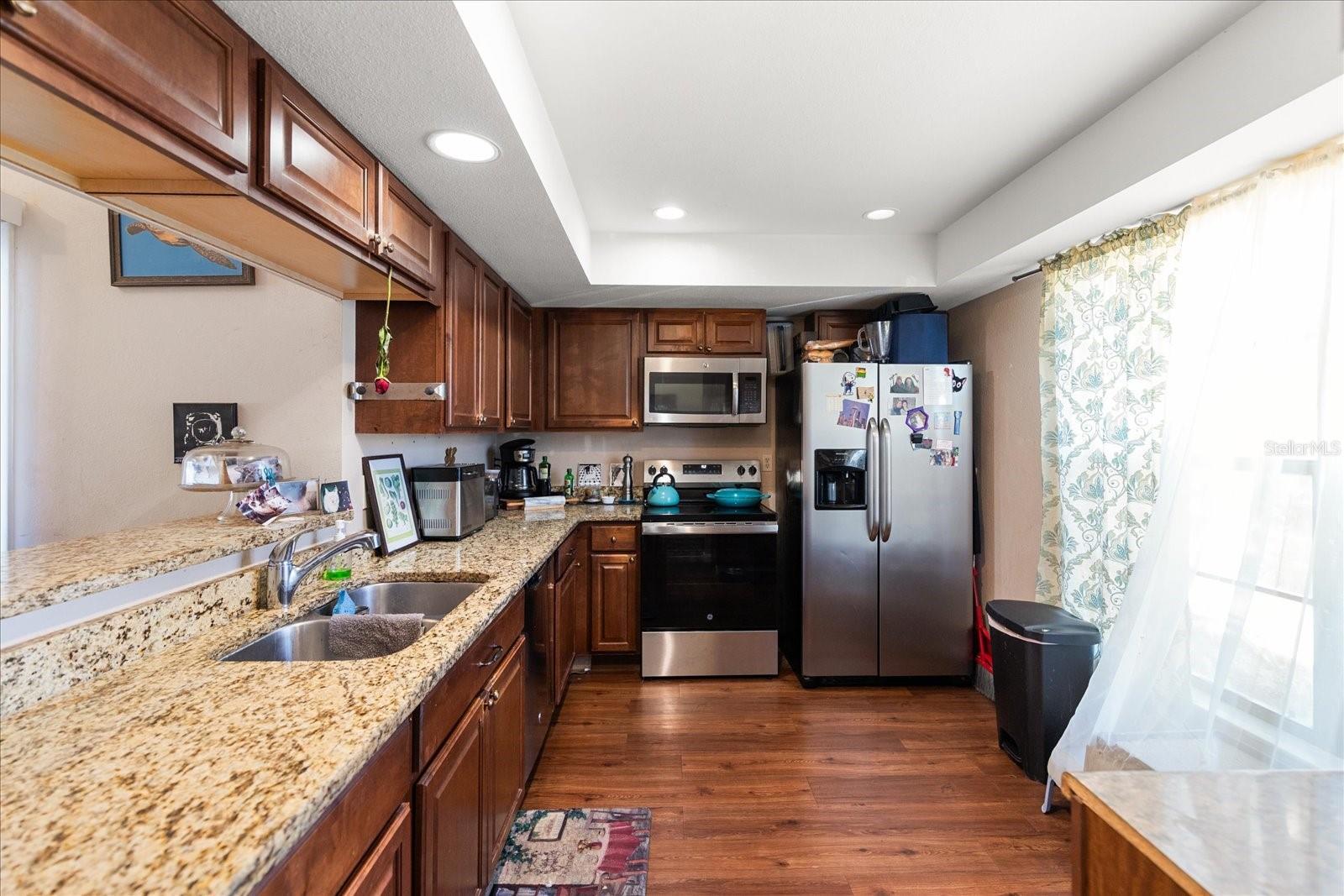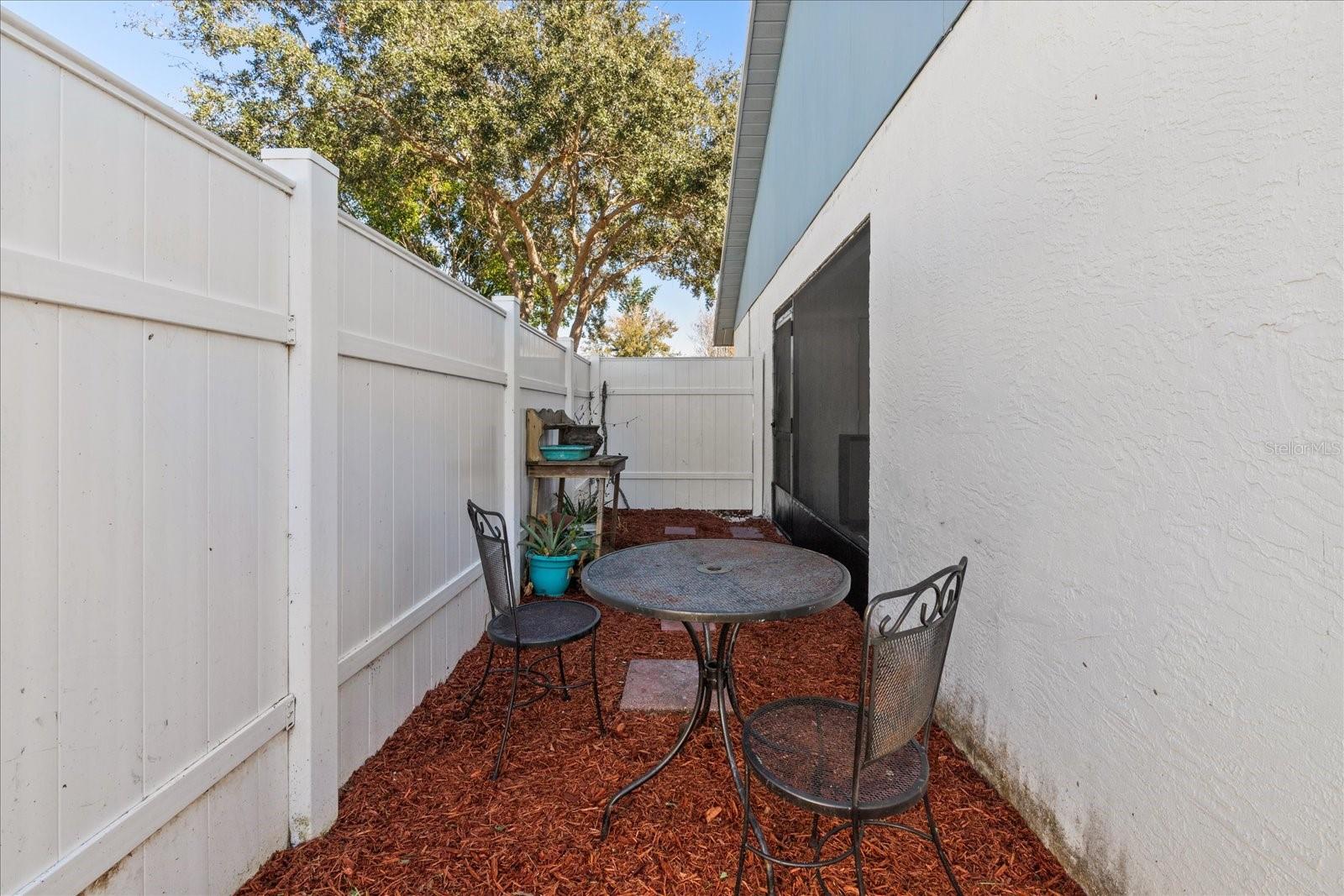 Short Sale. High and dry with NEW ROOF and NEW HVAC!! Welcome to this charming 2-bedroom, 2-bathroom single-family villa, offering a perfect blend of comfort and style. As you enter, you'll be greeted by volume ceilings that create an open, airy atmosphere throughout the home. The spacious kitchen features beautiful granite countertops and wood cabinets, providing both elegance and functionality. Stainless steel appliances complete the modern kitchen, making it ideal for cooking and entertaining. Relax or entertain in your private enclosed patio or enjoy your own private yard, fully enclosed by a vinyl fence for added privacy and security. This home also boasts a new roof and a new HVAC system, ensuring peace of mind for years to come. Located just a short walk from the community pool, this villa is in a highly desirable school district, making it a fantastic option for families. Best of all, the HOA fees are only $110/month, offering incredible value for the community. Don’t miss the opportunity to make this wonderful home yours!