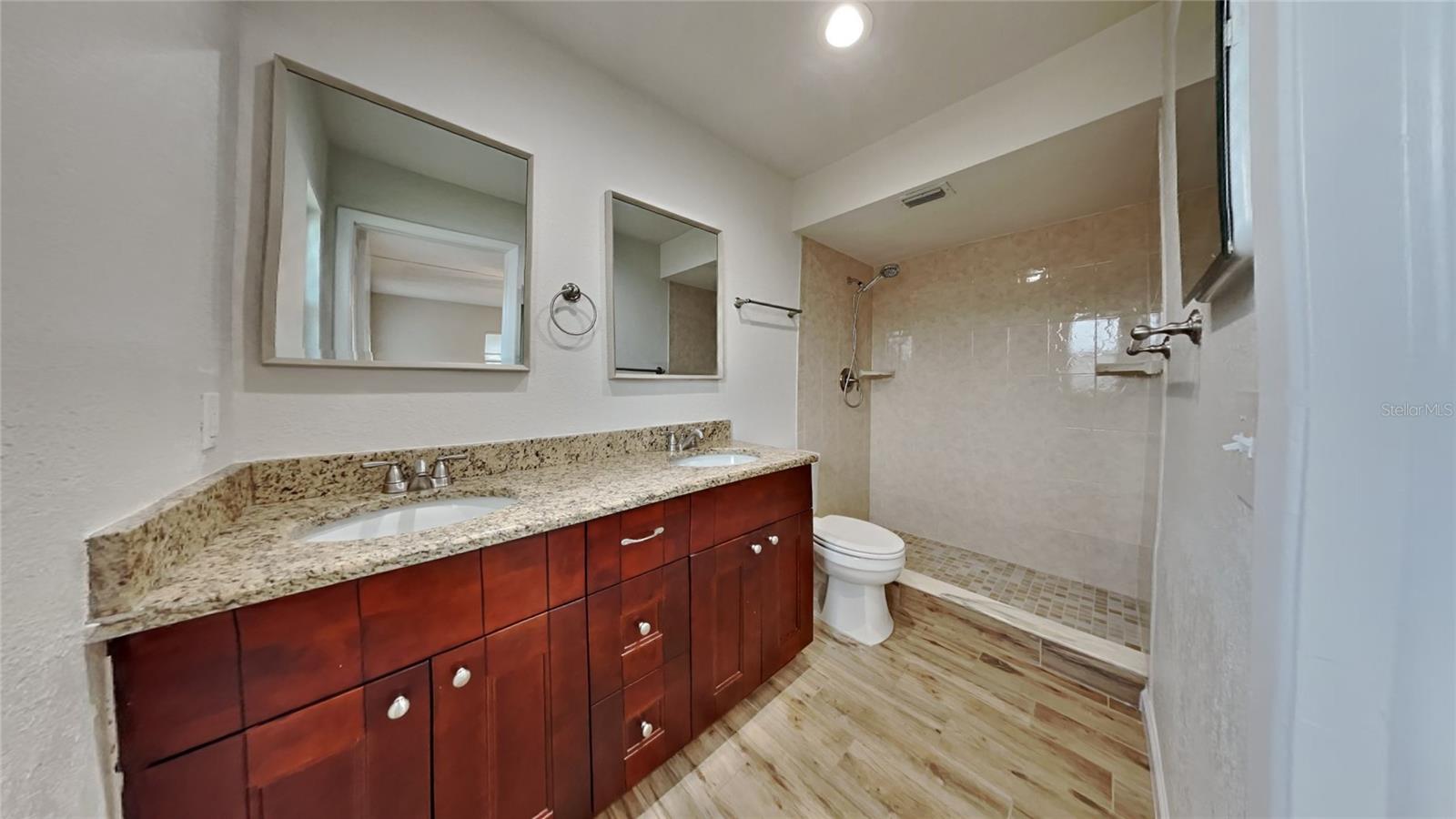 Welcome to this stunning 3-bedroom, 3-bathroom home with a 2-car garage, located in the highly desirable Harbor Palms community—free of CDD or HOA fees! As you step inside, you'll immediately notice the open, airy layout that creates an inviting atmosphere. The kitchen is a chef’s dream, featuring stainless steel appliances, ample cabinet storage, and elegant granite countertops. The tile flooring throughout adds a touch of modern sophistication. Adjacent to the kitchen is a bedroom with its own en-suite bathroom, perfect for guests or family members seeking added privacy. The spacious primary suite includes a sliding glass door leading to the patio, a large walk-in closet, and an en-suite bathroom complete with a dual sink vanity. The living room opens to a screened-in patio, offering a comfortable outdoor space to relax and unwind. The fully fenced backyard provides privacy, while an additional covered outdoor patio adds versatility for entertaining or enjoying quiet moments outdoors. This home also comes equipped with solar panels, which are fully owned and convey with the property, offering energy efficiency and savings. Conveniently located near shopping, entertainment, medical facilities, and with easy commutes to both Tampa and St. Petersburg, this home truly has it all. Don’t miss this incredible opportunity—schedule your showing today!