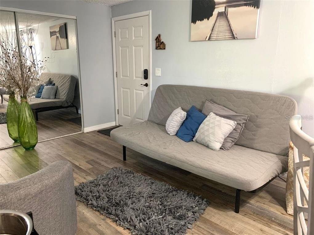 Welcome home - this modern 2-Bedroom/2-Bathroom condo offers convenient location between Palm Harbor & Tampa, and maintenance free living at The Gardens of Forrest Lakes community. Located on the second floor, the condo is bright with natural light and offers a spacious balcony. It is fully renovated with granite countertops; glass backsplash; newer cabinets, appliances and flooring; new (2024) water heater. The two bedrooms are spacious: the primary offers a walk-in closet and en suite with a walk-in shower and a single vanity; the second bedroom has a built-in closet with sliding mirror doors. Guest bathroom has a bathtub with shower and a single vanity. There is a laundry room in the unit. The community offers a pool, tennis court, basketball hoop, playground, lake access with a fishing pier and picnic area. Owner financing available.