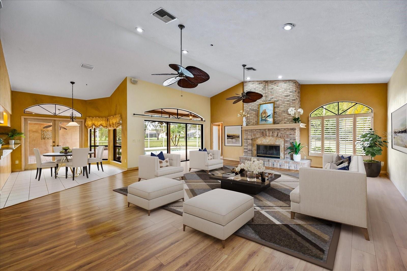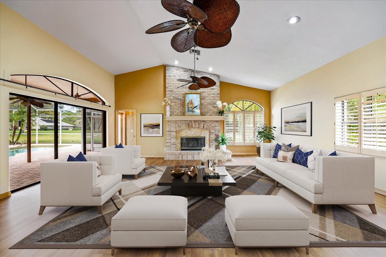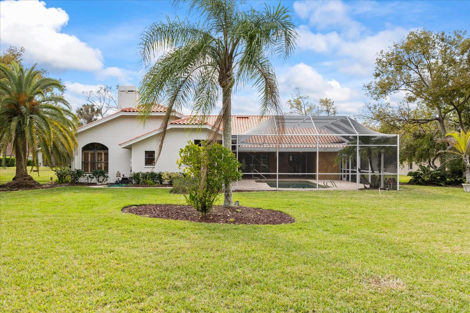 One or more photo(s) has been virtually staged. Reduced! Welcome to the luxurious custom designer Campagna built home at 30 Stanton Circle. This stunning home in Turtle Creek on the 7th Tee of the North Golf Course in highly sought after East Lake Woodlands, Ardea Country Club. Don't miss out on this lovely 3022 square foot executive pool home with an extra large private one-acre lot. This four-bedroom, four bath home includes a stunning pool and views view views on the golf greens! This well-loved residence has magnificent curb appeal with its brick exterior, double door entry, and large circular driveway big enough to park seven or more cars and the home is also on a culdesac. The landscape and tile roof is most appealing from the exterior and the interior has voluminous high ceilings, high-end designer bathrooms and wood cabinets in the Kitchen, a three car garage, large closets throughout including in the Primary Bedroom two extra large closets with closet systems installed in both. The Family Room is extra spacious with lovely views to the pool and beyond to the Golf Course including lovely shutters on the windows and the space is a large gathering area for your family including a brickwall fireplace that is wood burning. The Lanai has twi large covered gathering areas overlooking the golf course, a great space for entertaining and relaxing poolside. East Lake Woodlands Ardea invited clubs has just invested $22M in the golf courses, restaurants, tennis and pickleball, pools and more! Come live in an amazing country club community with all the amenities for living life to the fullest in Florida. Our sunny days hold the worlds records for the most consecutive days of sun on the world! The Florida Gulf Coast beaches are also a short drive away to America's #1 beaches as well as the best shopping, entertainment, sporting events, and restaurants. We live in paradise, come visit for insight to what life is all about! Some photos are virtually staged..