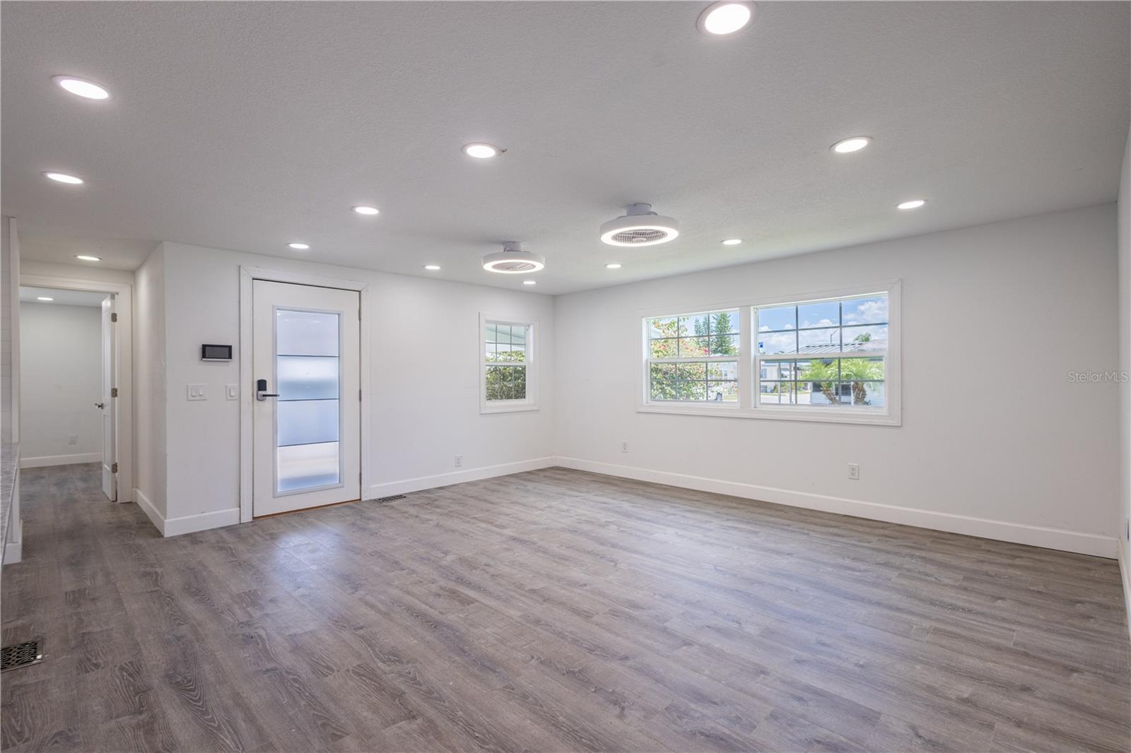 Presenting a stunningly renovated beauty in Gull-Aire Village, a sought after 55+ golf cart and pet-friendly community on the north shores of Tampa Bay! If you're searching for your piece of Floridian paradise where no expense was spared for modernized living, then look no further! This wide open floor plan home will be sure to impress with EXQUISITE UPDATES and tons of fun bells and whistles. The impressive features include: fingerprint lock access for the front and back doors, a coastal inspired kitchen with new stainless steel appliances, slide-in range with glass cooktop, dual zone beverage refrigerator, quartzite countertops, a workstation sink, a continental center island with a bar sink, and a glass canopy vent hood complete with a pot filler. Two bedrooms plus a bonus room (bonus could be made into 3rd bedroom) there's room for your imagination in how you need that space!! Bathrooms are updated with luxury vanities, gorgeous tile shower surrounds and modern fixtures. Imagine grilling your favorite ribeye in your outdoor kitchen that overlooks the community park. This tastefully designed outdoor space has stainless steel cabinets, a Kitchen-aid outdoor grill, and tall ceilings that create a quaint alfresco dining ambiance. Unexpected extras include a tankless hot water heater, new double pane windows, electric fireplace in the master with a 55' TV, HVAC 2018, and a new 200amp electrical panel with disconnect. Gull-Aire Village is a land-owned community which equates to the low-cost monthly maintenance fees for those seeking an affordable option in an active community. Community amenities include a heated pool, clubhouse, shuffleboard courts, and bonus social events to mingle with your neighbors. Conveniently located near America's best beaches, local dining establishments, shopping, medical care facilities, grocery stores and more! Schedule your private showing today!