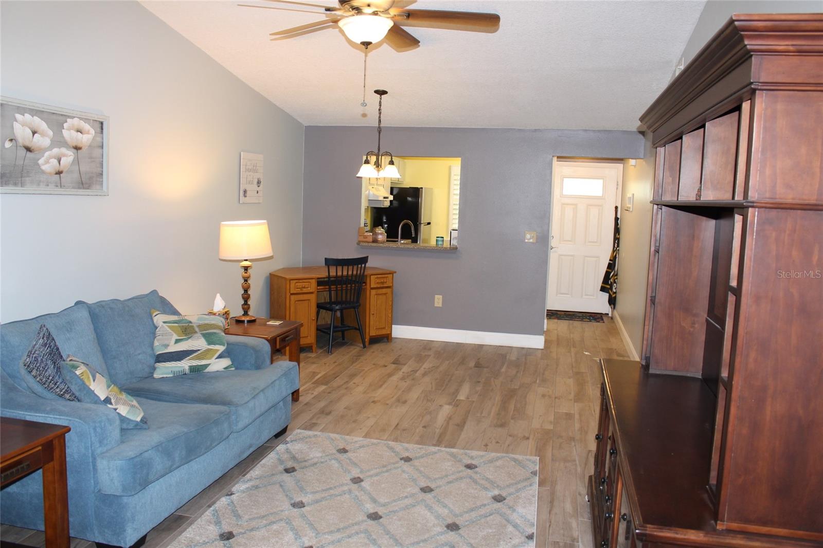 Affordable living in this lovely move in ready 2 bedroom, 2 bath villa with a carport and storage room. Updated with replacement windows, flooring, updated bathrooms, newly replaced showers and plantation shutters throughout. Large living/dining room combination with vaulted ceilings. New sliding glass doors to a enclosed porch that opens to a large patio with trees and foliage for that country feeling. The master bedroom is large with an updated master bath, new flooring and sliding glass doors to the finished porch. The guest bedroom is also large and bright with a nice sized closet. Completly furnished bright kitchen with all appliances. The washed and dryer is located in the villa. Covered parking and a generous storage room.Located close to shopping, restaurants and approximately 20 minutes to St. Petersburg/Clearwater airport and Tampa International Airport. Room dimensions are estimated and the buyer should measure the rooms for exact sizes and verify all information