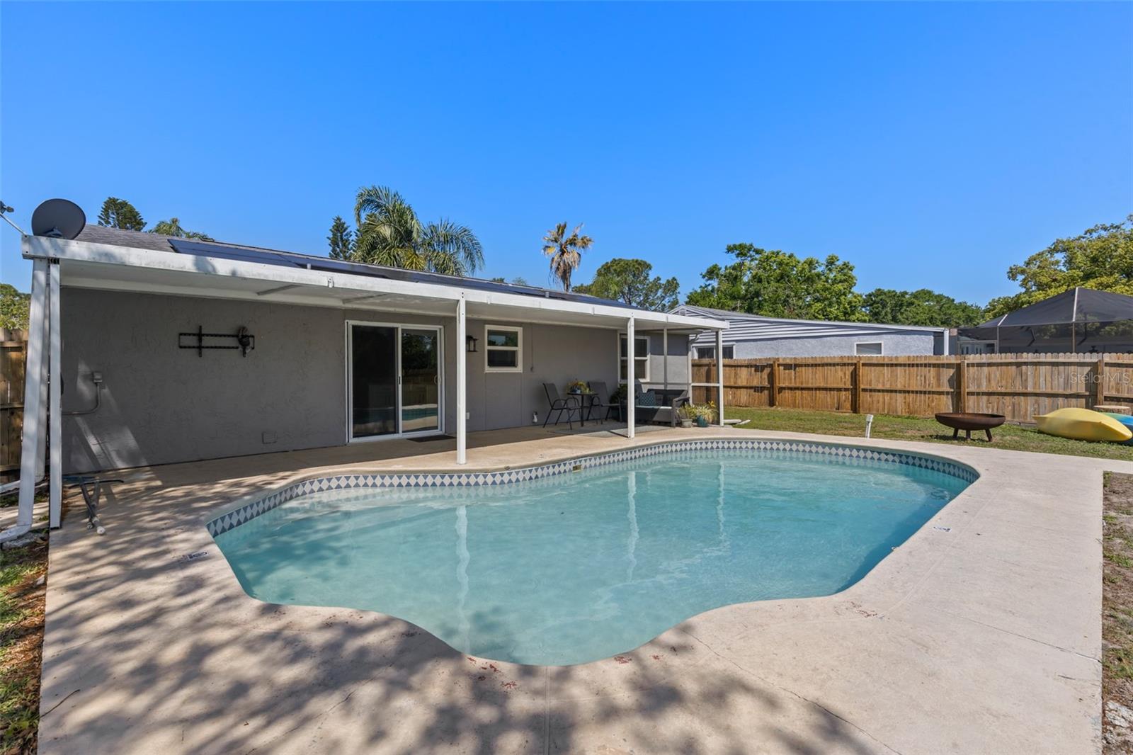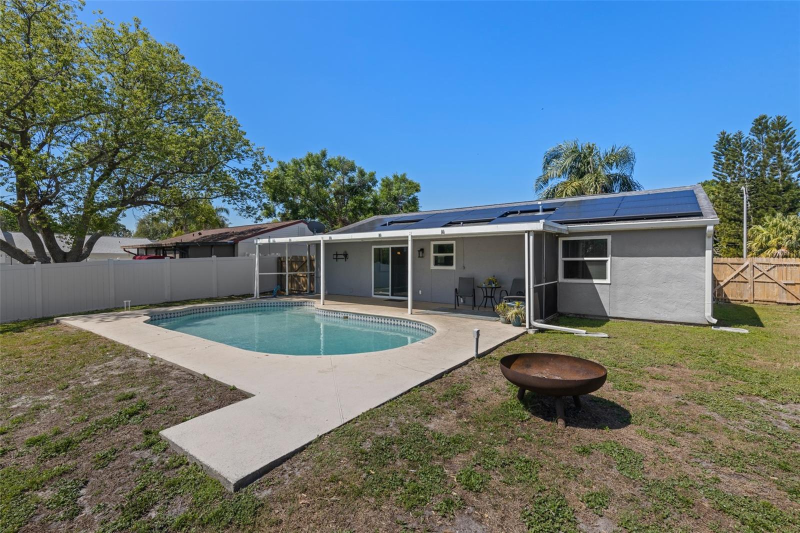 Your Florida Dream Pool Home Awaits! HURRY—This adorable, move-in ready 3BR/2BA single-story pool home is a true gem and won’t last long! Tucked away on a private fenced lot, with conservation behind the lot and no rear neighbors, this home offers the perfect mix of peace, privacy, and pure Florida fun! From the moment you step in, you’ll fall in love with the open floor plan, luxury vinyl flooring, and fully remodeled kitchen and bathrooms (2019) featuring solid surface countertops and gleaming stainless steel appliances. Stay cool and comfy year-round with a newer HVAC system (2018) on a twice-a-year maintenance plan. Hurricane-rated windows (2021), replaced ductwork (2021), and added gutters (2022) give peace of mind and energy efficiency. Additionally solar panels (2021) help keep your electric bills low—just $95/month, and the seller is even covering the $500 transferable fee! Love to entertain? Your oversized pool and covered lanai are made for sunny days, BBQs, and memory-making.Oversized fenced backyard offers total seclusion—plus there’s a storage shed for all your tools and toys, even an EV charging outlet ready for your electric car. Additional features include: Inside laundry room with extra storage and newer washer/dryer (2019). Tile floors in bathrooms for added durability and style. Assumable flood insurance policy for added savings. Sentricon termite protection system (Seller pays transfer). Location, location, location! You’re: 10 miles to Honeymoon Island, 15 miles to world-famous Clearwater Beach, 25 minutes to Tampa International Airport, Raymond James Stadium, and downtown Tampa. The neighborhood is only 4 blocks from Mobbly Bayou Beach and 1 mile to Veterans Memorial & R.E. Olds Parks. This meticulously cared-for home is an unbeatable combination of value, lifestyle, and location. Come see it before someone else claims your slice of Florida paradise!