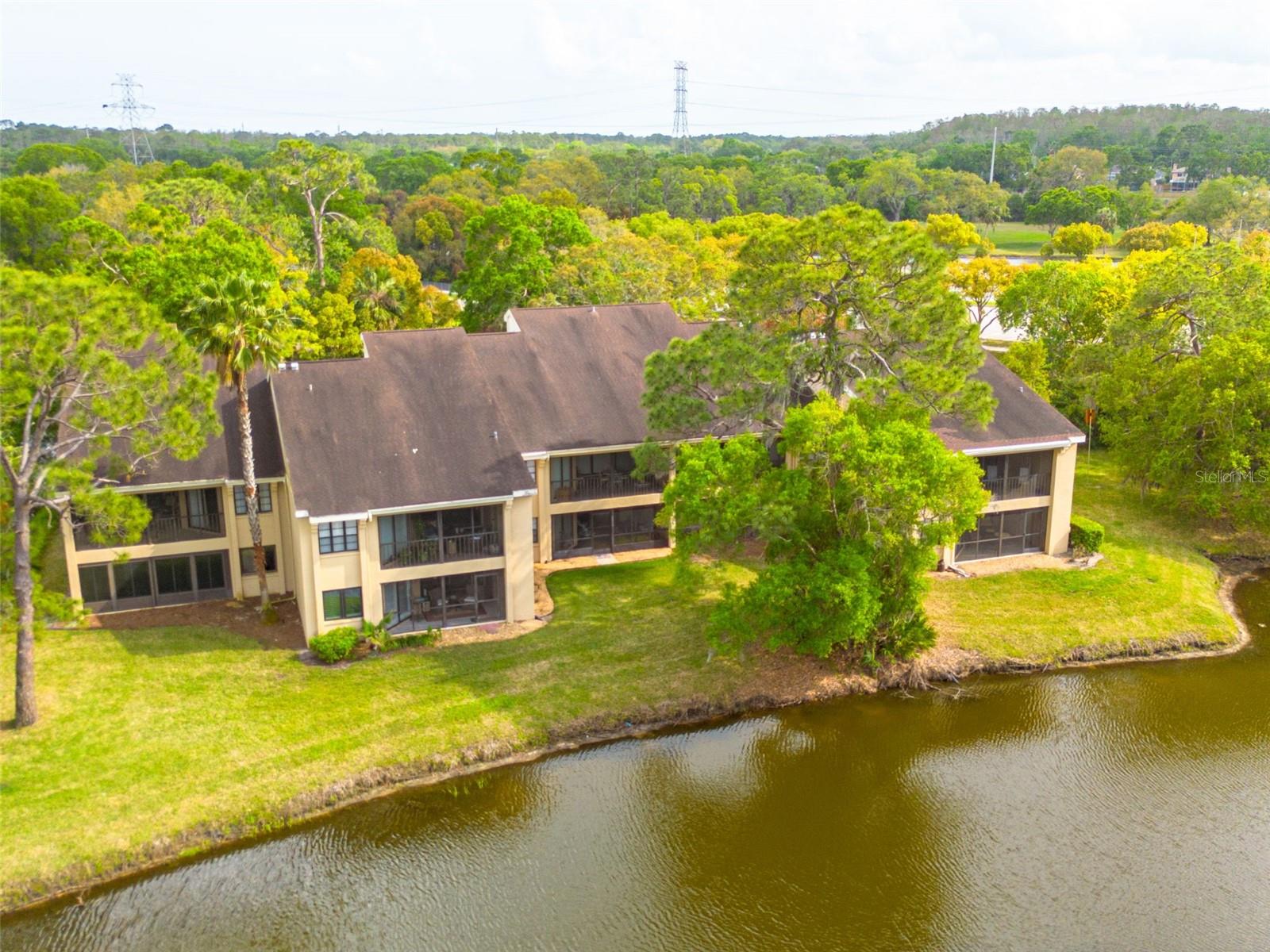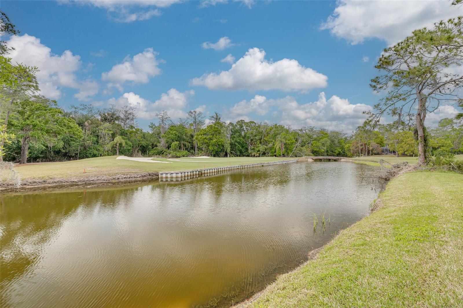 A true breath of fresh Air! Welcome to this exceptionally updated ground-floor condo located on the 9th hole of East Lake Woodlands Country Club. With a private entry, this spacious 2-bedroom, 2-bathroom residence offers an open floor plan with a living room that has views of nature, water and the 9th hole! What else could you be looking for! The large living room flows seamlessly and welcomes you into the home with it's warm tranquil colors and natural light. To the left of the living room is a spacious east facing kitchen, with sliding glass doors that open to another patio giving it the warm bright feeling of home. The kitchen features recently updated soft-close, and generous amount of beautiful solid wood cabinets, neutral granite countertops, tile flooring, and stainless steel appliances. There's also plenty of lighting, including under-cabinet lighting, a convenient coffee bar for morning breakfast as well as bar top seating—perfect for everyday use or entertaining. You will not lack for storage space for all your kitchen accessories. The dining area has the added feature of either a wine bar or coffee bar for your enjoyment. As you move through the living room you can step outside onto the tranquil lanai, where you can relax and enjoy serene water and golf course views. The lanai is large and can be used to entertain or relax and read a book. It is equipped with a ceiling fan for added comfort and can be accessed from the living room and primary bedroom. It’s the ideal spot to unwind after a round of golf or simply enjoy the peaceful outdoor setting. The primary bedroom is generously sized, offering ample space for all your furniture, an extra large walk-in closet, and a lovely view of the golf course with sliding glass doors leading out to the lanai and watching sunsets. The updated primary bathroom features solid wood cabinets, dual sinks, a soaking tub, and a separate walk-in shower. The guest bedroom is also spacious and is located on the opposite end condo making it a true split plan arrangement. The guest bathroom offers an oversized vanity and a tub/shower combo. You will lack nothing in this excellent tranquil condo that is move in ready and waiting for you! The community provides a variety of amenities including a swimming pool. With its unbeatable location on the 9th hole of the East Lake Woodlands Country Club and an excellent range of community amenities, this property is a must-see. Don't miss the opportunity to make this gorgeous condo your new home! A/C 2019, Water Heater 2019, Newer Washer & Dryer, 2022 Cabinets, Microwave & Refrigerator!