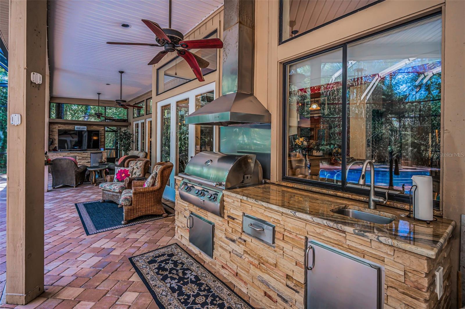 BACKUP OFFERS ACCEPTED!! You will be drawn to this home by the stunning architecture and its peaked & varied roof lines. Also sure to catch your eye are the dramatic brick entrance with double wood & glass doors and the pavered porch, sidewalk and driveway. Located on a large (1/2 acre) conservation lot & short cul-de-sac in the coveted community of Deerpath in East Lake Woodlands. Several custom builders completed this gated community of only 50 homes which created a private, exclusive setting. Impressive, open floorplan vaulted ceilings and high windows, large living areas including formal living and dining rooms, kitchen, nook and family room. There are 4 (possible 5th, flex space currently being used as a home gym and office space), 3 full baths and a pool half bath. the completely remodeled Master Bedroom Suite offers walk in closet with built in closet system, large all glass shower and built in tub, his and hers vanities with custom cabinets and granite counter tops. Gorgeous, fully remodeled Chef's Kitchen with a decorator island, built in pantry cabinet & breakfast bar, custom cabinets and granite counter tops. The large family room has built in shelving and a gas fireplace. All the living areas have French Doors out to the lanai. Do you enjoy the outdoors? You will love the very large lanai space with built in outdoor kitchen and Man Cave with stone fronts and granite tops. Plenty of room for seating and dining. The screen enclosed pool was resurfaced and a 6 person spa was added in 2022. Convenient half bath and storage closet for pool supplies and toys. 3 car garage has a storage closet plus built in shelving. Extra items are a whole house generator and whole house water treatment system.