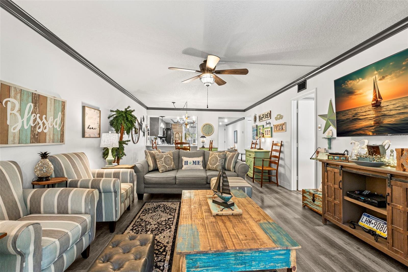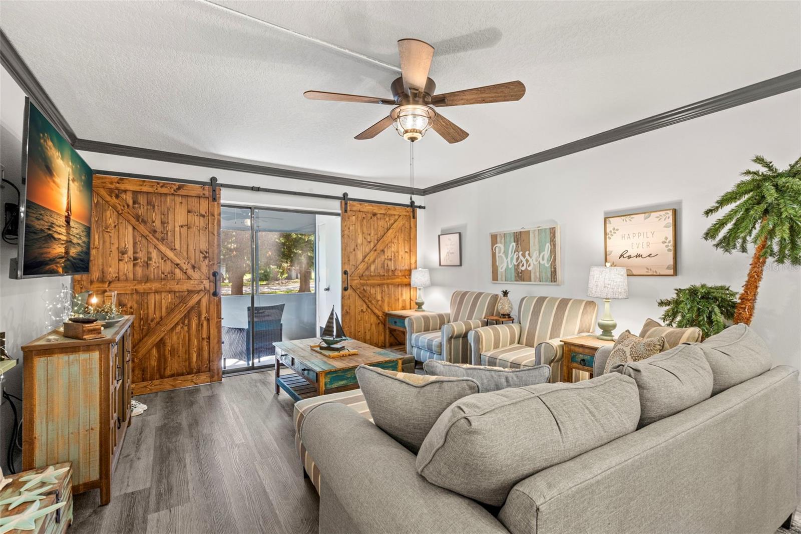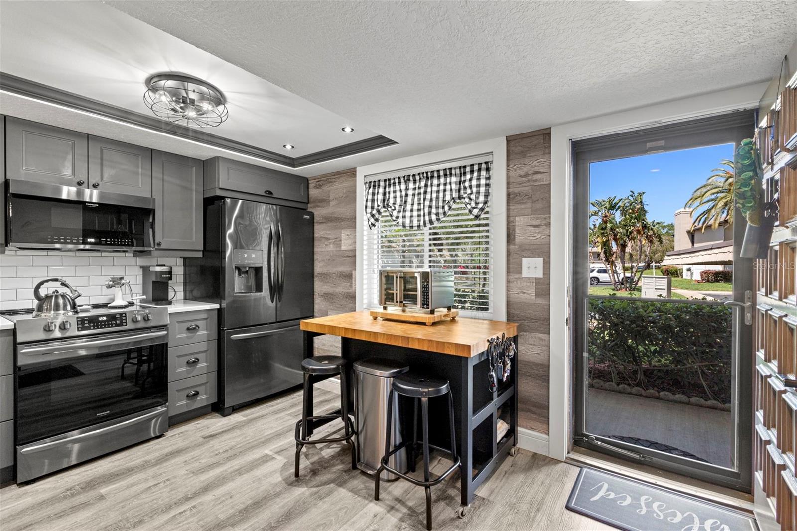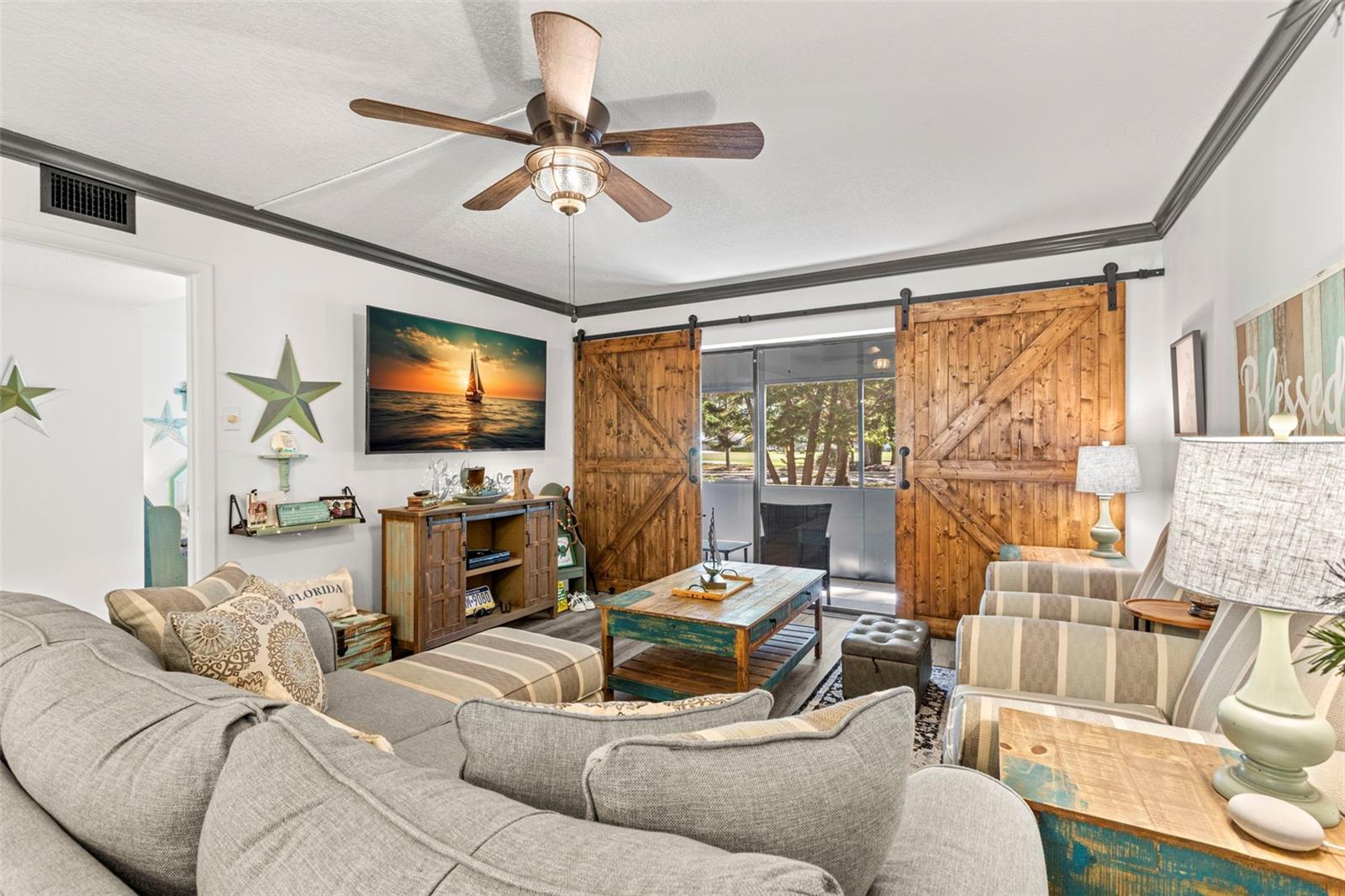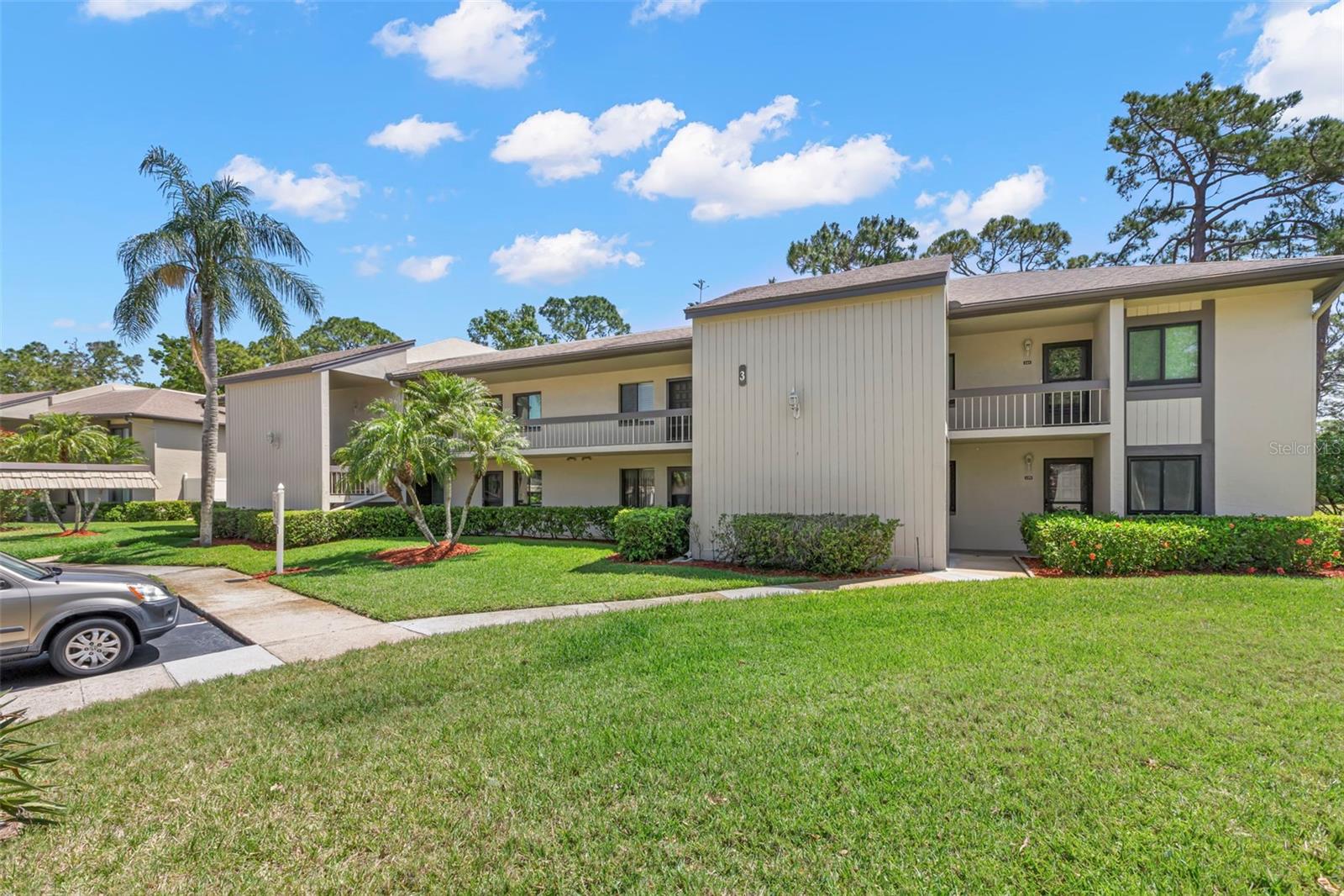 STUNNING! This renovated condo is simply stunning! Located in the premier golf community of East Lake Woodlands, you will enjoy the work this seller has put into this home, AND IT IS SOLD COMPLETELY FURNISHED....EVERYTHING IS INCLUDED!!! This totally turnkey condo is a 2 bedroom, 2 bath, ground floor unit with low E glass thermal windows. As you enter the condo you will see the beautiful kitchen with many cabinets & a movable work island with a wood top - great workspace! The kitchen boasts newer Frigidaire Gallery appliances, quartz countertops, recessed lighting & a fantastic center light fixture, subway tile backsplash, a huge & deep farm style sink, crown molding & luxury vinyl flooring. There is a custom wall pantry area that gives you even more storage cabinetry with drawers ... genius idea! This home is tastefully decorated in a coastal, country style that will appeal to all!! The dining room has a beautiful chandelier & the living room has very nice furniture for your comfort + a 60" TV mounted on the wall for your enjoyment. You can close the barn doors at the lanai to achieve total privacy when needed, & there are wide baseboards & crown molding to add a classy touch to the home. Your screened lanai has a ceramic floor i& is paneled for privacy but screened for airflow; just open the front storm door, pull down the screen & let the air flow through the condo! Great feature so you can enjoy our mild Florida winters! Luxury vinyl flooring in the main living areas & newer carpeting in both bedrooms that is soft on your feet. The master bedroom has THREE (!!) walk in closets for plenty of storage! Your master bath has a high vanity with quartz sink top & waterfall style faucet +ADA height toilet for your comfort. The guest bedroom is welcoming & has double closets & the guest bath looks great with shiplap on the walls, push button toilet, new tile surround at the tub, updated vanity w/quartz top w/square sink & waterfall style faucet. This home is the perfect choice for a snowbird looking for a winter nest or a full time resident looking for a move in ready place to live!! The gated community of East Lake Woodlands is a great place to live & this condo has two pools to choose from plus a great clubhouse to use for your large gatherings! This is a country club community & has the option for you to join the Ardea Country Club for additional fees to play golf on your choice of two championship 18 hole golf courses, play pickleball, tennis Olympic style lap pool, fitness center, onsite restaurant, & more. (call the country club for membership details). This community is conveniently located near everything! Airports, medical, shopping, dining, beaches, entertainment...all just a short drive away!