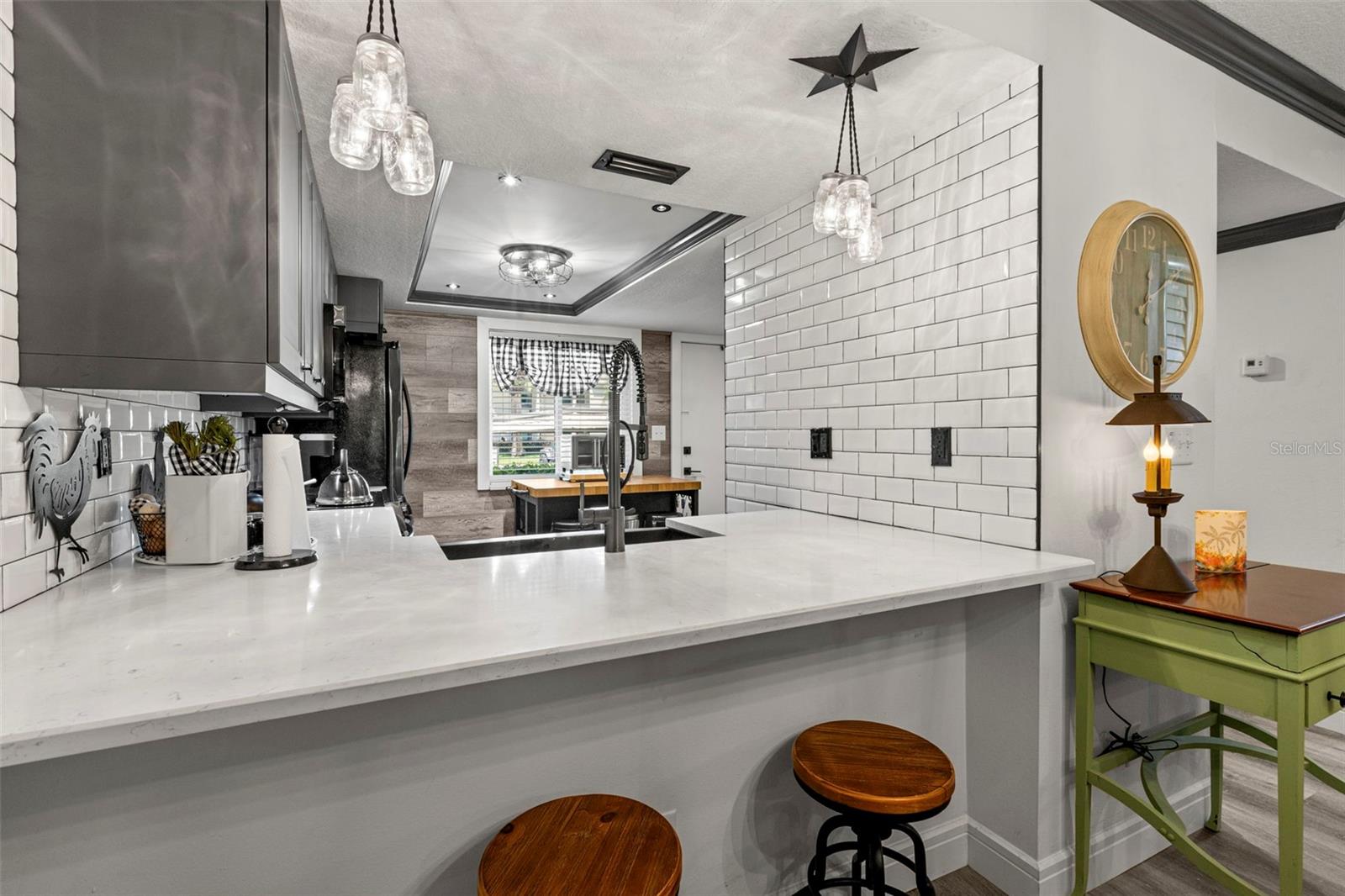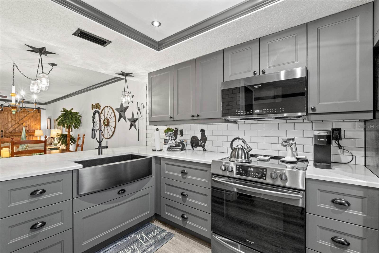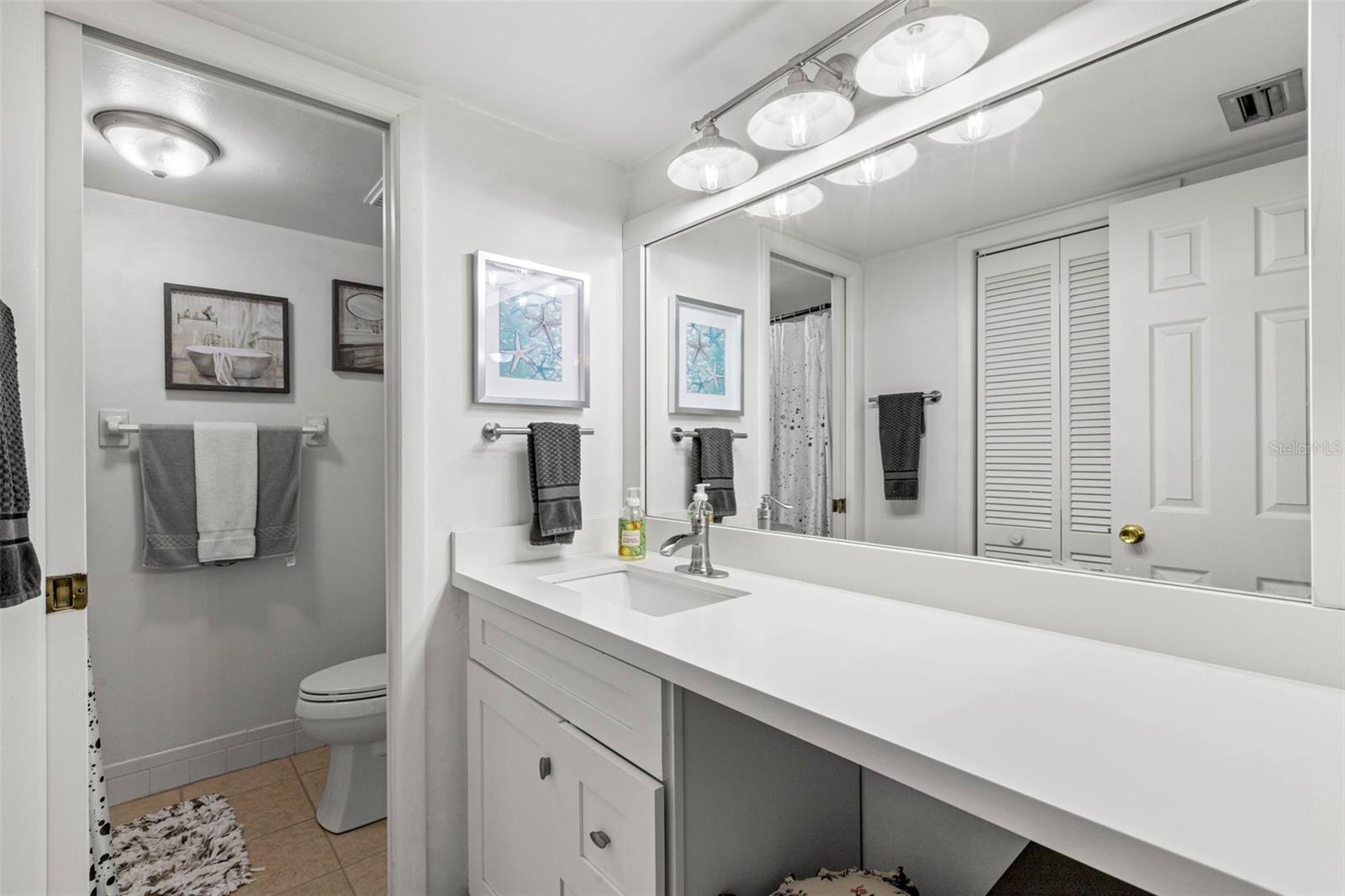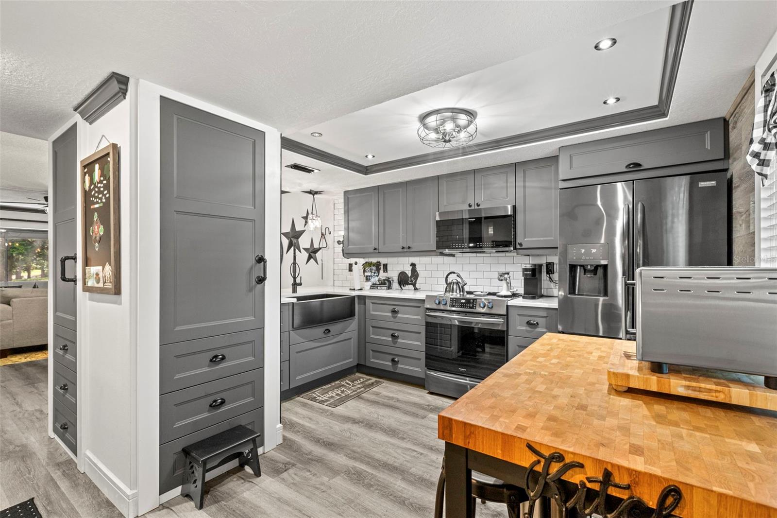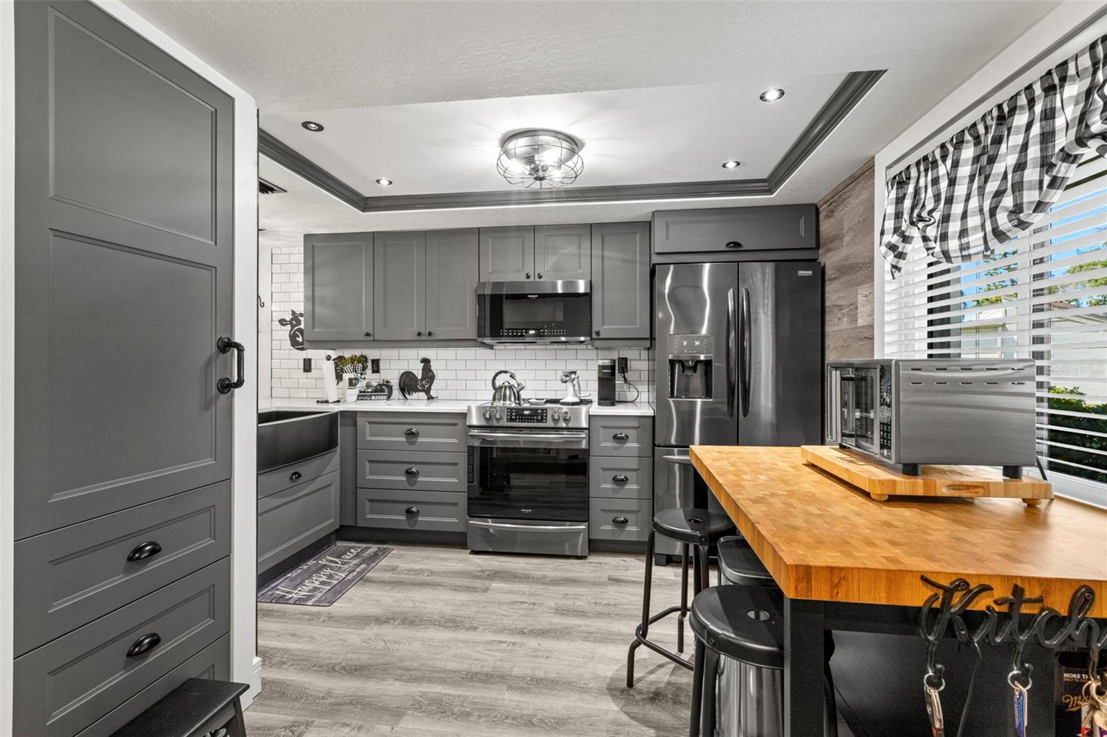STUNNING! This renovated condo is simply stunning! Located in the premier golf community of East Lake Woodlands, you will enjoy the work this seller has put into this home, AND IT IS SOLD COMPLETELY FURNISHED....EVERYTHING IS INCLUDED!!! This totally turnkey condo is a 2 bedroom, 2 bath, ground floor unit with low E glass thermal windows. As you enter the condo you will see the beautiful kitchen with many cabinets & a movable work island with a wood top - great workspace! The kitchen boasts newer Frigidaire Gallery appliances, quartz countertops, recessed lighting & a fantastic center light fixture, subway tile backsplash, a huge & deep farm style sink, crown molding & luxury vinyl flooring. There is a custom wall pantry area that gives you even more storage cabinetry with drawers ... genius idea! This home is tastefully decorated in a coastal, country style that will appeal to all!! The dining room has a beautiful chandelier & the living room has very nice furniture for your comfort + a 60" TV mounted on the wall for your enjoyment. You can close the barn doors at the lanai to achieve total privacy when needed, & there are wide baseboards & crown molding to add a classy touch to the home. Your screened lanai has a ceramic floor i& is paneled for privacy but screened for airflow; just open the front storm door, pull down the screen & let the air flow through the condo! Great feature so you can enjoy our mild Florida winters! Luxury vinyl flooring in the main living areas & newer carpeting in both bedrooms that is soft on your feet. The master bedroom has THREE (!!) walk in closets for plenty of storage! Your master bath has a high vanity with quartz sink top & waterfall style faucet +ADA height toilet for your comfort. The guest bedroom is welcoming & has double closets & the guest bath looks great with shiplap on the walls, push button toilet, new tile surround at the tub, updated vanity w/quartz top w/square sink & waterfall style faucet. This home is the perfect choice for a snowbird looking for a winter nest or a full time resident looking for a move in ready place to live!! The gated community of East Lake Woodlands is a great place to live & this condo has two pools to choose from plus a great clubhouse to use for your large gatherings! This is a country club community & has the option for you to join the Ardea Country Club for additional fees to play golf on your choice of two championship 18 hole golf courses, play pickleball, tennis Olympic style lap pool, fitness center, onsite restaurant, & more. (call the country club for membership details). This community is conveniently located near everything! Airports, medical, shopping, dining, beaches, entertainment...all just a short drive away!