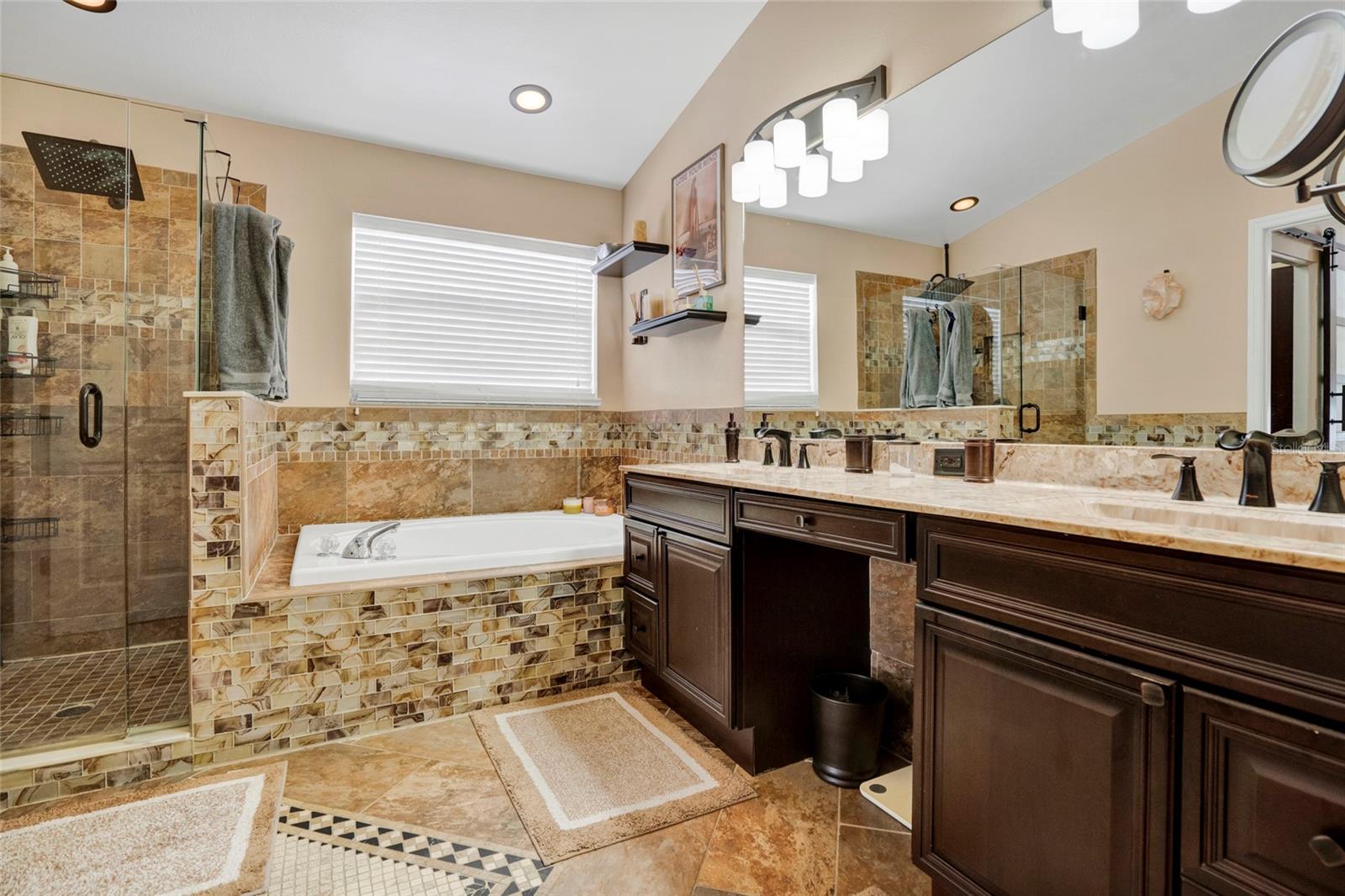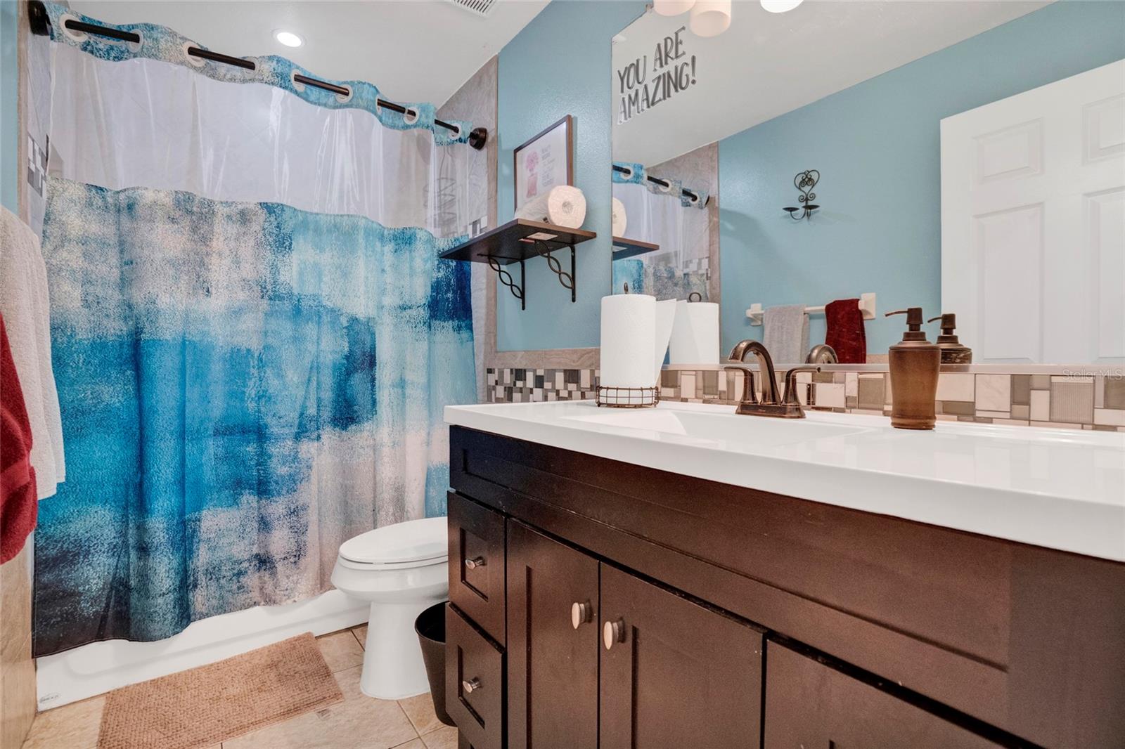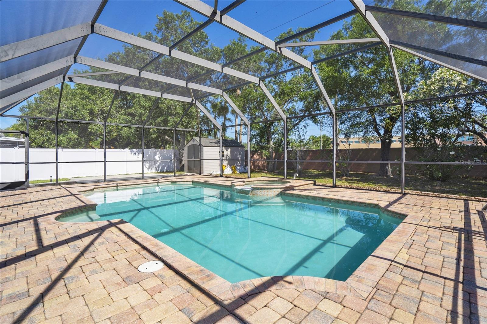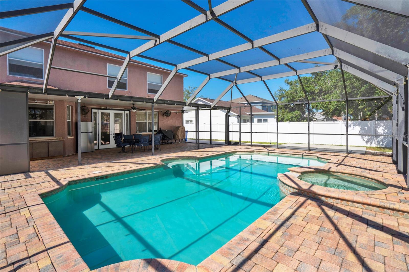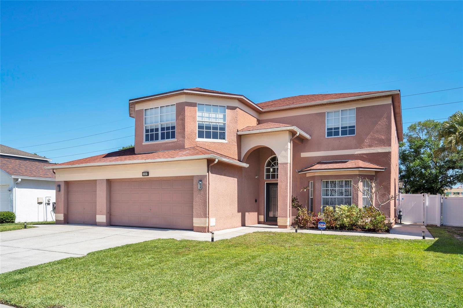 One or more photo(s) has been virtually staged. PRICE IMPROVEMENT! Experience the perfect mix of space and style in this well-maintained 5-bedroom, 3-bath pool home with a 3-car garage offering nearly 3,000 square feet of comfortable living space on a generous ¼-acre lot. Located in the sought-after Eastlake Oaks community, this home blends everyday functionality with thoughtful upgrades throughout. Step inside to a two-story foyer that opens to formal living and dining rooms, creating a great first impression. Custom tile entrance and luxury vinyl plank flooring leads you into the open-concept great room, where the large kitchen, living area, and bonus space come together—ideal for both everyday living and entertaining. The kitchen is designed with space and function in mind. Featuring two islands (one with bar seating), granite countertops, stainless steel appliances, a breakfast nook, and even a built-in desk area, it’s ready for everything from busy weekday mornings to holiday gatherings. Just off the family room is a versatile bonus room that works well as a home office, playroom, or additional entertaining space. A full bath downstairs is conveniently located for guests. Upstairs, the spacious primary suite offers a quiet retreat, complete with a comfortable sitting area, large walk-in closet, double vanities, garden tub, and a separate shower. All additional bedrooms are nicely sized, and the upstairs laundry room with utility sink and washer/dryer adds extra convenience. The screened-in lanai pool and spa (heated and saltwater) create a great space for relaxing or entertaining outdoors. The outdoor kitchen is ready for your personal touch with granite countertops, and storage—perfect for casual cookouts or weekend gatherings. There's also additional patio space outside the screened area and a fenced backyard with a storage shed that conveys. This home has been well cared for, with key updates including: Roof (2017), HVAC (2019), Water heater (2025), Water softener (2022), Exterior vinyl fence (2020), Smart security system, Updated French doors, light fixtures, New exterior paint, and more. No flood damage from either hurricane! Eastlake Oaks offers a community pool, playground, and is close to parks, shopping, restaurants, and the Oldsmar Trail—just a short walk away. This home is move-in ready and offers a great layout for anyone looking for space, comfort, and convenience. Schedule your showing today!