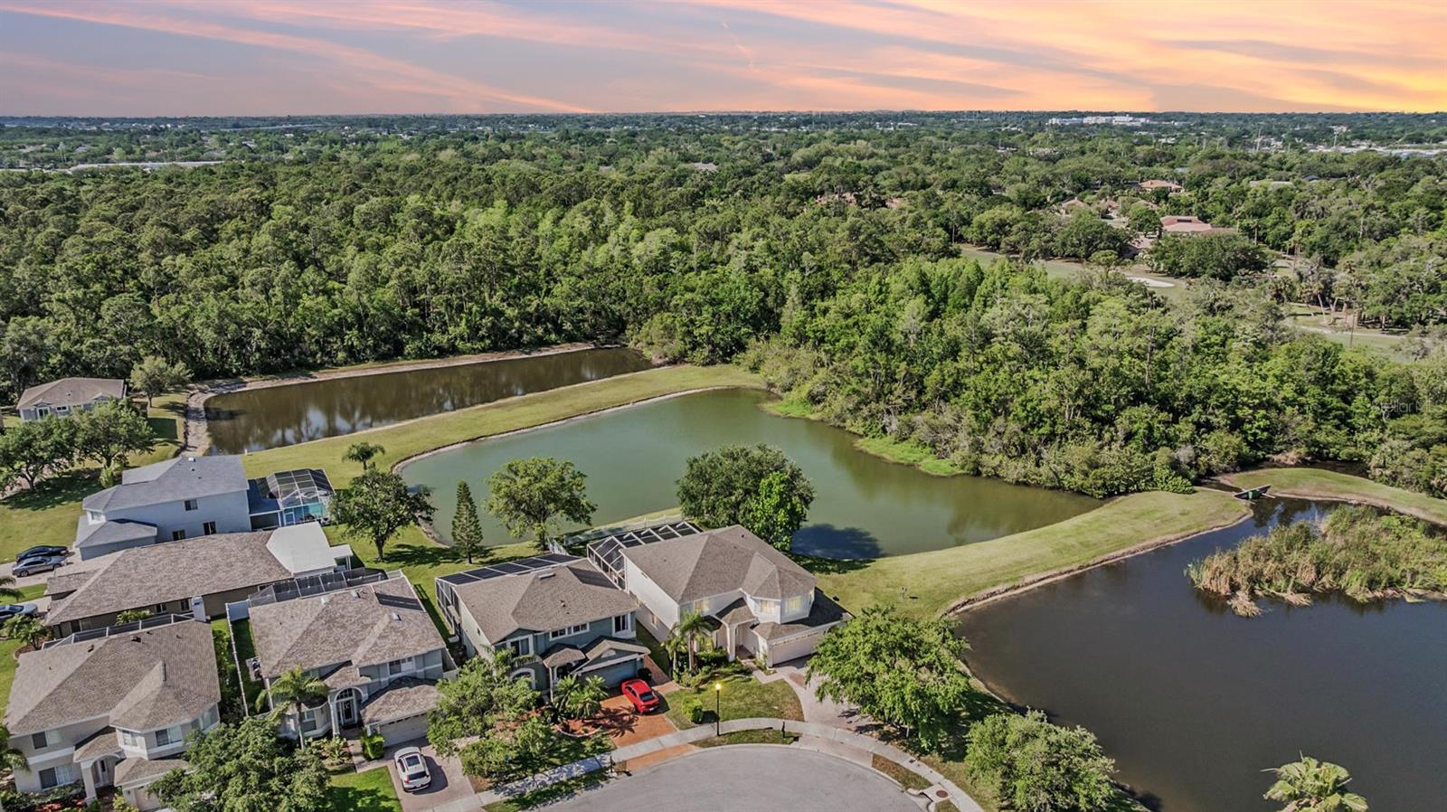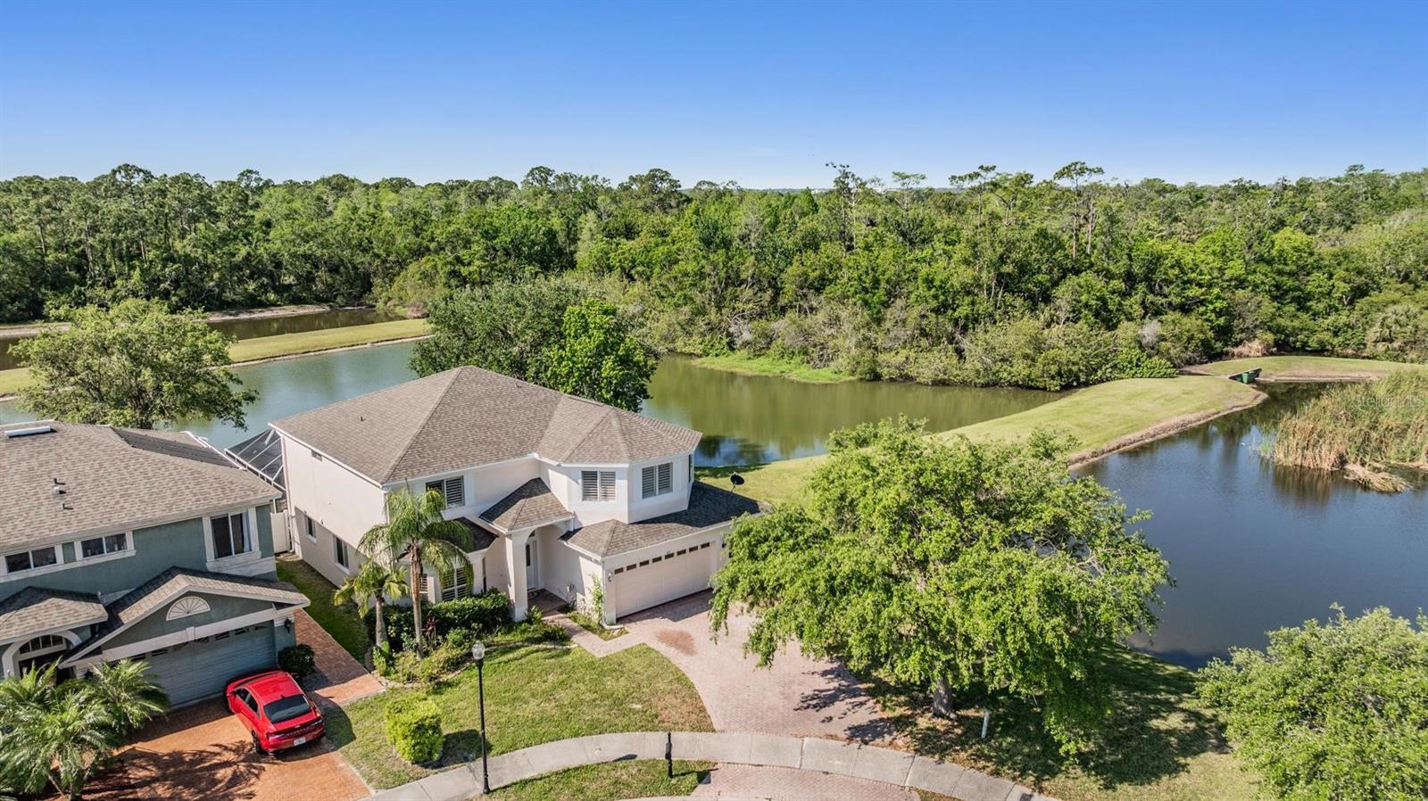 Under contract-accepting backup offers. Welcome to your peaceful dream home! Nestled at the end of a quiet cul-de-sac on a spacious quarter-acre corner lot, this expansive 2-story residence offers 3,000 square feet of beautifully designed living space. Located in an exclusive gated community of Bay Arbor, this property combines peace and privacy with unbeatable convenience. Perfect for large families or those who love to entertain, this home boasts 5 generously sized bedrooms and multiple living areas. Upon entering you are greeted by the open staircase and high ceilings with crown molding. The formal living room at the front of the home is perfect for dining or additional entertainment space. The heart of the home is the open-concept kitchen, which flows seamlessly into the main living space and overlooks both the sparkling pool and tranquil pond—creating the ideal backdrop for relaxing or hosting guests. One Bedroom with adjacent Bath on main level. Upstairs to you'll find the main bedroom with pond views and a spacious ensuite bathroom. The 4 guest bedrooms are generously sized with expansive closet space, perfect for storage or guest hosting! Step outside to your private backyard oasis, complete with a stunning pool and picturesque water views. Whether you're enjoying a quiet morning coffee or hosting a lively weekend gathering, the setting is simply unmatched. Despite its serene location, this home is centrally located with quick and easy access to Tampa, nearby beaches, major highways, top-rated schools, airports, and premier shopping and dining destinations. Don't miss the opportunity to own this rare gem that truly offers the best of both worlds—luxury, privacy, and location. Schedule your private showing today!