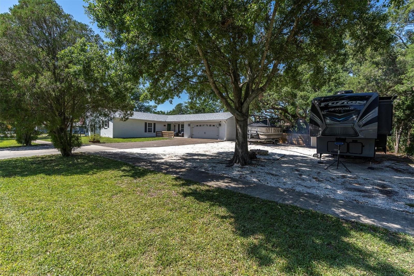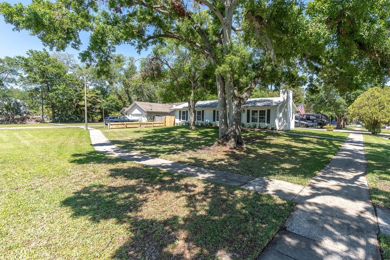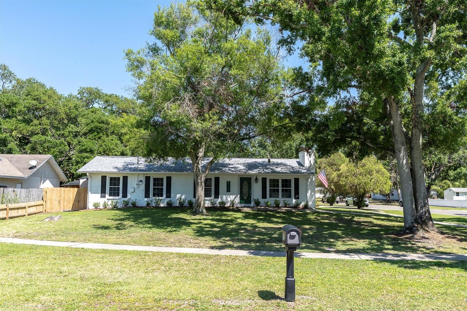 MOVE IN READY! - This home has NEVER experienced flooding. This fully renovated home features four bedrooms and two bathrooms and is located in the historic Oldsmar area, just a short walk or golf cart ride from the waterfront parks of Tampa Bay. Situated on a large, quiet corner lot, the property includes an oversized two-car garage with an attached workshop, perfect for expansions or hobbies. Recent upgrades ensure modern comfort, including a brand new A/C installed (June 2025), newer roof (2022), insulated double-hung colonial windows, and hurricane panels. Inside, you’ll find modern appliances, fixtures, vanities, luxury vinyl plank flooring, and porcelain tile throughout. The family room features a forced-air electric fireplace, perfect for cozy evenings. The open-concept layout is enhanced by flush-mount LED lighting and updated receptacles and switches, while new interior doors with brushed nickel hardware and a tasteful paint scheme contribute to the home’s bright and clean feel. The generous lot includes RV/boat storage with a 50 amp outlet, a new 12x20 shed with A/C and lights, a concrete pavered fire pit, and a relaxation area including a shed/bar on the deck alongside a gazebo. Enjoy easy access to Veterans Park with its canoe launch and shuffleboard, or R.E. Olds Park, which offers playgrounds, a fishing pier, walking paths, a sand volleyball court, picnic areas, and a stage for year-round festivals. Additionally, Bicentennial Park is nearby, featuring basketball and tennis courts, a playground, a lake, and badminton courts.