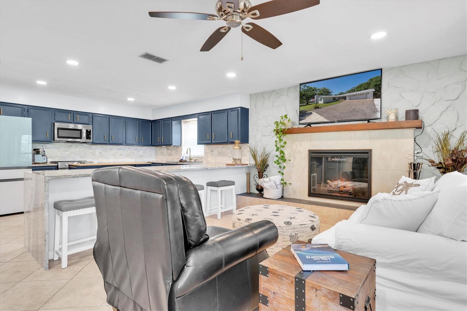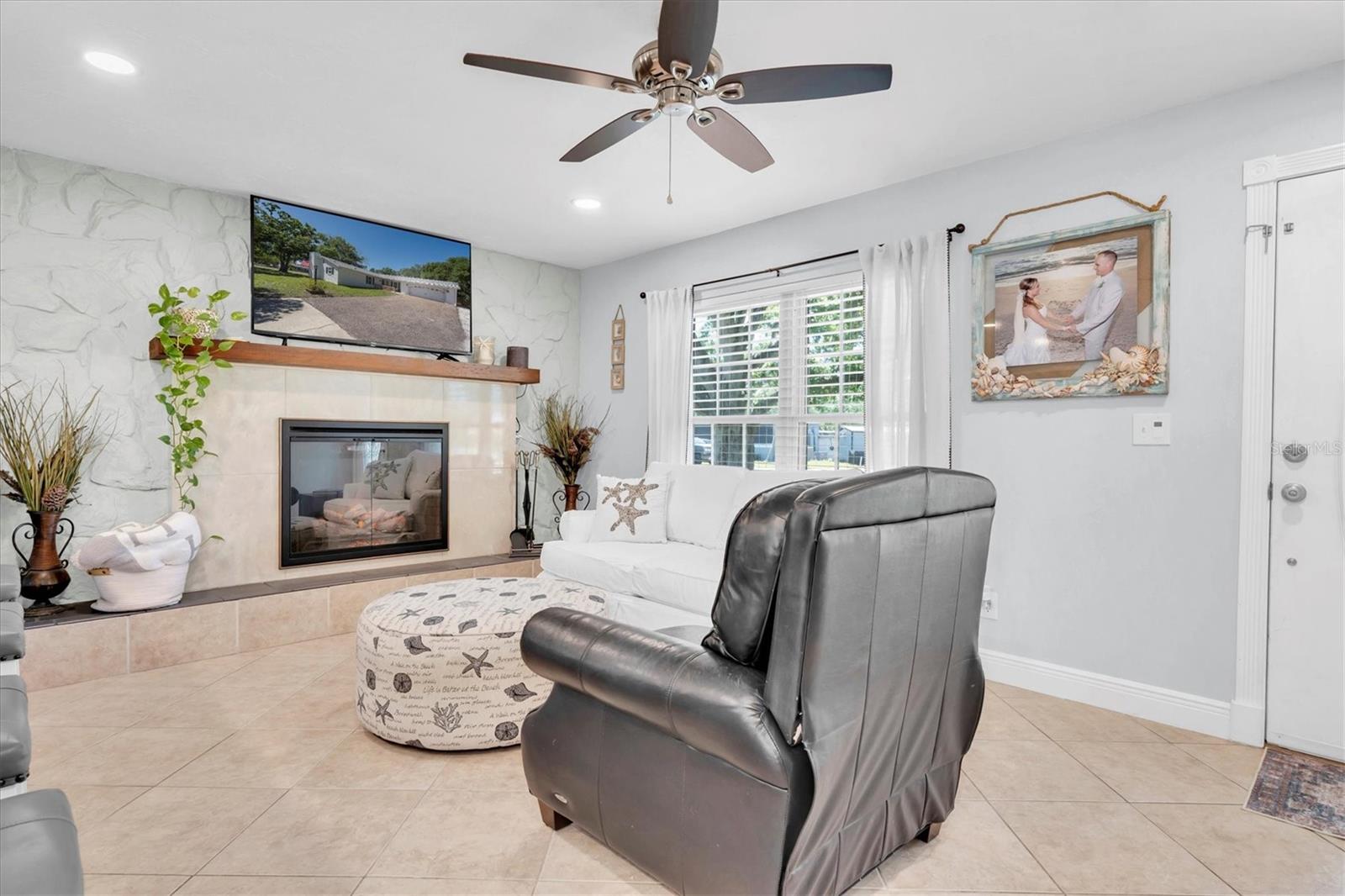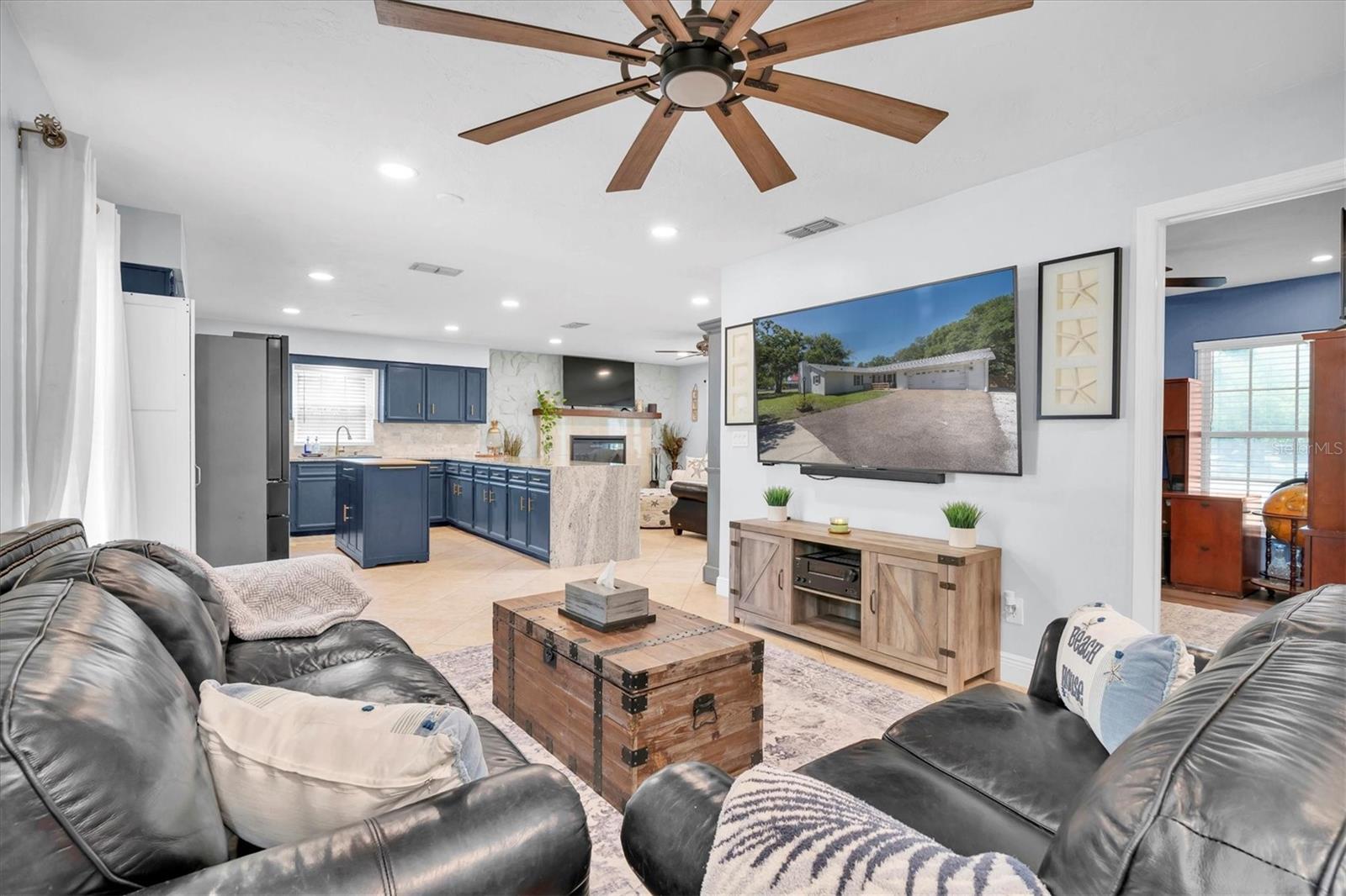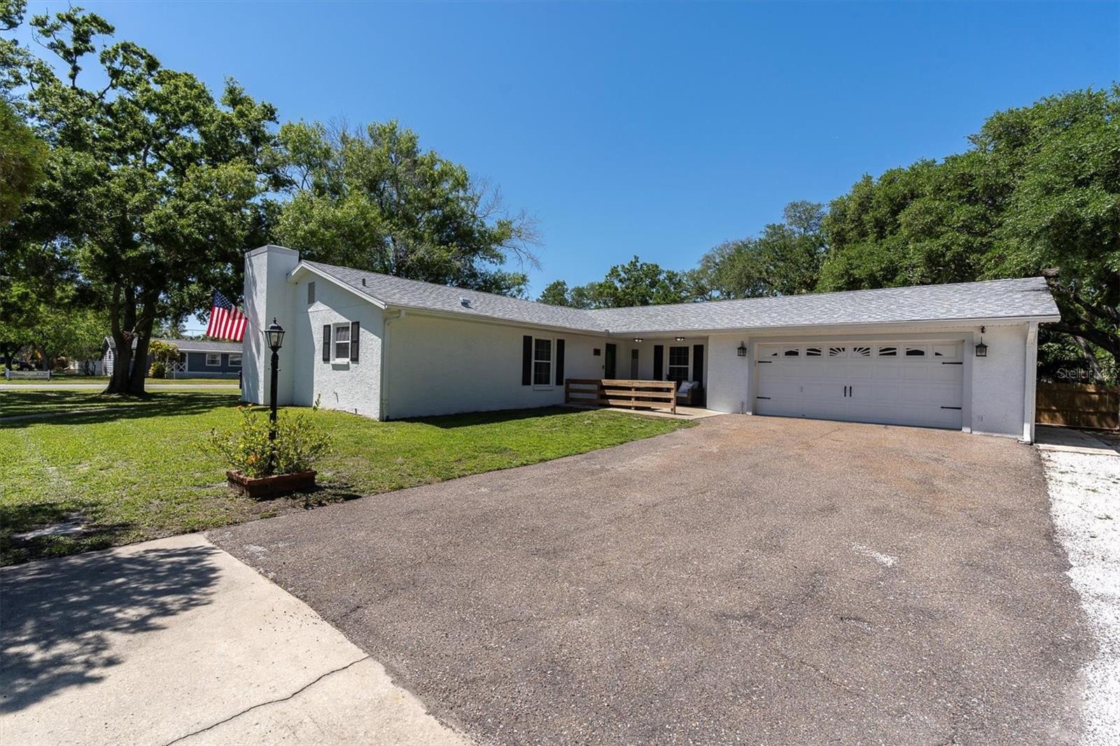 MOVE IN READY! - This home has NEVER experienced flooding. This fully renovated home features four bedrooms and two bathrooms and is located in the historic Oldsmar area, just a short walk or golf cart ride from the waterfront parks of Tampa Bay. Situated on a large, quiet corner lot, the property includes an oversized two-car garage with an attached workshop, perfect for expansions or hobbies. Recent upgrades ensure modern comfort, including a brand new A/C installed (June 2025), newer roof (2022), insulated double-hung colonial windows, and hurricane panels. Inside, you’ll find modern appliances, fixtures, vanities, luxury vinyl plank flooring, and porcelain tile throughout. The family room features a forced-air electric fireplace, perfect for cozy evenings. The open-concept layout is enhanced by flush-mount LED lighting and updated receptacles and switches, while new interior doors with brushed nickel hardware and a tasteful paint scheme contribute to the home’s bright and clean feel. The generous lot includes RV/boat storage with a 50 amp outlet, a new 12x20 shed with A/C and lights, a concrete pavered fire pit, and a relaxation area including a shed/bar on the deck alongside a gazebo. Enjoy easy access to Veterans Park with its canoe launch and shuffleboard, or R.E. Olds Park, which offers playgrounds, a fishing pier, walking paths, a sand volleyball court, picnic areas, and a stage for year-round festivals. Additionally, Bicentennial Park is nearby, featuring basketball and tennis courts, a playground, a lake, and badminton courts.