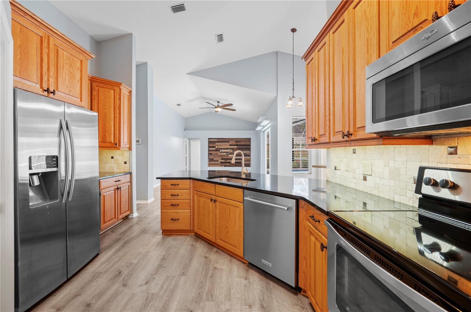 One or more photo(s) has been virtually staged. Executive Elegance in East Lake Woodlands! Step into the epitome of refined Florida living with this stunning 4-bedroom, 3-bathroom executive residence, ideally situated in the prestigious gated golf community of East Lake Woodlands. Offering the perfect blend of luxury, privacy, and security, this home promises a serene and sophisticated lifestyle. From the moment you enter the elegant foyer, you'll be captivated by the thoughtful design and upscale finishes that define this meticulously maintained home. The split floor plan ensures comfort and privacy, ideal for both everyday living and entertaining. The spacious Primary Suite serves as a true retreat, complete with a spa-like en-suite bathroom featuring a large walk-in shower and generous closet space. Three additional bedrooms are beautifully appointed to accommodate family or guests. At the heart of the home is an updated kitchen designed to inspire culinary creativity, outfitted with classic cabinets, granite countertops, and a cozy bar area, flowing seamlessly into the open-concept family room. Step outside to your private oasis and relax in the screened-in pool area, ideal for soaking up the Florida sunshine in complete comfort and privacy. Whether you're enjoying a quiet evening at home or entertaining guests, this property offers the perfect lifestyle.