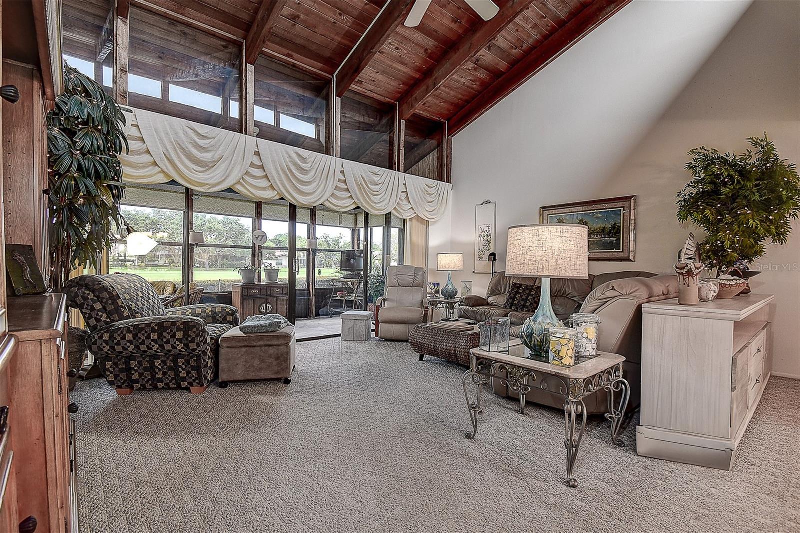 TURN KEY VILLA perfect for Snow Birds, nestled in the GATED COMMUNITY of East Lake Woodlands! 3 Bedroom 2 Bath END UNIT VILLA with GOLF COURSE VIEWS! FURNISHED and completely MOVE-IN READY, including dishes, pots, pans, furniture, TVs, towels and beach chairs!! And it’s even in Zone X with NO FLOOD INSURANCE REQUIRED. Step through the front door of this charming villa and you will love the OPEN CONCEPT floorplan, SOARING VAULTED CEILING with wood planks & beams that run right into your huge Florida room/lanai at the rear of the home, which runs the full width of the house & gives you some nice, green GOLF COURSE VIEWS! The transom windows provide MAXIMUM NATURAL LIGHT! Enjoy cooking and entertaining with a Well-Equipped Kitchen complete with STAINLESS STEEL APPLIANCES, plenty of cabinets and countertops, TILE BACKSPLASH, pantry and washer/dryer closet. Step outside your eat-in area slider to your private patio, the perfect place for grilling. You’ll love the split bedroom plan. The spacious Primary suite has sliders to the Florida room plus a LARGE WALK-IN CLOSET! The updated EN SUITE bathroom offers plentiful cabinets, GRANITE COUNTERS, dual sinks, & glass enclosed step-in shower with updated tile! On the opposite side of the home the GUEST BATHROOM has also been UPDATED and is flanked by two bedrooms, one with access to the Florida room, and one which doubles as a HOME OFFICE with new built-in cabinet/desk and Daybed! So many updates - ALL NEW IN 2024!! - New Roof, New Downspouts/Gutters, New water heater, New Office bookcase and desk wall unit, New tile on lanai, New window tinting film in living room & lanai, new insulation on lanai roof, many new lights and solar light tube, new portable gas generator. New HVAC 2019 PLUS New Ductwork and New Attic Insulation installed 2024. Plus Home Warranty! The incredibly large Florida room is great for flex space and adds additional square footage not included in the tax records with glass windows, added insulation, completely air-conditioned, new tile floors, ceiling fans and storage closet. The light-filled room offers private tropical views with no rear neighbors and the wildlife that’s in abundance in ELW. You can feel comfortable knowing that this gated community has a ROVING PATROL SECURITY at all times. This is a GOLF CART FRIENDLY community (must be street legal) which is handy to run over to the nearby shopping plaza for some of your everyday needs. Quail Forest is a PET FRIENDLY community. You have an assigned, COVERED PARKING SPACE just outside your front door, along with another guest parking space. Optionally, you could join the renovated Ardea (formerly East Lake Woodlands) Country Club with membership plans that include private Clubhouse, 2 Championship 18 hole golf courses, 2 heated pools, putting greens, Tennis and Pickleball, Fitness Center, Club restaurant and Social Events. HOA fees cover the Quail Forest’s own Sparkling, Heated COMMUNITY POOL JUST STEPS AWAY, Building Exterior including Roof, Lawn Maintenance and Irrigation, Basic Cable and Trash Pick-up. Minutes away from Westfield Countryside Mall, award-winning beaches of Honeymoon and Caladesi Islands, along with parks, bike trails, dog parks, playgrounds, restaurants and entertainment. PLUS, we will leave the furniture...totally turnkey!! Schedule your private showing today.