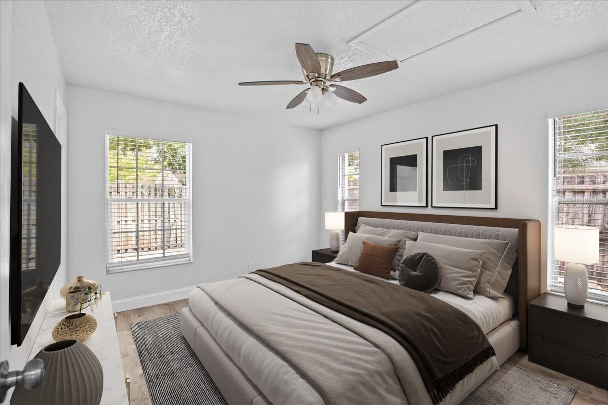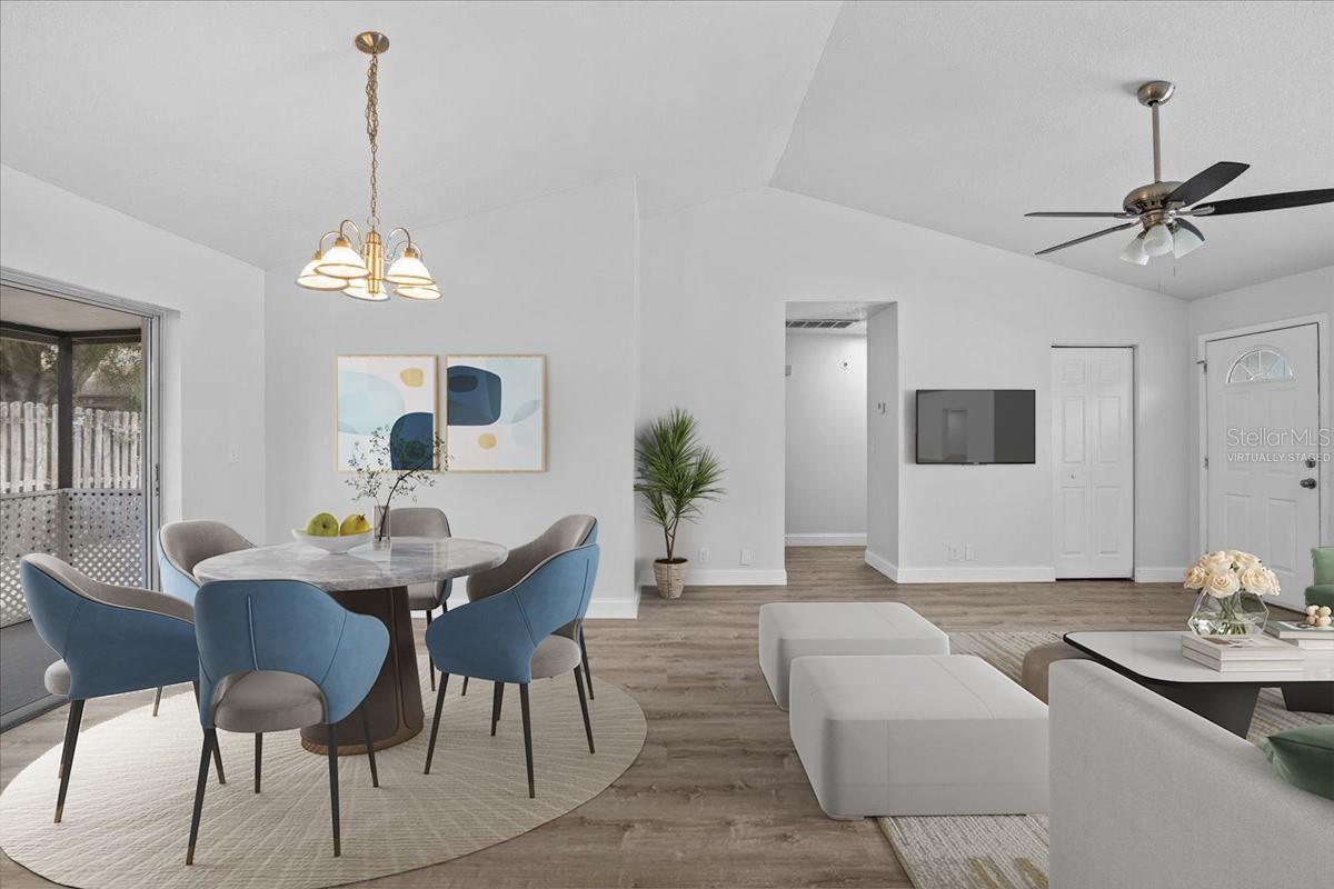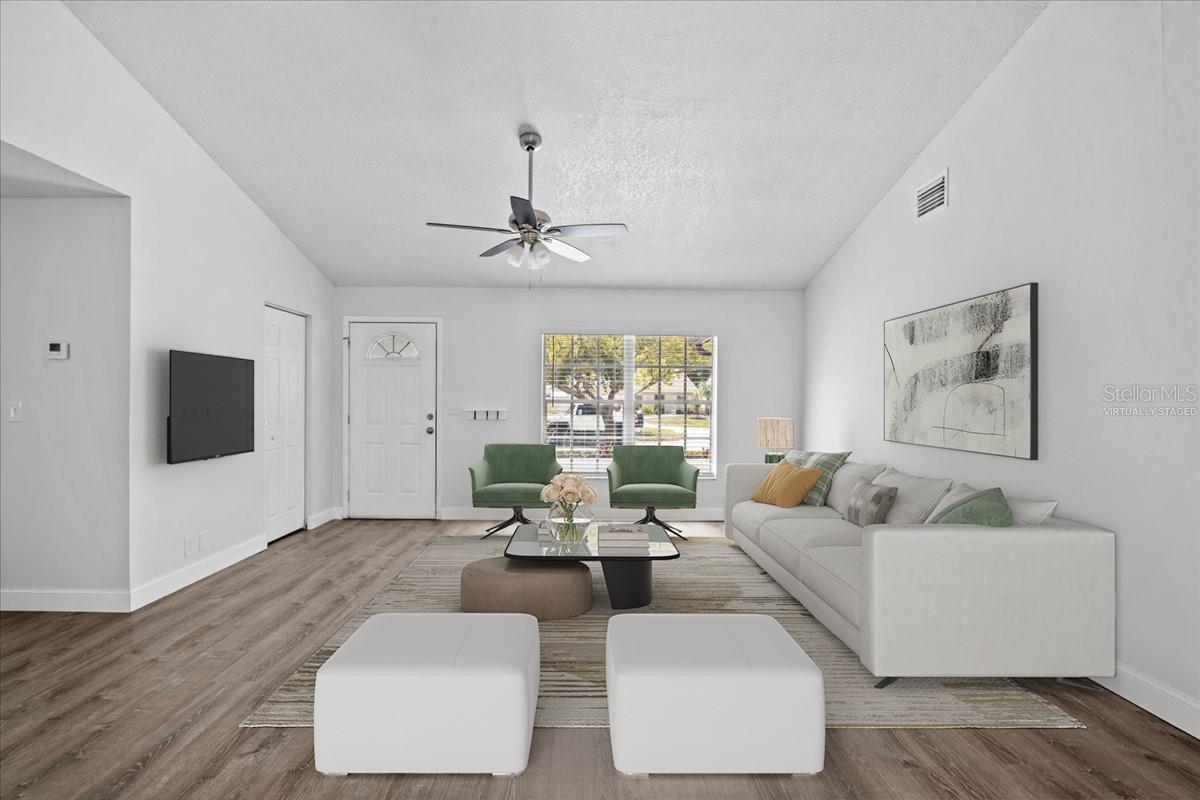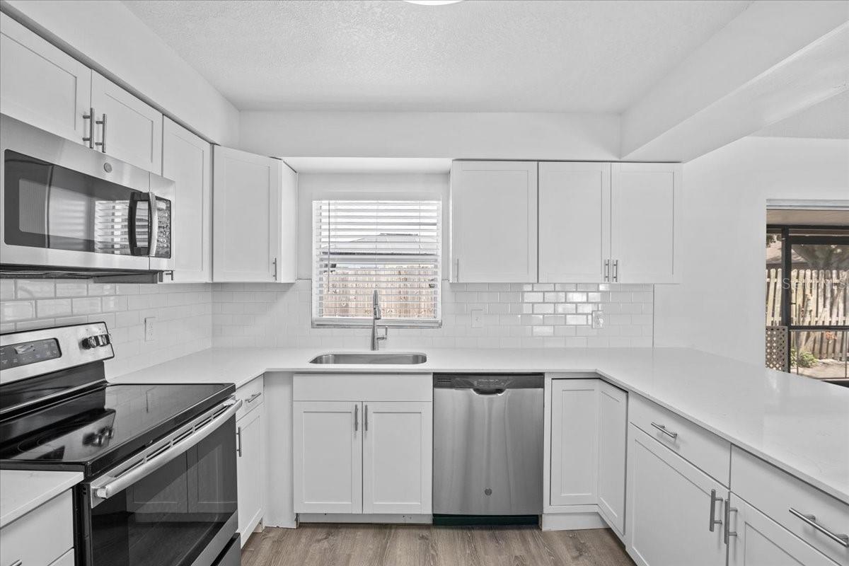 One or more photo(s) has been virtually staged. Price Improvement!!! Immaculately remodeled 3 bed 2 bath home located on a cul de sac street for added privacy in the heart of Oldsmar, FL. Step foot into this modern home greeted by beautiful vaulted ceiliings leading into the new quartz kitchen featuring a peninsula design with wood shaker cabinets, quartz countertops, tile backsplash and stainless steel appliances. New luxury vinyl plank flooring with updated baseboards throughout, new light fixtures, ceiling fans and a newer 2023 HVAC unit. Spacious primary bedroom, ensuite bathroom feauturing a split bedroom layout, indoor laundry with modern stackable washer and dryer included. Rear screen porch and a brick pavered back yard surrounded by a wood privacy fence. This home sits in a convenient location steps from Sheffield Park that features many amenities such as a hiking/running trail, tennis and basketball courts, playground and covered pavillion for events. Quick drive to new shopping centers, restaurants, downtown Tampa, international airport, clearwater beaches and St Pete! Turnkey home with NO HOA, NO hurricane damage and NO flood history. Easy to show, book your showing today!