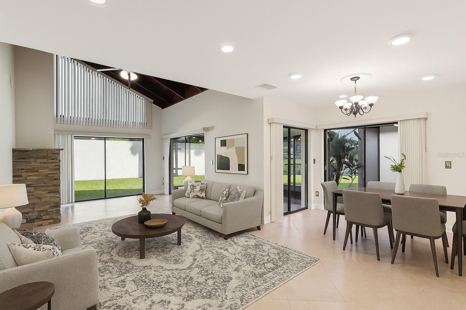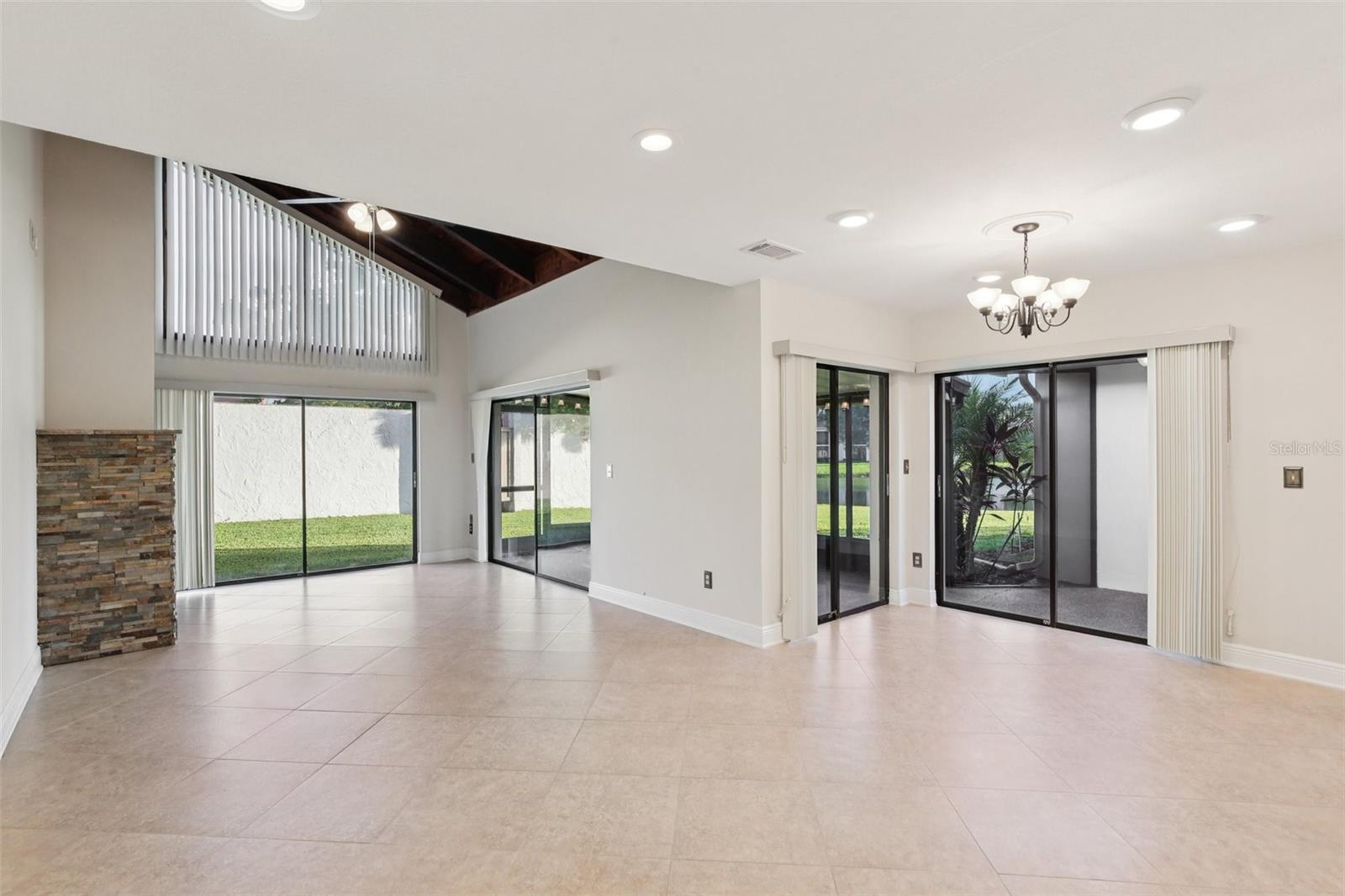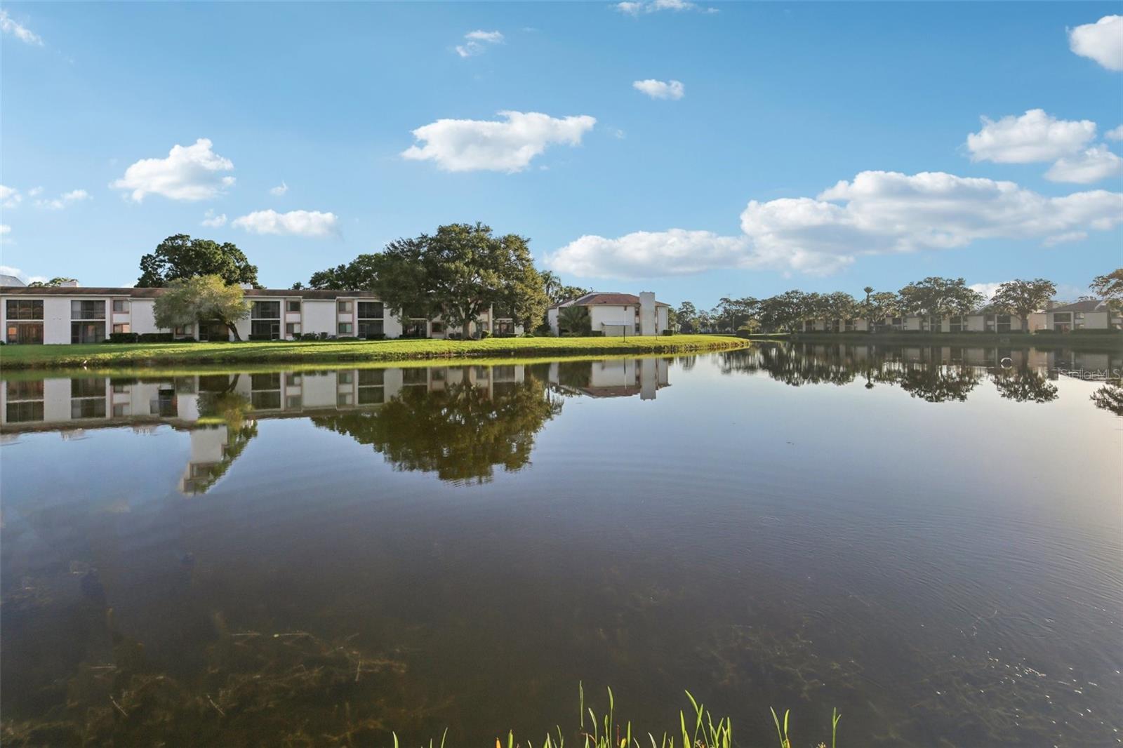 One or more photo(s) has been virtually staged. Welcome to East Lake Woodlands, one of Pinellas County’s most desirable gated communities, known for its natural beauty, abundant wildlife, and premier amenities. Tucked away on a peaceful cul-de-sac, this 3-bedroom, 2-bath patio home offers tranquil pond views, thoughtful updates, and easy access to everything the Tampa Bay area has to offer. Enjoy the convenience of a 2-car covered carport and a lush, landscaped entry that leads to a welcoming pavered front patio. Inside, the home features soaring vaulted ceilings with wood beams, large windows and sliding doors that flood the space with natural light, and a wood burning fireplace to tie it all together. Tile flooring flows through the main living areas, while the bedrooms feature easy-care laminate—no carpet here. The kitchen is well-appointed with granite countertops, stainless steel appliances, a passthrough to the dining area, and sliding doors for seamless access to the patio, ideal for outdoor dining. The private owner’s suite includes a walk-in closet with built-in organization, and an ensuite bath with dual vanities and a glass-enclosed shower. A smart split-bedroom design offers added privacy for guests, with two spacious secondary bedrooms—one with a walk-in closet—and a shared full bath nearby. Enjoy the convenience of an in-unit washer and dryer (just 2 years old) and two exterior storage closets providing endless storage options for all your extras. Multiple sets of sliding glass doors open to a screened lanai where you can unwind while enjoying peaceful views of the water and surrounding greenery. Residents of East Lake Woodlands can opt in to a country club membership with access to two championship golf courses, tennis and pickleball courts, a fitness center, dining, and a beautifully renovated clubhouse with year-round social events. Zoned for top-rated schools—Forest Lakes Elementary, Carwise Middle, and East Lake High—and perfectly positioned near the Oldsmar Sports Complex with baseball and softball fields, a BMX track, hockey rink, and more. Just minutes to shops, restaurants, movie theaters, and everyday conveniences in both Oldsmar and East Lake. Outdoor lovers will enjoy quick access to John Chesnut Sr. Park, Brooker Creek Preserve, and a short scenic drive to Honeymoon Island and Caladesi Island’s award-winning beaches. Easy commute to Tampa International Airport and downtown Tampa. This villa blends peaceful living, prime location, and resort-style amenities—schedule your private showing today and experience East Lake Woodlands living for yourself!