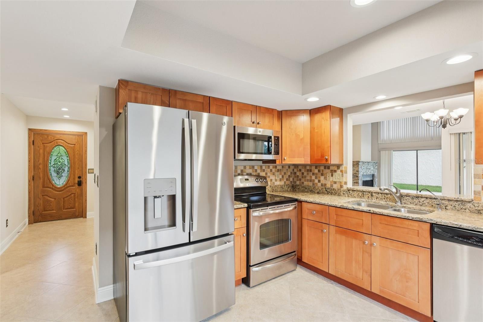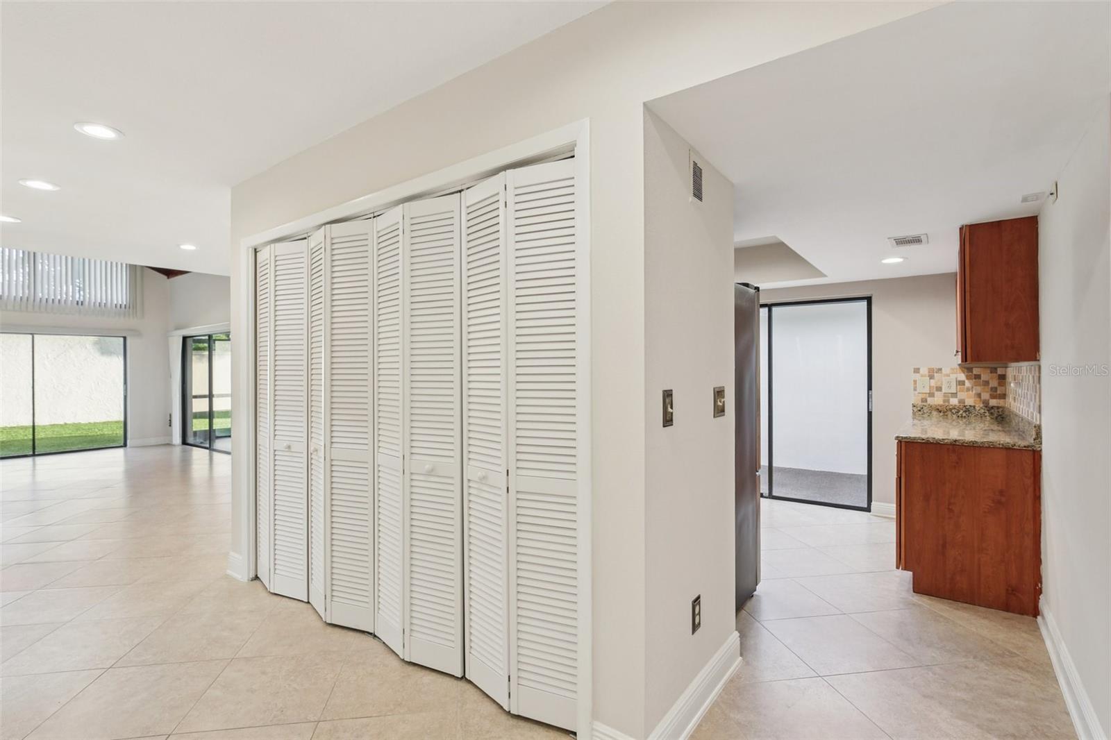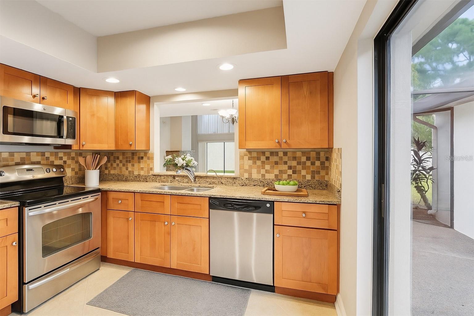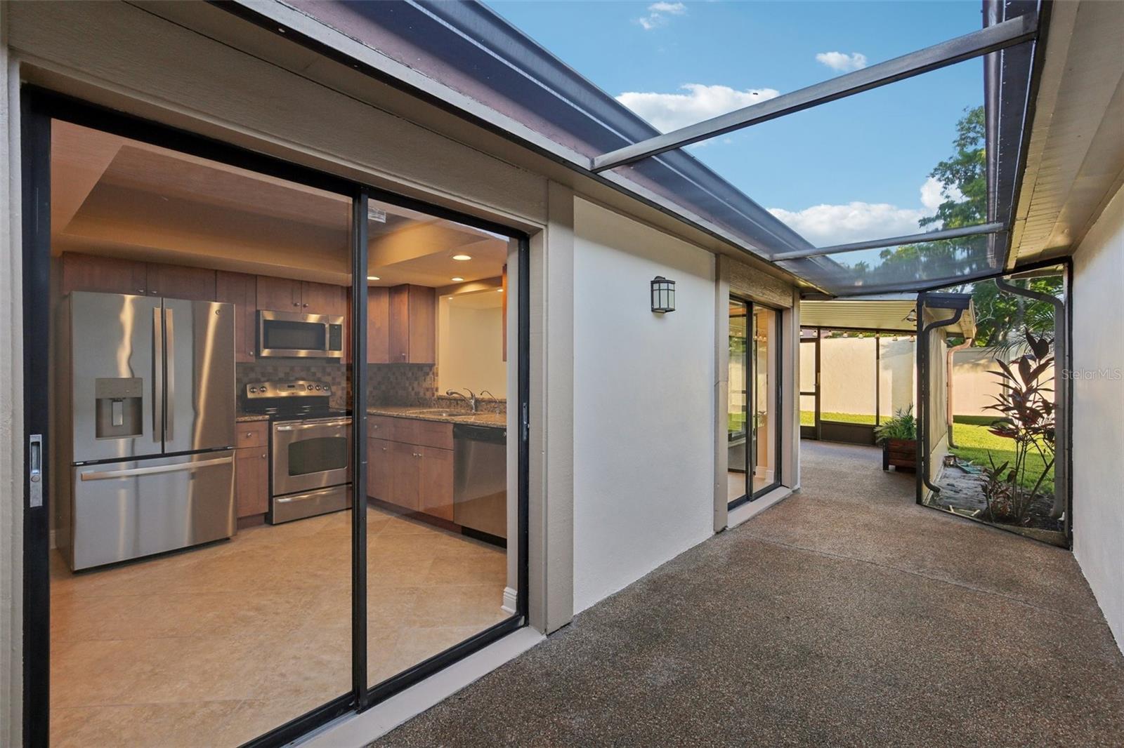 One or more photo(s) has been virtually staged. Welcome to East Lake Woodlands, one of Pinellas County’s most desirable gated communities, known for its natural beauty, abundant wildlife, and premier amenities. Tucked away on a peaceful cul-de-sac, this 3-bedroom, 2-bath patio home offers tranquil pond views, thoughtful updates, and easy access to everything the Tampa Bay area has to offer. Enjoy the convenience of a 2-car covered carport and a lush, landscaped entry that leads to a welcoming pavered front patio. Inside, the home features soaring vaulted ceilings with wood beams, large windows and sliding doors that flood the space with natural light, and a wood burning fireplace to tie it all together. Tile flooring flows through the main living areas, while the bedrooms feature easy-care laminate—no carpet here. The kitchen is well-appointed with granite countertops, stainless steel appliances, a passthrough to the dining area, and sliding doors for seamless access to the patio, ideal for outdoor dining. The private owner’s suite includes a walk-in closet with built-in organization, and an ensuite bath with dual vanities and a glass-enclosed shower. A smart split-bedroom design offers added privacy for guests, with two spacious secondary bedrooms—one with a walk-in closet—and a shared full bath nearby. Enjoy the convenience of an in-unit washer and dryer (just 2 years old) and two exterior storage closets providing endless storage options for all your extras. Multiple sets of sliding glass doors open to a screened lanai where you can unwind while enjoying peaceful views of the water and surrounding greenery. Residents of East Lake Woodlands can opt in to a country club membership with access to two championship golf courses, tennis and pickleball courts, a fitness center, dining, and a beautifully renovated clubhouse with year-round social events. Zoned for top-rated schools—Forest Lakes Elementary, Carwise Middle, and East Lake High—and perfectly positioned near the Oldsmar Sports Complex with baseball and softball fields, a BMX track, hockey rink, and more. Just minutes to shops, restaurants, movie theaters, and everyday conveniences in both Oldsmar and East Lake. Outdoor lovers will enjoy quick access to John Chesnut Sr. Park, Brooker Creek Preserve, and a short scenic drive to Honeymoon Island and Caladesi Island’s award-winning beaches. Easy commute to Tampa International Airport and downtown Tampa. This villa blends peaceful living, prime location, and resort-style amenities—schedule your private showing today and experience East Lake Woodlands living for yourself!