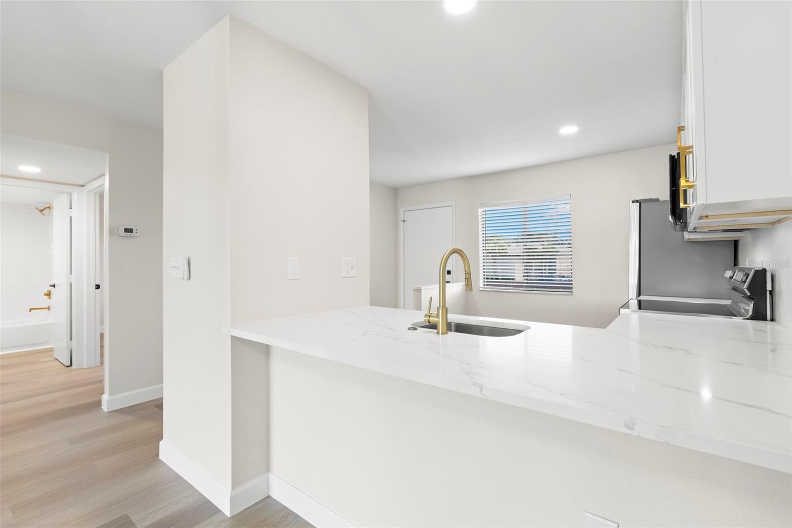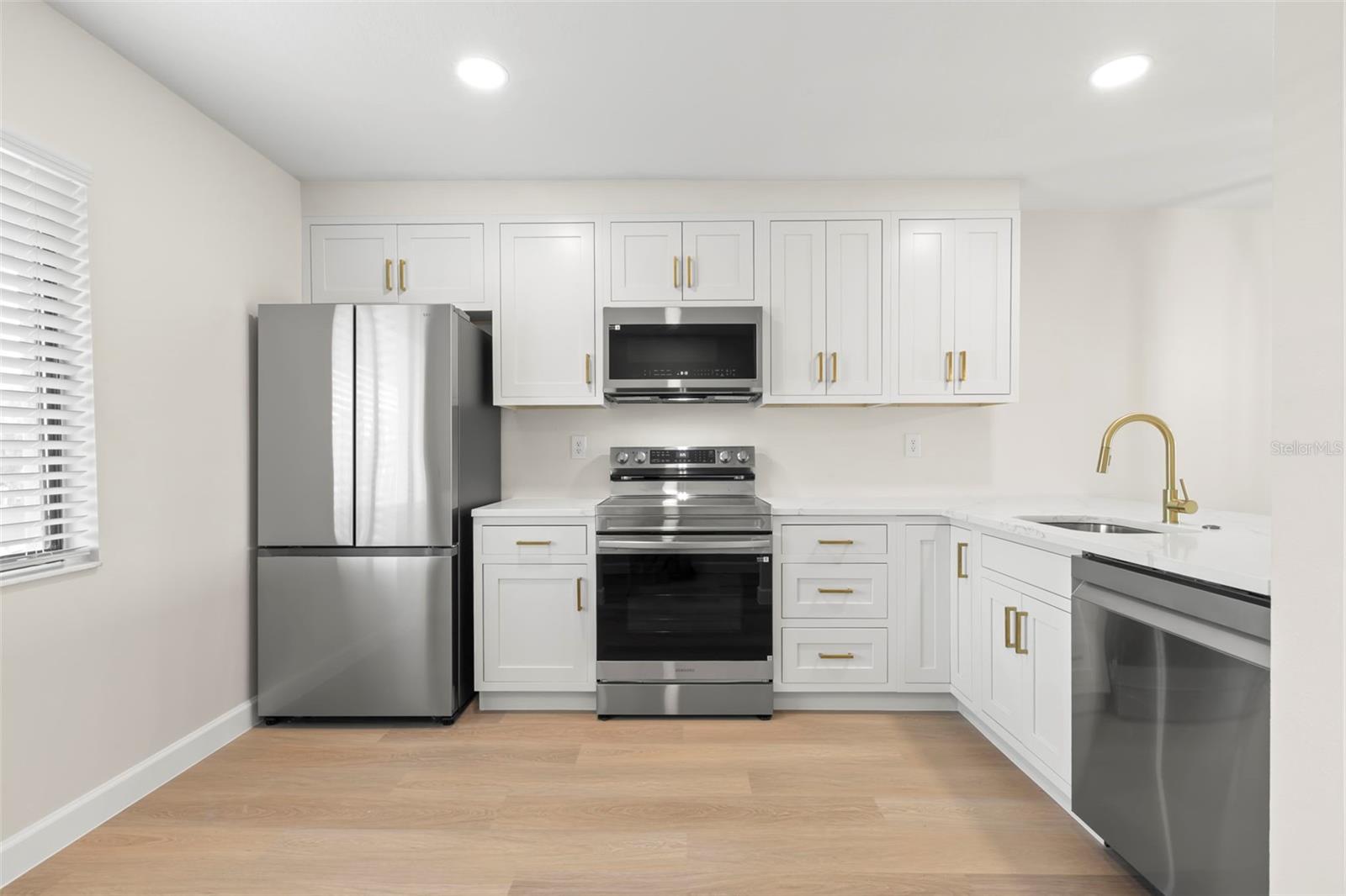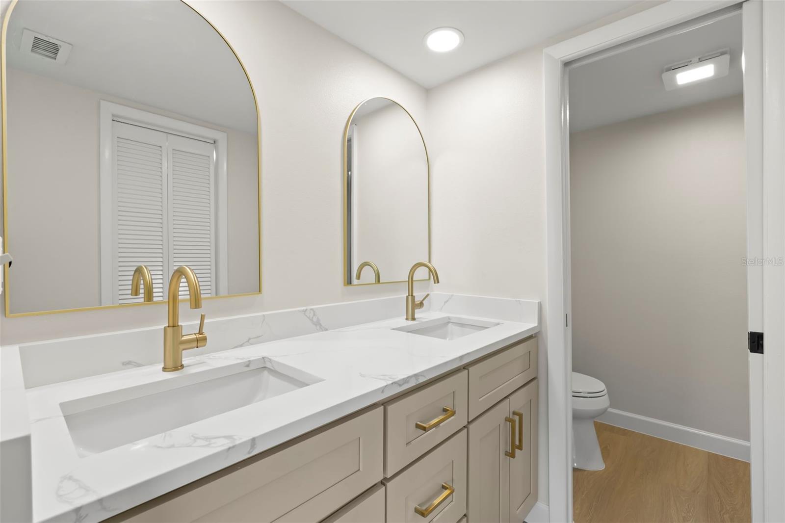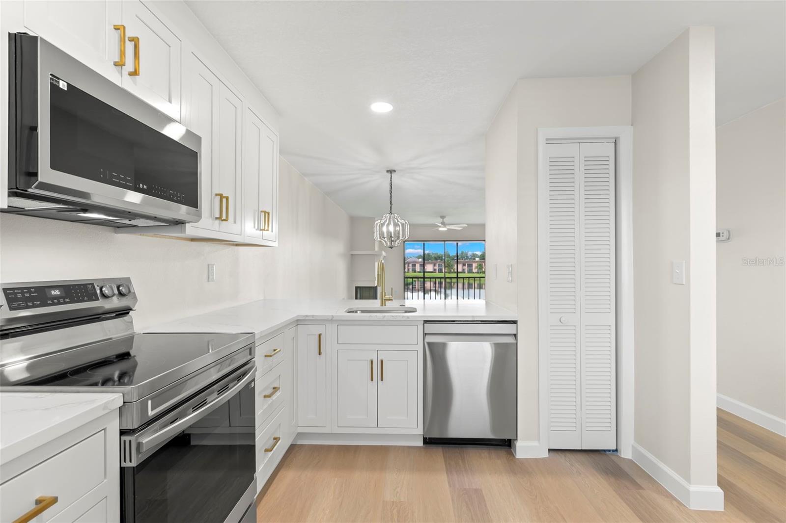One or more photo(s) has been virtually staged. Fully remodeled 2 bedroom, 2 bathroom, second floor condo now available in the highly sought after gated community of East Lake Woodlands. You will first notice the open kitchen with new cabinets, quartz countertops, stainless steel appliances, and new hardware. There is room for a table and chairs to create an eat-in kitchen if desired. The living and dining rooms are full of natural light coming through the sliding glass doors. An additional space has been created in the living room as a bonus that can be used as a work station, bar, office, etc. The screened porch is a great place to relax and enjoy the lake view. In the same location, you will also find a large space for laundry. Next, the primary suite offers two closets with plenty of storage and a large ensuite with double vanity. Both bathrooms have been renovated with new showers, vanities, fixtures, and quartz countertops. Throughout the home, new luxury vinyl plank flooring gives a cohesive and updated feel. The whole home is light, bright, and inviting. Other updates include a new water heater, new ceiling fans, interior paint, and lighting. This community includes a clubhouse and a pool for recreation. The monthly HOA fee covers internet, cable, sewer, trash and water, exterior maintenance, landscaping, community pool, escrow reserves, and pest control. The East Lake Woodlands community is gated, providing peace of mind and security for its residents. Located within, the Ardea Country Club is a private membership club offering more opportunities for fun and recreation. These amenities, should you choose to become a member, include 2 championship golf courses, 12 clay tennis courts, 13 pickleball courts, 2 heated pools, a state-of-the-art fitness center, event spaces, and an on-site restaurant and bar. The community is surrounded by great restaurants, shopping, and hospitals/medical centers. You’re also a short drive away from Honeymoon Island and Tampa International Airport. Come see this great home today!