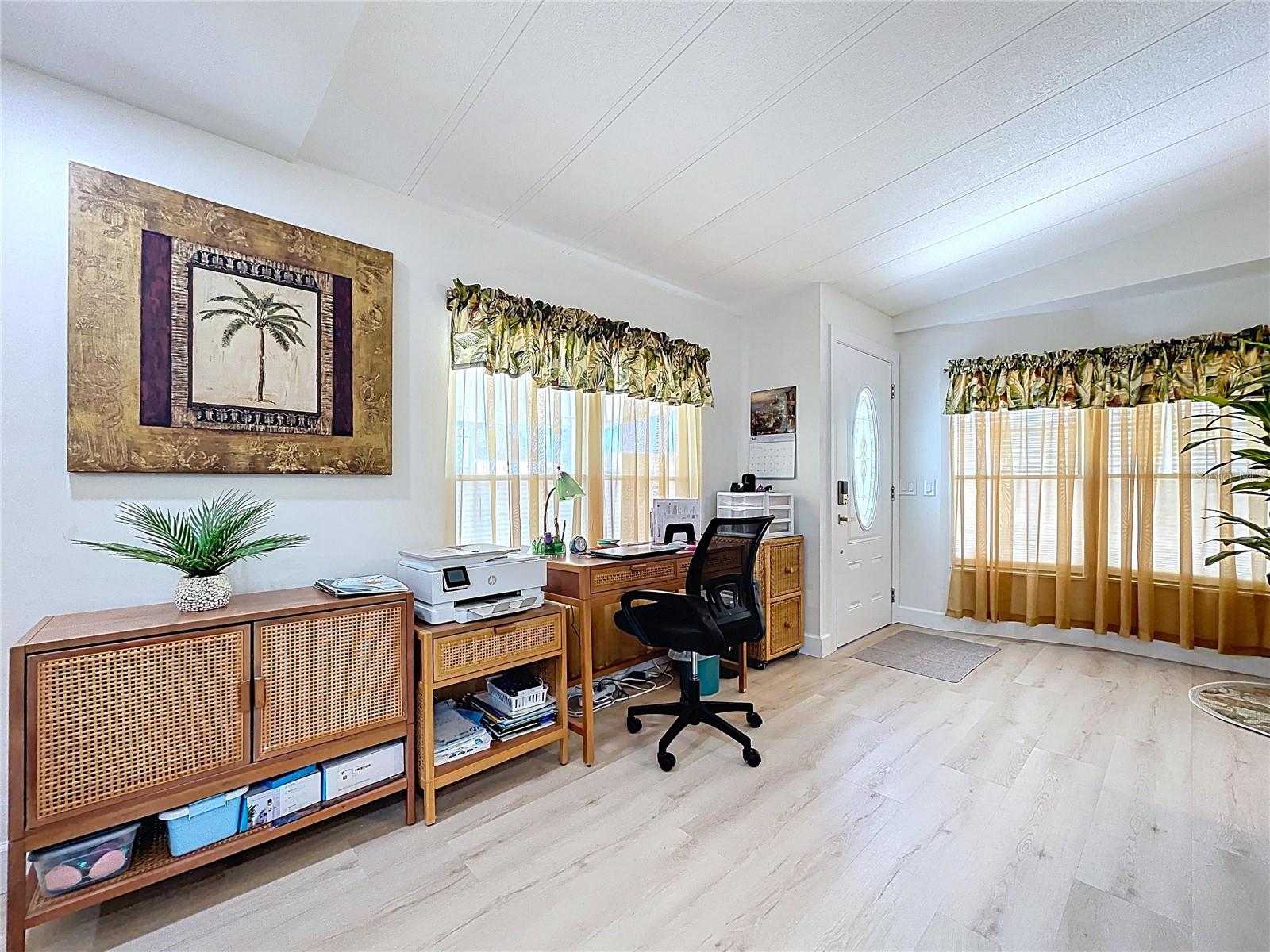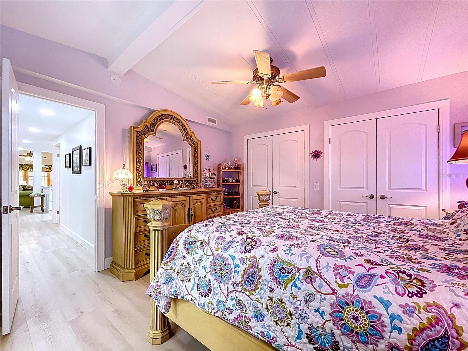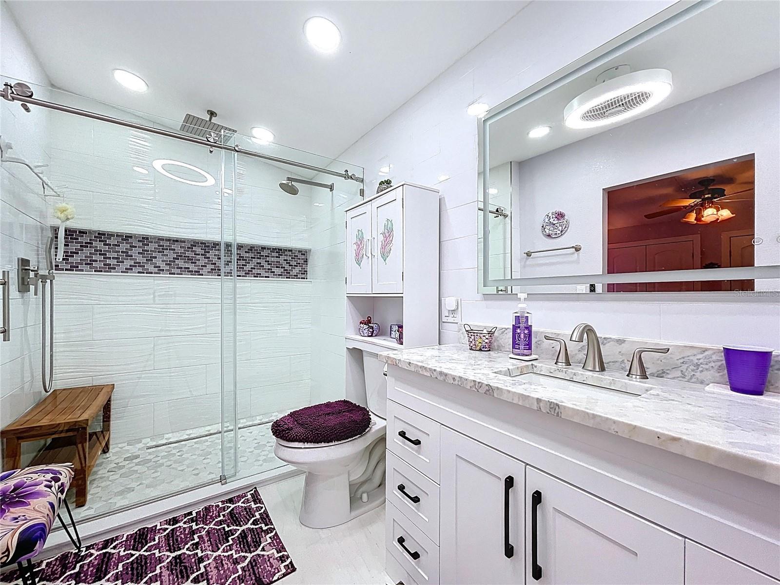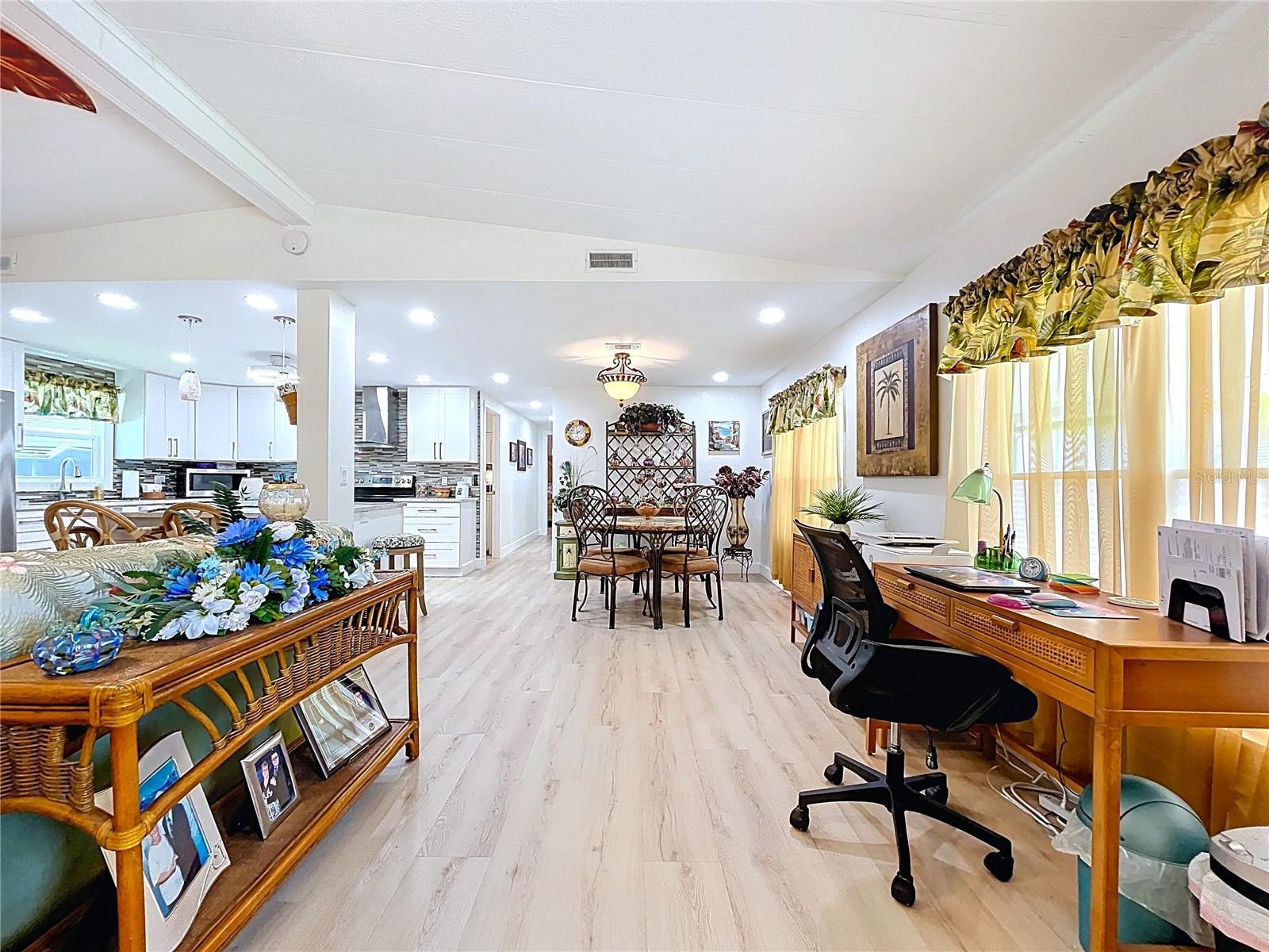 Beautifully renovated home in Gull Aire Village, a 55+ deed-restricted community where residents own their land and enjoy low HOA fees and an active social lifestyle. This move-in-ready home features a new electrical panel, tankless water heater, and new front and storm doors. Inside, enjoy LVP flooring throughout, fresh paint, new baseboards, and updated lighting. The living room has new drywall and 2-way blinds. The kitchen is fully redesigned with soft-close white shaker cabinets, Quartz counters, tile backsplash, new sink, fixtures, hood, and a large island with pendant lighting. Dining area features updated lighting and removed buffet for open flow. Laundry room has new doors, cabinets, and paint. Hallway bedroom offers new closet doors, fan, and blinds. Bathrooms boast tiled showers with multiple heads, Quartz vanities, lighted mirrors, updated toilets, and enlarged doorways. The primary suite includes a walk-in closet, sliding door, and upgraded bath with porcelain flooring. Enjoy the enclosed Florida room with mini split HVAC, fresh paint, and new fan. Close to shopping, beaches, dining, and cultural events in the heart of Oldsmar! Seller spared no expenses in this lovely renovated home
