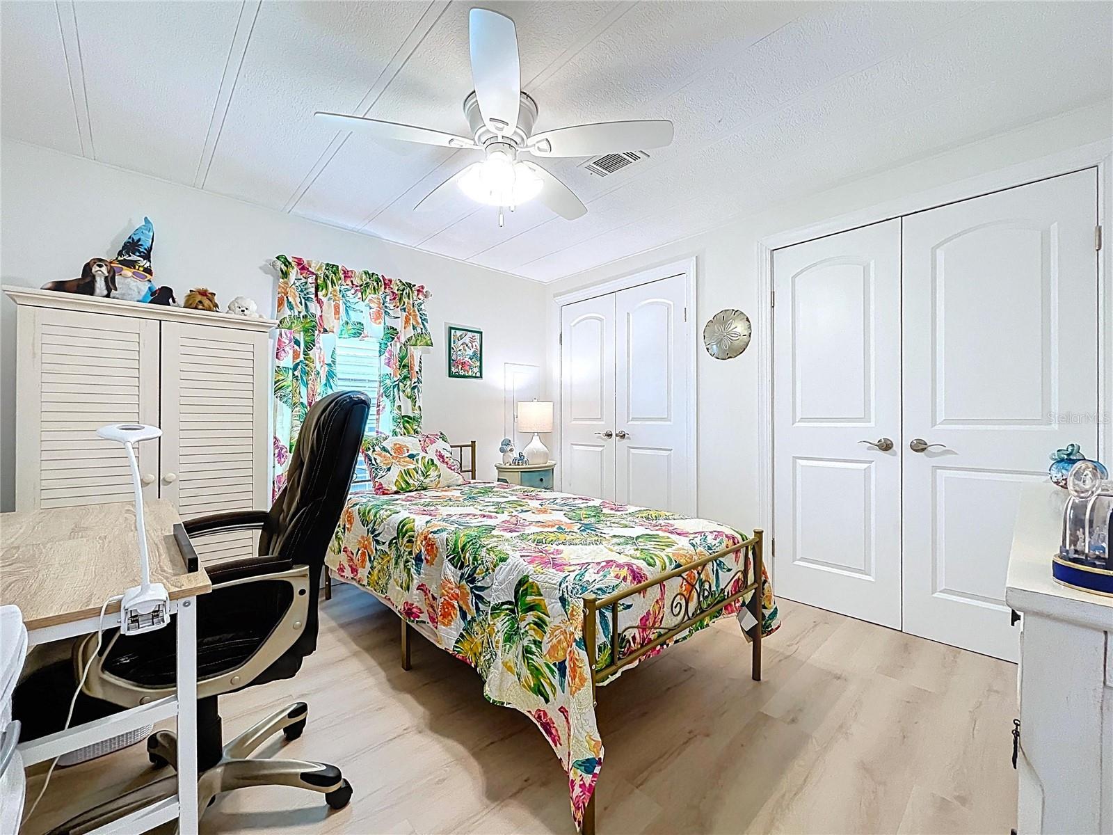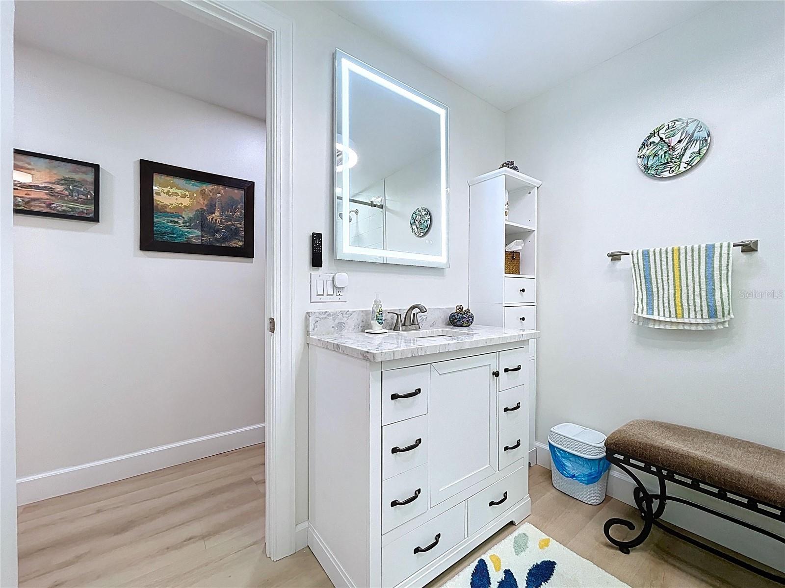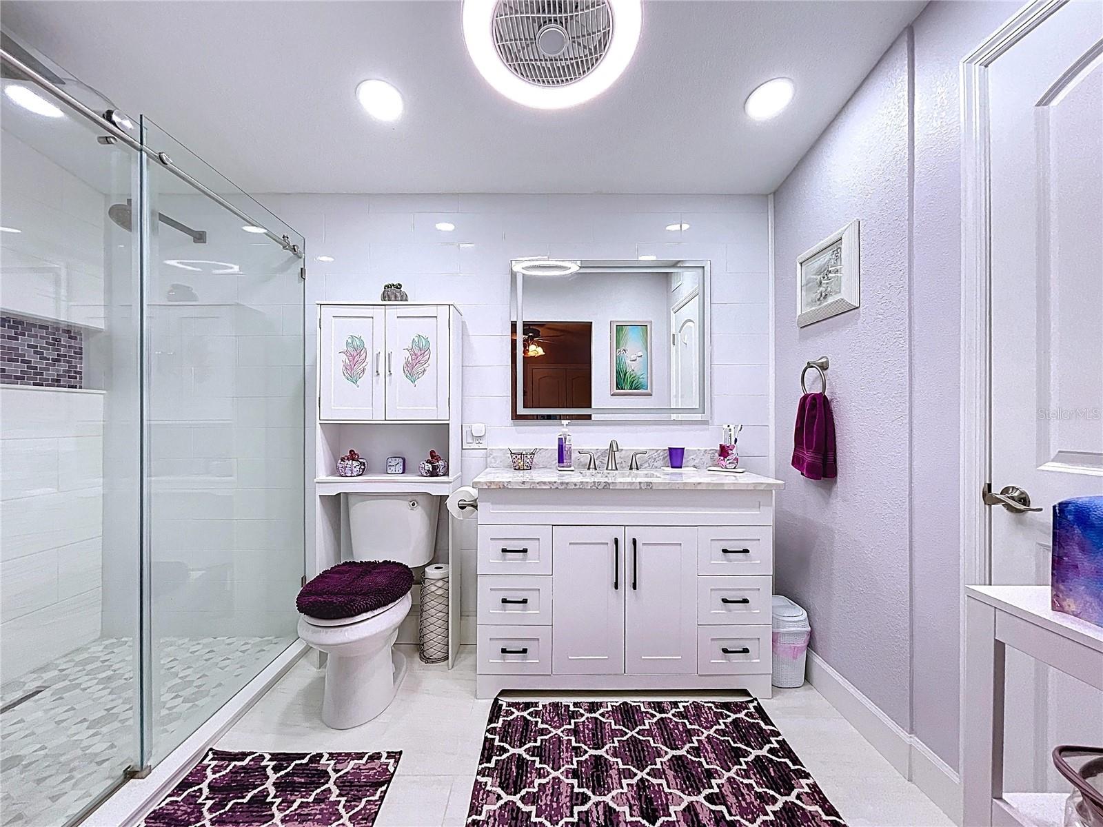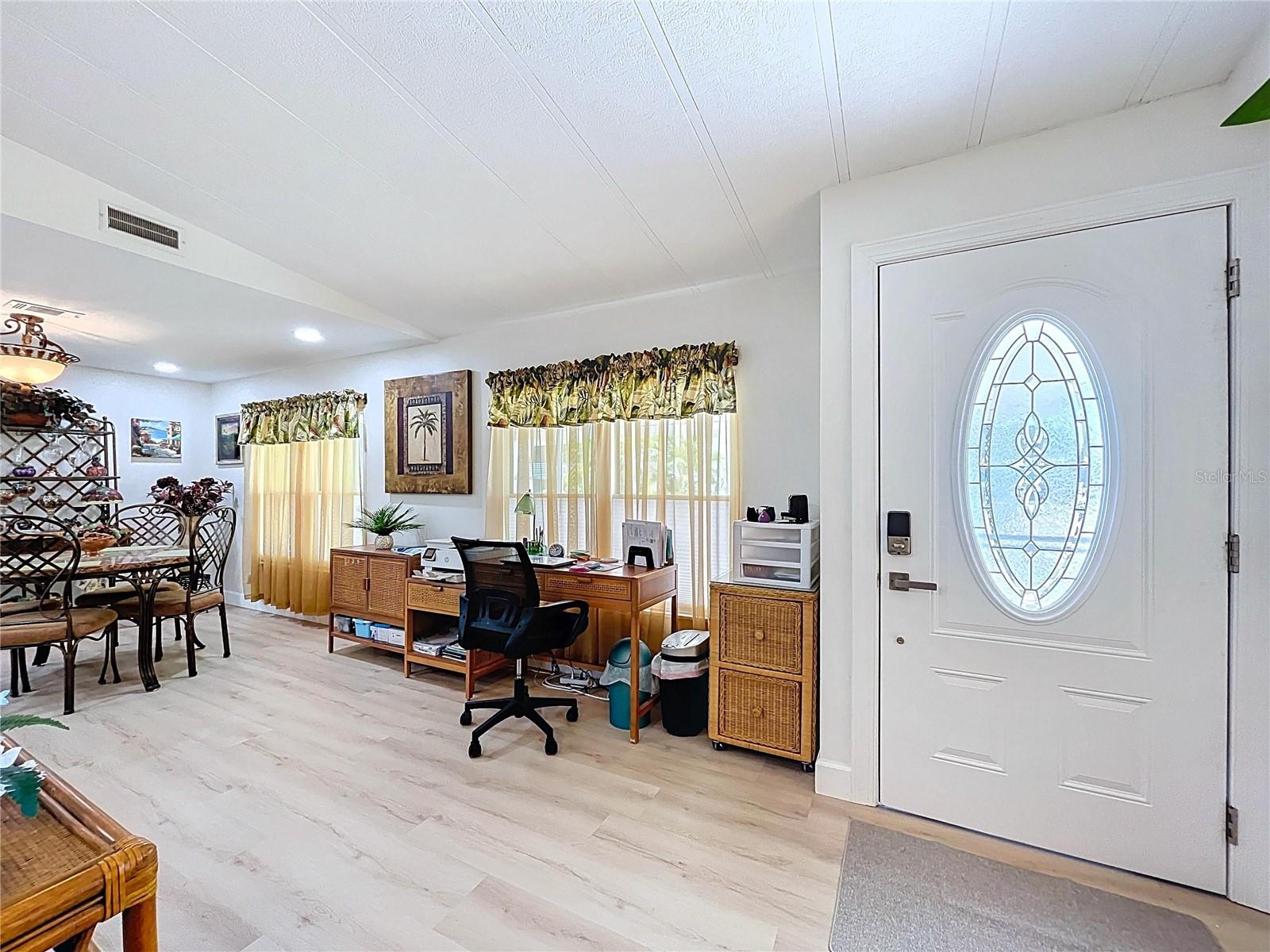 Beautifully renovated home in Gull Aire Village, a 55+ deed-restricted community where residents own their land and enjoy low HOA fees and an active social lifestyle. This move-in-ready home features a new electrical panel, tankless water heater, and new front and storm doors. Inside, enjoy LVP flooring throughout, fresh paint, new baseboards, and updated lighting. The living room has new drywall and 2-way blinds. The kitchen is fully redesigned with soft-close white shaker cabinets, Quartz counters, tile backsplash, new sink, fixtures, hood, and a large island with pendant lighting. Dining area features updated lighting and removed buffet for open flow. Laundry room has new doors, cabinets, and paint. Hallway bedroom offers new closet doors, fan, and blinds. Bathrooms boast tiled showers with multiple heads, Quartz vanities, lighted mirrors, updated toilets, and enlarged doorways. The primary suite includes a walk-in closet, sliding door, and upgraded bath with porcelain flooring. Enjoy the enclosed Florida room with mini split HVAC, fresh paint, and new fan. Close to shopping, beaches, dining, and cultural events in the heart of Oldsmar! Seller spared no expenses in this lovely renovated home