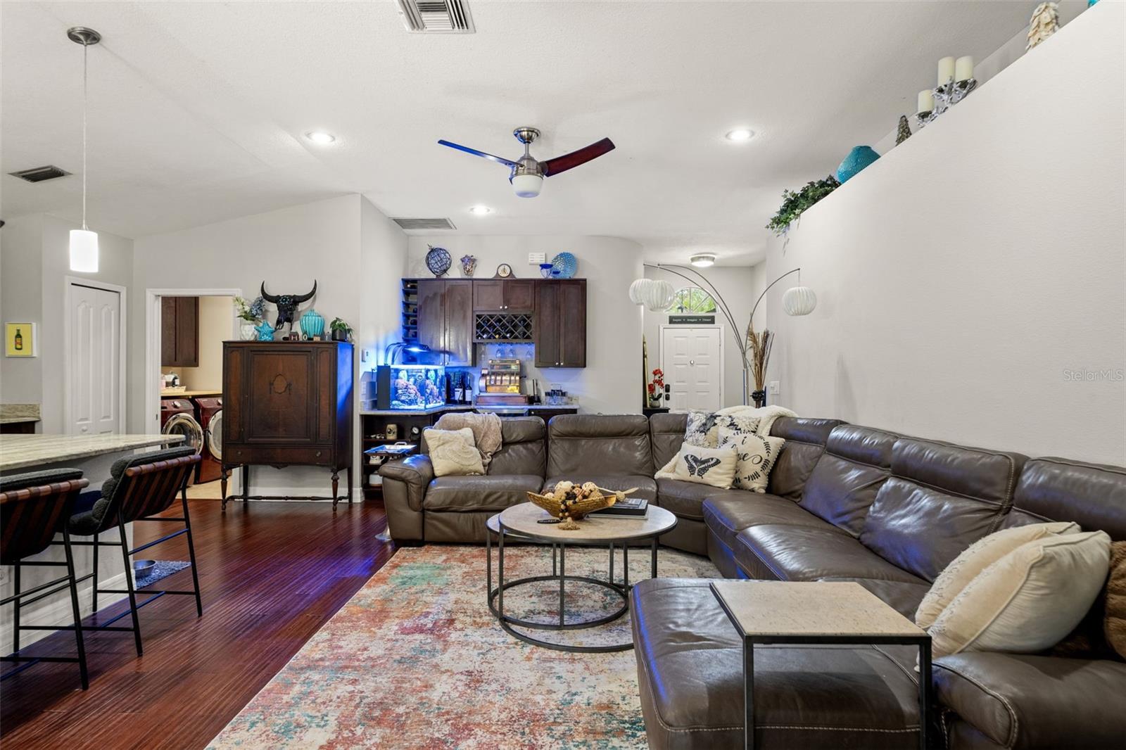 Welcome to a home that blends timeless elegance with modern convenience in the heart of East Lake Woodlands, one of Oldsmar’s most desirable communities. This beautifully updated 3-bedroom, 2-bath residence—featuring a thoughtfully converted garage for added versatility—has been designed with both sophistication and comfort in mind. Interior Highlights As you enter, the attention to detail is immediately evident. The main living areas are anchored by stranded bamboo flooring, bringing warmth and durability to the home. Freshly painted interiors create a bright, inviting atmosphere, while custom closet cabinetry provides organization and luxury storage solutions in every room. The kitchen and bathrooms are finished with quartz vanities and sleek fixtures, elevating everyday living with style and function. For added convenience, the home comes complete with a new refrigerator, mini-fridge, microwave, washer, and dryer—making this property truly move-in ready. The garage conversion extends the living space, offering endless possibilities—perfect as a private home office, additional storage with a closet, a home gym, or whatever the new homeowner desires. This flexible area enhances the functionality of the home while maintaining its seamless design. Backyard Oasis Step outside into your own private backyard retreat. Framed by pavers and lush landscaping, this serene outdoor space is perfect for entertaining or simply enjoying peaceful evenings at home. Whether you’re hosting friends, enjoying a morning coffee, or unwinding after a long day, the backyard feels like an extension of the living space—an oasis designed for relaxation and connection. Location & Lifestyle This residence offers a rare combination of tranquility and convenience. Just beyond your doorstep, you’ll find: Upscale shopping, dining, and entertainment in Oldsmar and nearby Countryside Easy access to Tampa International Airport—perfect for frequent travelers Parks, trails, and nature preserves for outdoor recreation Access to some of Florida’s most renowned golf courses A short drive to the award-winning Gulf beaches, known for their turquoise waters The Perfect Blend This home is more than just a place to live—it’s a lifestyle. With elegant upgrades, a versatile garage conversion, and a backyard that feels like your own private retreat, 519 Cypress View Dr offers the perfect balance of luxury and comfort in one of Tampa Bay’s most sought-after locations.
