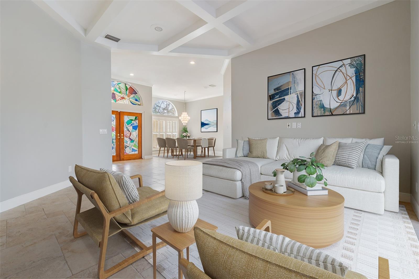 One or more photo(s) has been virtually staged. Experience the Incredible Florida Lifestyle in this Executive Home on the golf course in the highly sought after Aberdeen in East Lake Woodlands. This gated Enclave of only 17 residences has its own private entrance gate. Pavered Driveway & Walk-way leads to the Custom artistically designed Double glass leaded doors with matching traverse windows in Dining room, Office & Primary Bathroom. Spanning 3,450 sqft, this home offers 5 Bedrooms, 3.5 Bathrooms and a spacious 3 Car Garage with Sprawling Golf Course Views of the 2nd hole on the North Course! Timeless Travertine & Porcelain Tile Flooring throughout (no carpet). All the windows are adorned with plantation shutters. The formal Living Room is complete with Coffered Ceiling and expansive Formal Dining Room makes entertaining guests and family a delight. The Chef inspired Kitchen with skylight, Stainless-steel appliances, Cherry wood cabinets with pull out drawers, Dual ovens, Convection microwave, Glass Cooktop, Built-in Refrigerator, Brass/Bronze custom hood, Prep Island with a custom hammered copper sink, a second oversized buffet breakfast bar with unique quartzite and built-in Bosch wine cooler. This opens to the Great room with matching granite dry bar, ideal for entertainment. The Primary suite is a spacious retreat with Porcelain tile, His/Her Walk-in closets with Organizer & Slider to the Private Patio. Spectacularly Updated Primary Bath features Granite countertops, Dual Sinks, Makeup Vanity, Whirlpool tub & Step-in Shower. Off the Family room is a versatile wing with 3 Generous size Bedrooms that share Two adjacent Updated Baths, one with a Tub and the other a Step-in Shower. At the front of the Home adjacent to the Primary is easily a 5th bedroom, currently being used as an Office with Built-in Closet and Travertine flooring conveniently accessible to the powder bath.Step Outside, you'll find your personal oasis: a screened pavered covered lanai, outdoor Kitchen with gas grill. Take a dip in the Sparkling Heated Pebble Tec Pool, or just unwind and enjoy the peaceful Golf Course views. Two A/C’s, 2021 & 2022. Water Heater 2024. Optional Ardea Country Club membership unlocks access to two championship 18-hole golf courses, a renovated country club, and top-tier tennis and pickleball facilities. Perfectly located near premier shopping, dining, schools, parks, beaches, and Tampa International Airport, this home is a blend of luxury and convenience.
