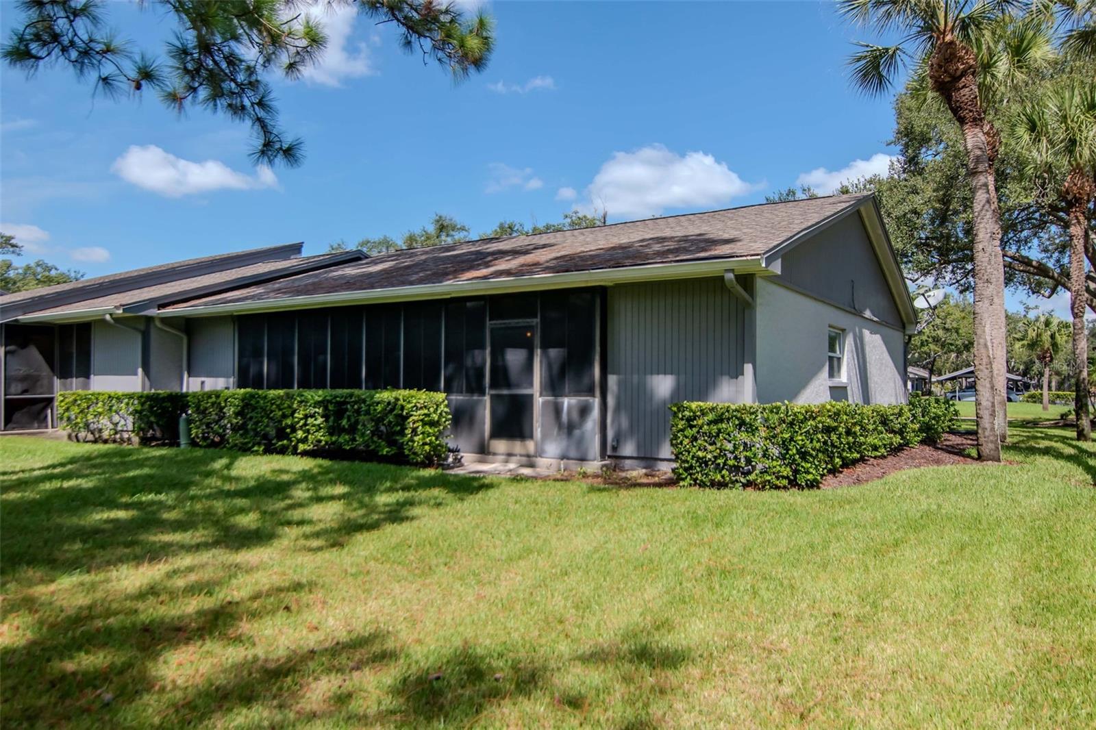SIGNIFICANT PRICE DECREASE!!! This desirable end-unit villa in exclusive East Lake Woodlands combines comfort, privacy, and an ideal layout for everyday living or entertaining. Featuring two spacious primary suites, each with its own ensuite bath and split floor plan design, the home provides excellent privacy for residents and guests alike. The open layout includes a welcoming family room, a dedicated dining room, and a bright eat-in kitchen with a generous pass-through bar—perfect for casual dining, entertaining, or extra storage. A charming front courtyard offers an inviting spot for morning coffee or al fresco meals, while the expansive lanai, complete with removable windows, provides a versatile additional living space to enjoy year-round. Thoughtful storage solutions are found throughout, with ample closet space to keep everything organized. Important updates include a roof replacement in 2021, an upgraded electrical panel in 2017 and a 2016 AC system. The HOA provides peace of mind with coverage that includes roof replacement, exterior painting, wood repairs, landscaping, lawn maintenance, irrigation, and fertilization. Located within the highly regarded East Lake Woodlands, a premier gated golf course community, residents have access to optional membership opportunities that feature golf, tennis, swimming, fitness, dining, and social events. With its combination of thoughtful design, modern updates, and resort-style community amenities, this villa offers the perfect place to call your year round home or winter residence. Don't delay.