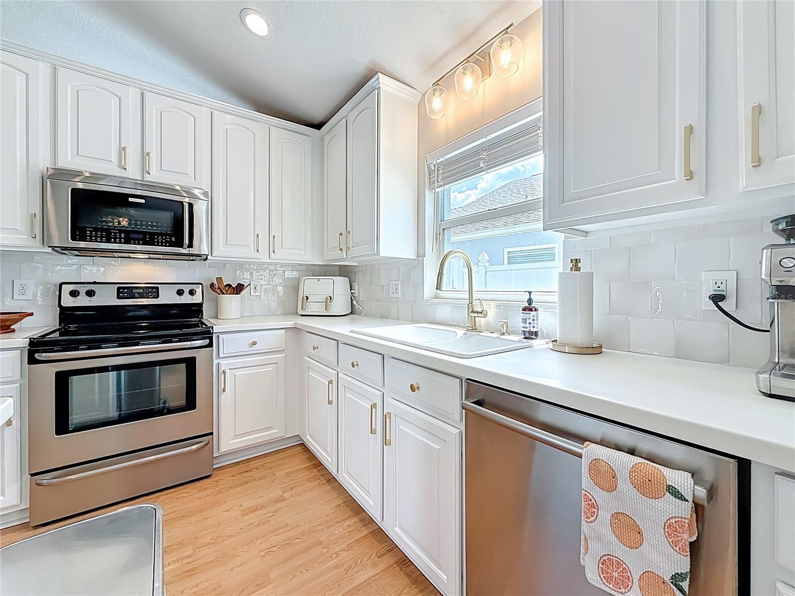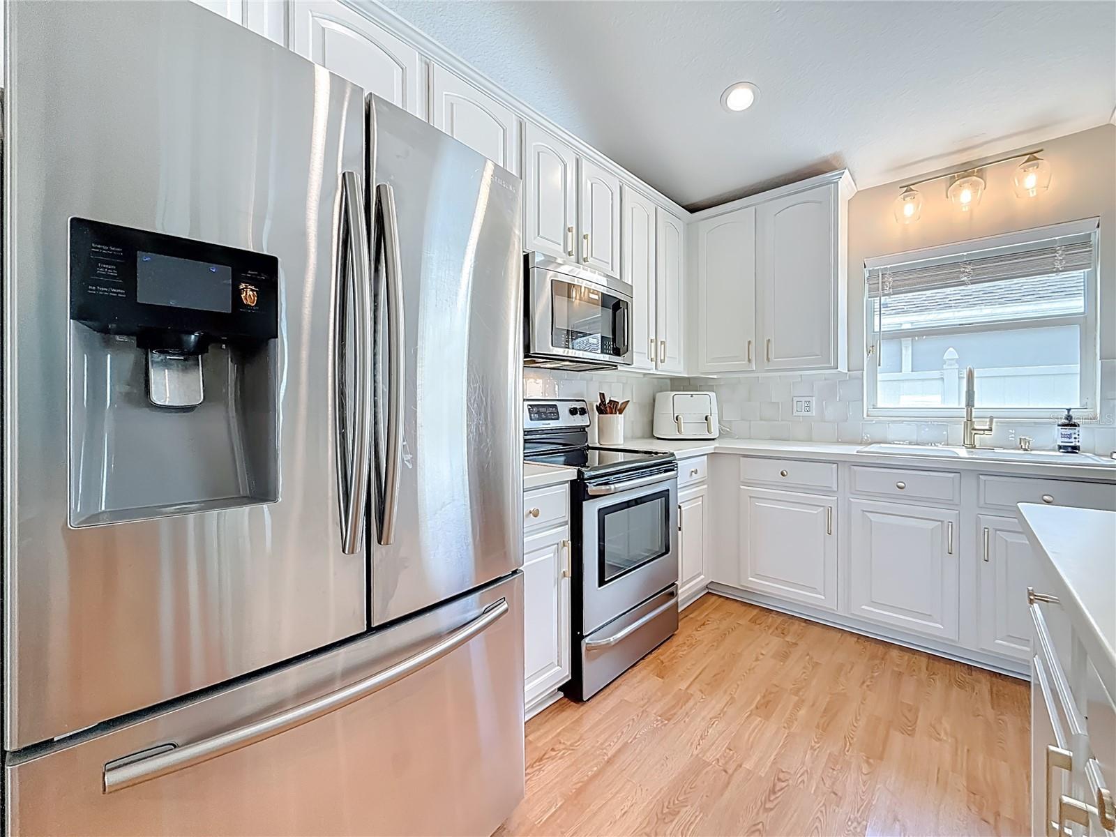 Welcome to Bay Arbor, one of Oldsmar’s most desirable gated communities! This move-in ready 3BR/2BA home offers a bright, open layout with wood laminate throughout the living spaces, and an updated kitchen featuring new wood cabinetry, stainless appliances, and a built-in desk area — perfect for everyday living. The spacious family room and eat-in kitchen combo opens to a large screened lanai, currently used as a playroom, overlooking the large, fully fenced backyard. Major updates include a new roof (2020) and new HVAC (2023) for peace of mind. Enjoy community amenities including a pool, volleyball court, and clubhouse right around the corner (walkable!). Ideally located close to Tampa, Safety Harbor, and Clearwater, this is Oldsmar living at its best — gated, updated, and ready to move in!