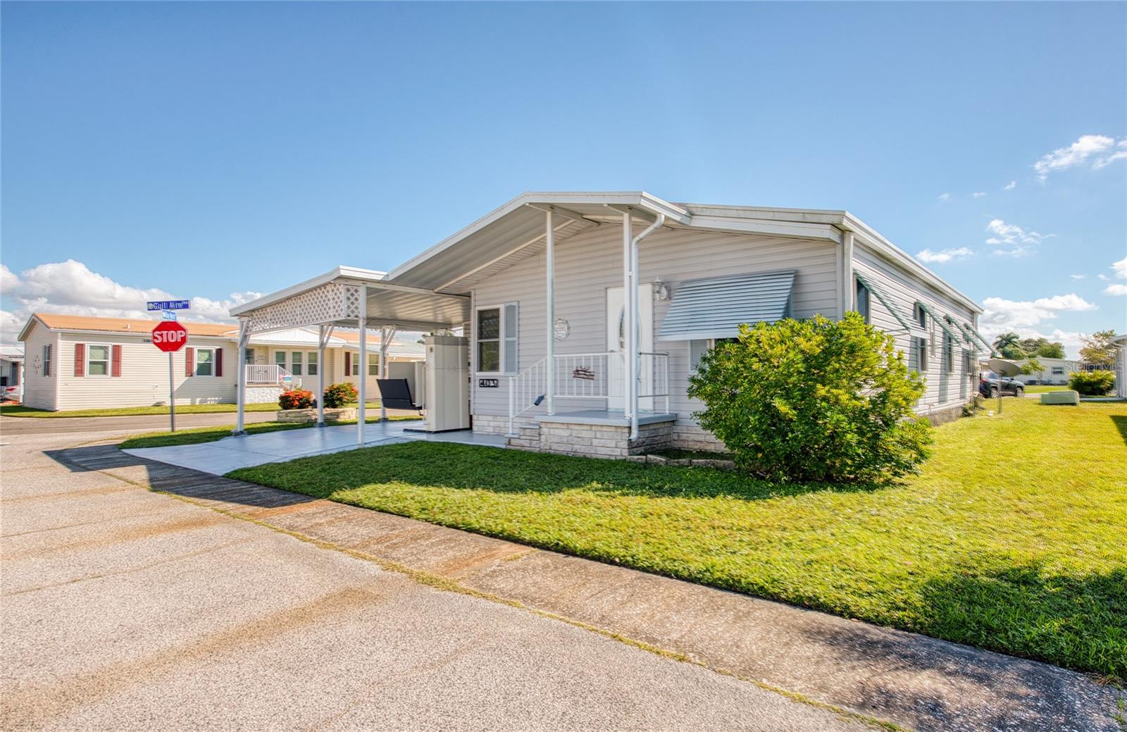 Welcome to your new home in the highly sought-after 55+ Gull-Aire Village! Perfectly situated on a spacious corner lot, this charming Jacobsen manufactured residence offers both comfort and convenience within walking distance to the community pool and clubhouse. Constructed in 1993, it features durable ¾ inch plywood subfloors with laminate, carpet, and tile flooring throughout. Enjoy the versatility of the enclosed Florida room, equipped with central air and heat as well as a custom fan system—ideal for hobbies and creative projects. Recent upgrades include a new hot water heater installed in 2018 and beautifully renovated bathrooms completed in 2020. Further improvements include new windows, a front door, siding, and insulation added in 2013.The kitchen is outfitted with sleek 2019 stainless-steel appliances including a refrigerator and dishwasher. A new air conditioning system installed in 2016. Unique to this home is an electric custom ramp capable of lifting to 600 lbs., offering exceptional accessibility for those with mobility needs. A roof-over was added in 2005, and an inside laundry area comes complete with a washer and dryer for your convenience. The vibrant clubhouse is the heart of the community, hosting monthly events and providing amenities such as a pool table, shuffleboard, bocce ball court, and a heated pool and spa. There are also regular activities to keep you engaged and active, including yoga, bingo, cards, and line dancing. The golf cart-friendly streets make getting around a breeze! With HOA fees at just $70 per month, you will enjoy affordable living in a wonderfully maintained neighborhood. This pet-friendly community allows one pet of any size, and a second pet is permitted with a doctor's note for emotional support. Best of all, ownership includes the land—no lot rent! Everyday conveniences are just steps away, with AMC Theatres, Bealls, Marshalls, PetSmart, Five Below, and Dollar Store across the street, as well as popular dining options like Shaker & Peel, Craft Street Kitchen, Mandola's, Country Pizza Italian Grill, and Eve's Family Restaurant. Major retailers such as Super Walmart and Publix, along with Countryside Hospital, are only minutes from your door. For outdoor enthusiasts, the stunning beaches of Honeymoon Island and Caladesi State Park are just ten miles away, and a scenic biking and walking trail along the canal offers easy access from within the community. Room sizes are approximate. Do not miss your chance to enjoy the best of Oldsmar living in one of the area's most desirable communities!