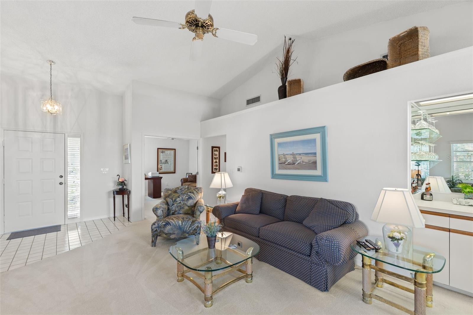 This warm and inviting one-story villa is ready for its' next owner - could that be you? Aggressively priced to encourage a quick sale, this property offers excellent value for those seeking comfort and convenience in a vibrant community. Three spacious bedrooms provide ample space for you or your guests with two full bathrooms that give you both functionality & privacy. You have a two car garage that ensures you have plenty of parking & storage, and being an end unit, this villa is just a short walk to the refreshing community pool, perfect for relaxation & recreation. The home boasts an open & airy layout with vaulted ceilings in both the great room & dining room. Numerous windows fill the space with natural light & frame beautiful views of the golf course. The great room features a cozy wood-burning fireplace - a true focal point - along with a convenient wet-bar, ideal for entertaining guests. The large kitchen area is equipped with abundant cabinetry & new appliances, making meal preparation a pleasure. A bright breakfast area leads to the screened patio, accessible through sliding doors, where you can enjoy your morning coffee overlooking your lovely yard space. The master bedroom suite is generously sized & features sliding doors that open to the screened patio, bathing the room in natural light. The en-suite bath includes both a soaking tub & a shower within the private water closet, as well as two closets, one being a walk in. While there are a few updates that could enhance this lovely home, the current pricing reflects these considerations, giving you the flexibility to make improvements at your own pace. This villa is move-in ready, allowing you to settle in and update as desired. With 1666 Sq Ft of living space, this home offers the perfect balance of comfort & ease. Say goodbye to the continual maintenance of a single-family home--your HOA fee covers nearly everything, including: roof & gutters, exterior maintenance, lawn care, streets & common grounds, community pool & pool maintenance, basic cable TV & internet, & trash on Tuesdays & Fridays. Enjoy a relaxed lifestyle & peace of mind with these comprehensive amenities included in your monthly fee. AND, last but not least brand new major systems including: new HVAC, new electric panel, new water heater, and roof new in 2022. PERFECT!! AND seller will include all furniture with a couple of exceptions...this is truly a great deal!!!