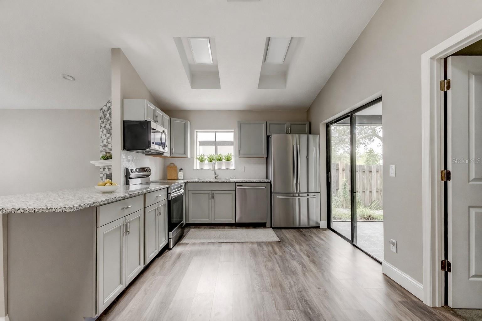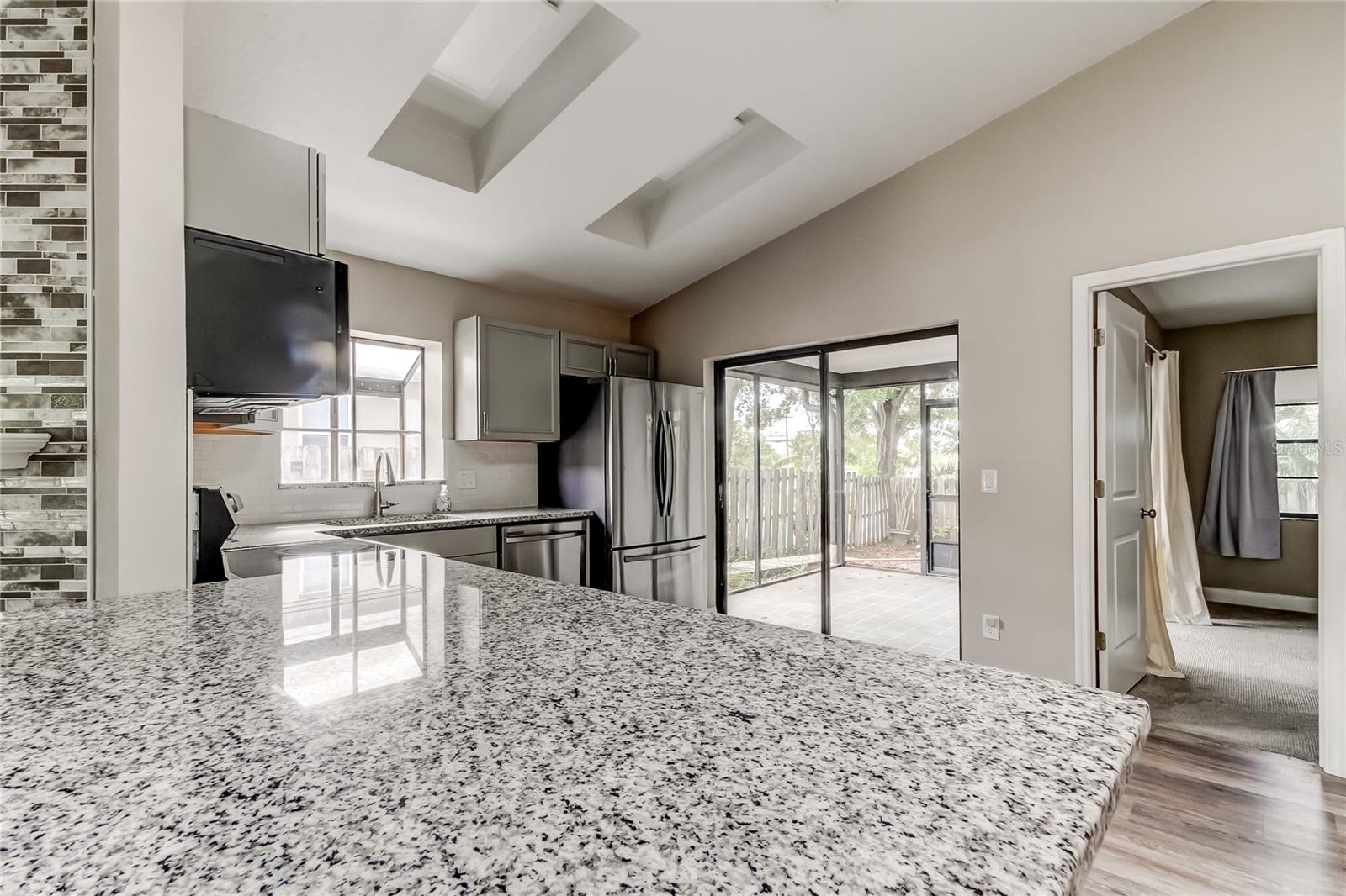 One or more photo(s) has been virtually staged. Short Sale. This beautifully updated, single-level home offers a smart, open layout with 3 bedrooms, 2 full baths, and a 2-car garage, designed for both everyday living and easy entertaining. Completely renovated in 2022, the interior has been thoughtfully updated and modernized. The main living area features high ceilings and an open floor plan that creates a bright, spacious feel. A striking fireplace accent wall anchors the living room and adds both character and warmth. Luxury vinyl plank flooring runs through the common areas, complemented by modern finishes throughout. The kitchen features granite countertops, stainless steel appliances, updated cabinetry, and a stylish backsplash, seamlessly connecting to the dining and living spaces. The split-bedroom floor plan provides privacy, and both bathrooms were updated with sleek tile in the showers and floors, new vanities, mirrors, and contemporary lighting. Additional features include a durable metal roof, a fully fenced backyard, and multiple outdoor living spaces. A screened-in porch offers a comfortable spot to unwind, while the expansive rear deck is ideal for entertaining or enjoying outdoor time year-round. Trustee sale, must sell!!