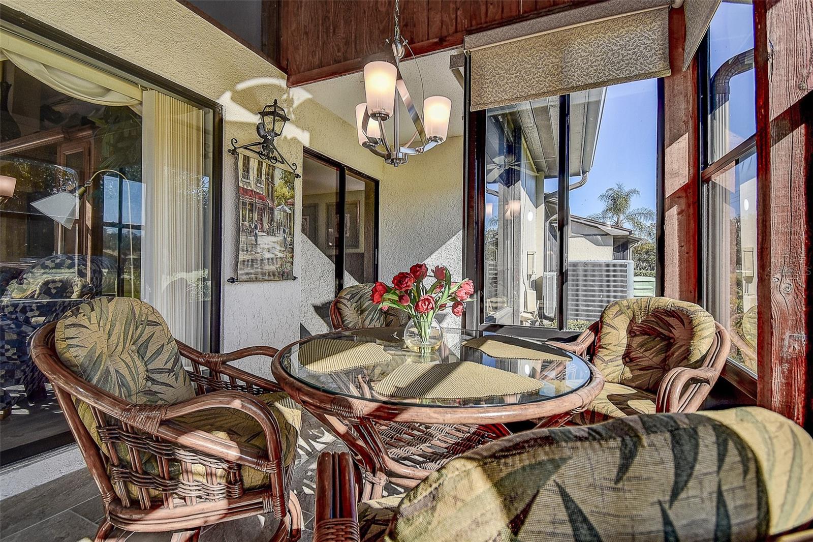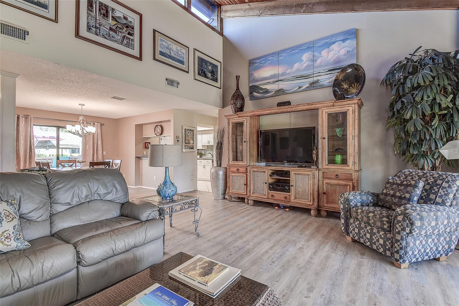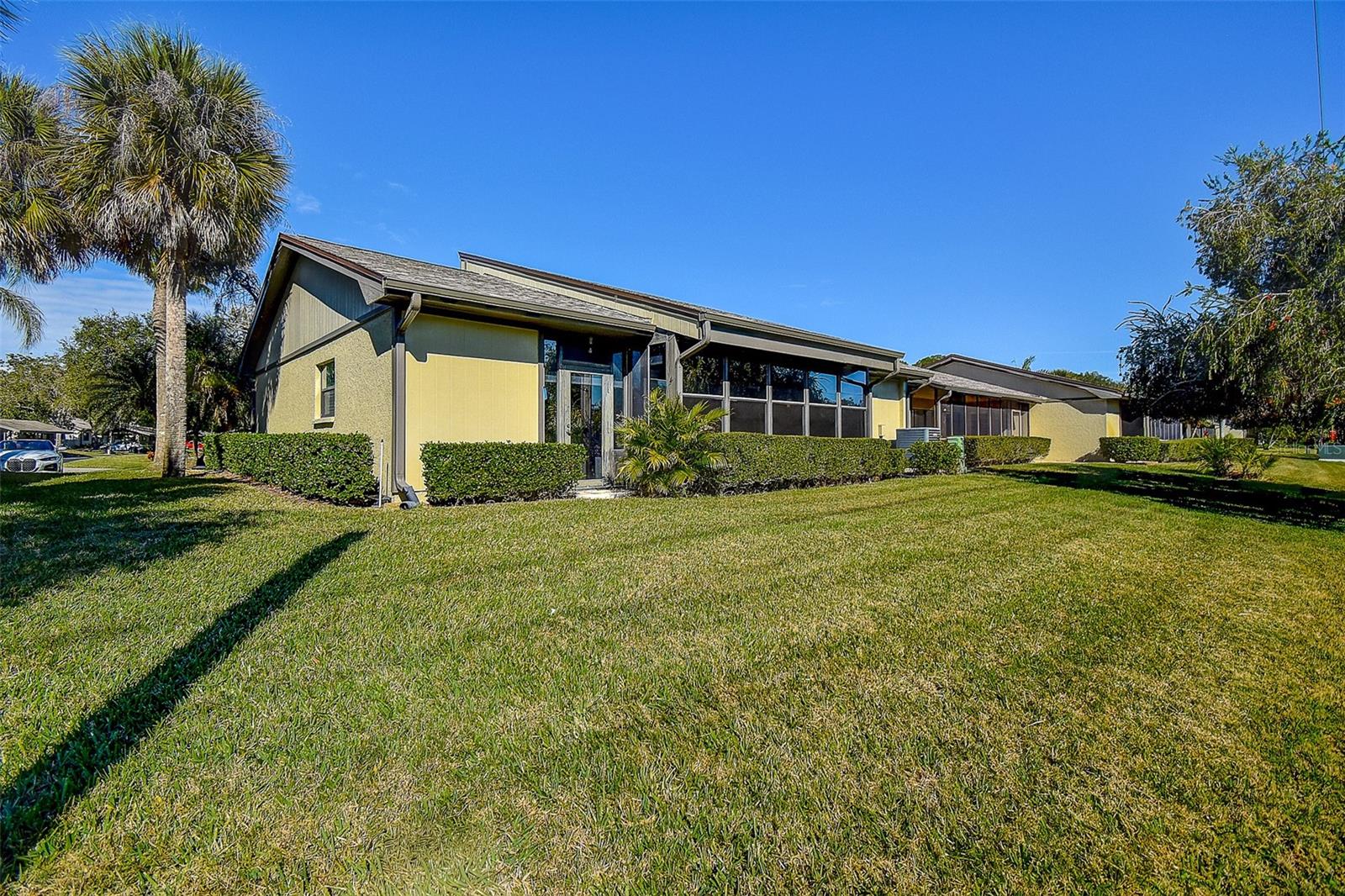 TURN KEY VILLA perfect for Snow Birds, nestled in the GATED COMMUNITY of East Lake Woodlands! 3 BEDROOM 2 Bath END UNIT VILLA with GOLF COURSE VIEWS! BONUS SUN ROOM adds 290sqft for a total 1735sqft living! FURNISHED and completely MOVE-IN READY, including dishes, pots, pans, furniture, TVs, towels and beach chairs!! And it’s even in Zone X with NO FLOOD INSURANCE REQUIRED. Step through the front door of this charming villa and you will love the OPEN CONCEPT floorplan, SOARING VAULTED CEILING with wood planks & beams that run right into your huge Florida room/lanai at the rear of the home, which runs the full width of the house & gives you some nice, green GOLF COURSE VIEWS! BRAND NEW LUXURY VINYL PLANK flooring in main living areas. The transom windows provide MAXIMUM NATURAL LIGHT! Enjoy cooking and entertaining with a Well-Equipped Kitchen complete with STAINLESS STEEL APPLIANCES (Brand New Refrigerator), plenty of cabinets and countertops, TILE BACKSPLASH, pantry and washer/dryer closet. Step outside your eat-in area slider to your private patio, the perfect place for grilling. You’ll love the split bedroom plan. The spacious Primary suite has sliders to the Florida room plus a LARGE WALK-IN CLOSET! The updated EN SUITE bathroom offers plentiful cabinets, GRANITE COUNTERS, dual sinks, & glass enclosed step-in shower with updated tile! On the opposite side of the home the GUEST BATHROOM has also been UPDATED and is flanked by two bedrooms, one with access to the Florida room, and one which doubles as a HOME OFFICE with new built-in cabinet/desk and Daybed! So many updates - ALL NEW IN 2024!! - New Roof 2024, New Downspouts/Gutters, New water heater, New Office bookcase and desk wall unit, New tile on lanai, New window tinting film in living room & lanai, new insulation on lanai roof, many new lights and solar light tube in primary bedroom, new portable gas generator. New HVAC 2019 PLUS New Ductwork and New Attic Insulation installed 2024. Plus Home Warranty! The incredibly large Florida room is great for flex space and adds additional square footage not included in the tax records with glass windows, added insulation, completely air-conditioned, new tile floors, ceiling fans and storage closet. The light-filled room offers private tropical views with no rear neighbors and the wildlife that’s in abundance in ELW. You can feel comfortable knowing that this gated community has a ROVING PATROL SECURITY at all times. This is a GOLF CART FRIENDLY community, handy to run over to the nearby shopping plaza for some of your everyday needs. Quail Forest is a PET FRIENDLY community. You have an assigned, COVERED PARKING SPACE just outside your front door, along with another guest parking space. Optionally, you could join the renovated Ardea (formerly East Lake Woodlands) Country Club with membership plans that include private Clubhouse, 2 Championship 18 hole golf courses, 2 heated pools, putting greens, Tennis and Pickleball, Fitness Center, Club restaurant and Social Events. HOA fees cover the Quail Forest’s own Sparkling, Heated COMMUNITY POOL JUST STEPS AWAY, Building Exterior including Roof, Lawn Maintenance and Irrigation, Basic Cable and Trash Pick-up. Minutes away from Westfield Countryside Mall, award-winning beaches of Honeymoon and Caladesi Islands, along with parks, bike trails, dog parks, playgrounds, restaurants and entertainment. PLUS, we will leave the furniture...totally turnkey!! Schedule your private showing today.