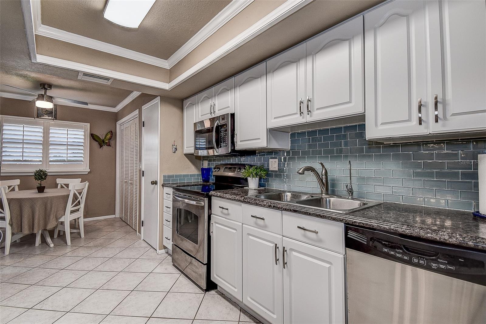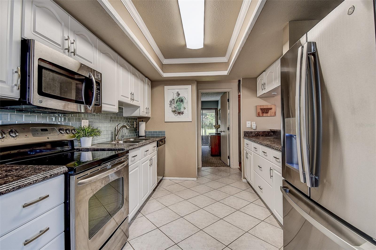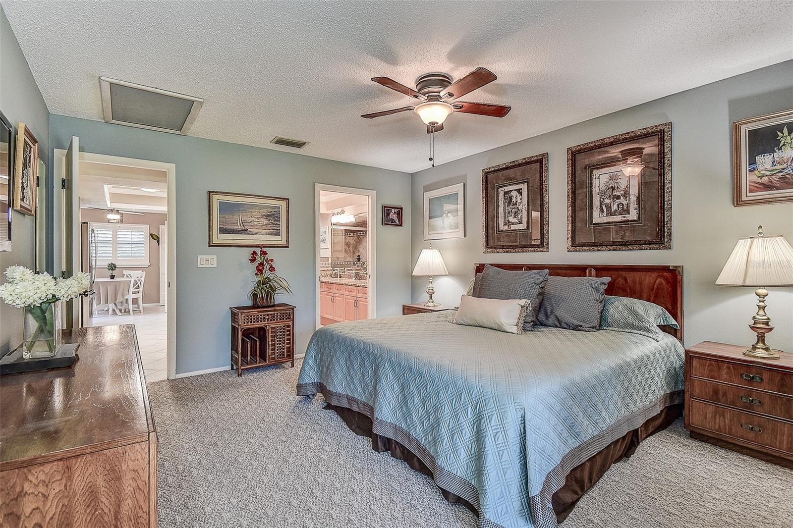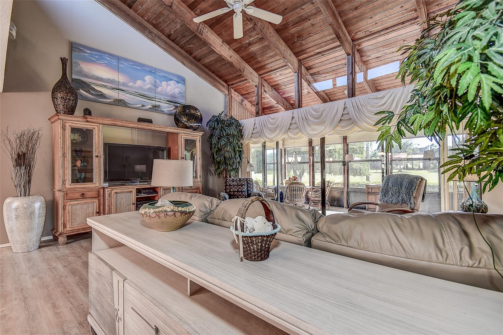 TURN KEY VILLA perfect for Snow Birds, nestled in the GATED COMMUNITY of East Lake Woodlands! 3 BEDROOM 2 Bath END UNIT VILLA with GOLF COURSE VIEWS! BONUS SUN ROOM adds 290sqft for a total 1735sqft living! FURNISHED and completely MOVE-IN READY, including dishes, pots, pans, furniture, TVs, towels and beach chairs!! And it’s even in Zone X with NO FLOOD INSURANCE REQUIRED. Step through the front door of this charming villa and you will love the OPEN CONCEPT floorplan, SOARING VAULTED CEILING with wood planks & beams that run right into your huge Florida room/lanai at the rear of the home, which runs the full width of the house & gives you some nice, green GOLF COURSE VIEWS! BRAND NEW LUXURY VINYL PLANK flooring in main living areas. The transom windows provide MAXIMUM NATURAL LIGHT! Enjoy cooking and entertaining with a Well-Equipped Kitchen complete with STAINLESS STEEL APPLIANCES (Brand New Refrigerator), plenty of cabinets and countertops, TILE BACKSPLASH, pantry and washer/dryer closet. Step outside your eat-in area slider to your private patio, the perfect place for grilling. You’ll love the split bedroom plan. The spacious Primary suite has sliders to the Florida room plus a LARGE WALK-IN CLOSET! The updated EN SUITE bathroom offers plentiful cabinets, GRANITE COUNTERS, dual sinks, & glass enclosed step-in shower with updated tile! On the opposite side of the home the GUEST BATHROOM has also been UPDATED and is flanked by two bedrooms, one with access to the Florida room, and one which doubles as a HOME OFFICE with new built-in cabinet/desk and Daybed! So many updates - ALL NEW IN 2024!! - New Roof 2024, New Downspouts/Gutters, New water heater, New Office bookcase and desk wall unit, New tile on lanai, New window tinting film in living room & lanai, new insulation on lanai roof, many new lights and solar light tube in primary bedroom, new portable gas generator. New HVAC 2019 PLUS New Ductwork and New Attic Insulation installed 2024. Plus Home Warranty! The incredibly large Florida room is great for flex space and adds additional square footage not included in the tax records with glass windows, added insulation, completely air-conditioned, new tile floors, ceiling fans and storage closet. The light-filled room offers private tropical views with no rear neighbors and the wildlife that’s in abundance in ELW. You can feel comfortable knowing that this gated community has a ROVING PATROL SECURITY at all times. This is a GOLF CART FRIENDLY community, handy to run over to the nearby shopping plaza for some of your everyday needs. Quail Forest is a PET FRIENDLY community. You have an assigned, COVERED PARKING SPACE just outside your front door, along with another guest parking space. Optionally, you could join the renovated Ardea (formerly East Lake Woodlands) Country Club with membership plans that include private Clubhouse, 2 Championship 18 hole golf courses, 2 heated pools, putting greens, Tennis and Pickleball, Fitness Center, Club restaurant and Social Events. HOA fees cover the Quail Forest’s own Sparkling, Heated COMMUNITY POOL JUST STEPS AWAY, Building Exterior including Roof, Lawn Maintenance and Irrigation, Basic Cable and Trash Pick-up. Minutes away from Westfield Countryside Mall, award-winning beaches of Honeymoon and Caladesi Islands, along with parks, bike trails, dog parks, playgrounds, restaurants and entertainment. PLUS, we will leave the furniture...totally turnkey!! Schedule your private showing today.